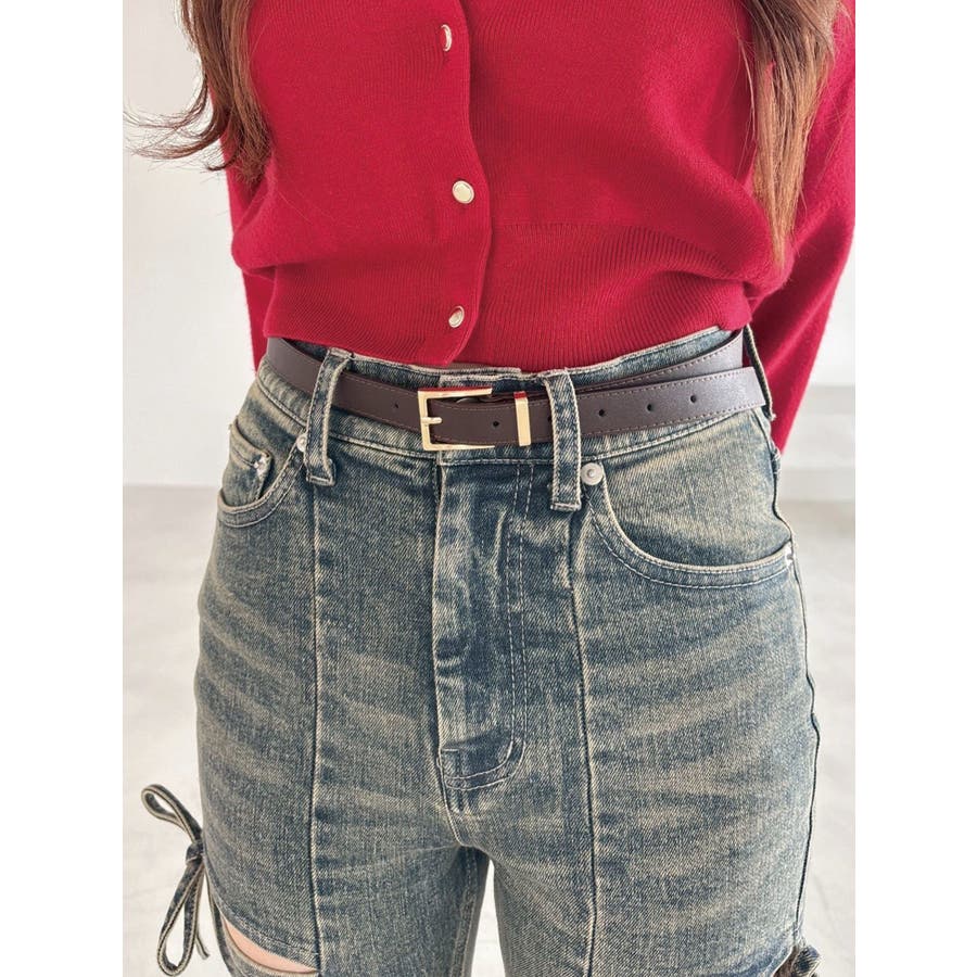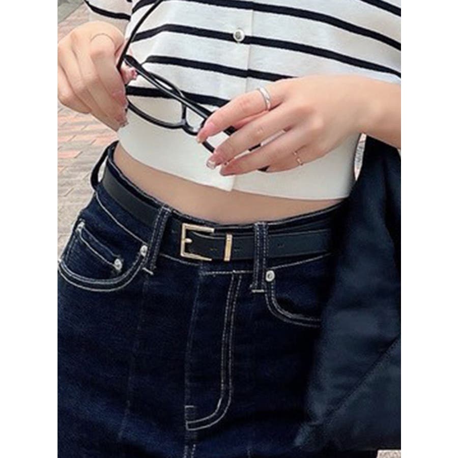 華奢ながら存在感を発揮するナローベルト。スクエアバックルがポイントとなり、ワンピースやシャツなどのブラウジングにもオススメ。ボトムのサイズ調整としても使いやすいベーシックカラーの3色展開になっております。