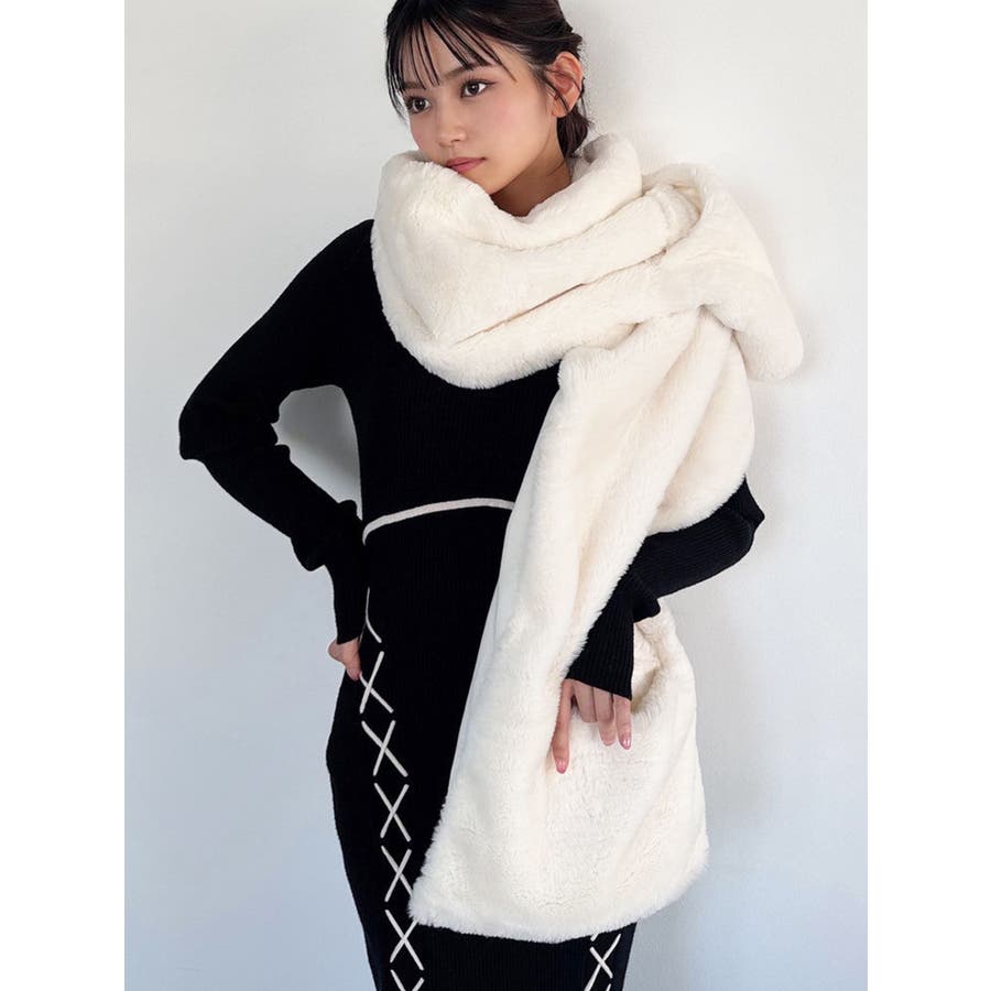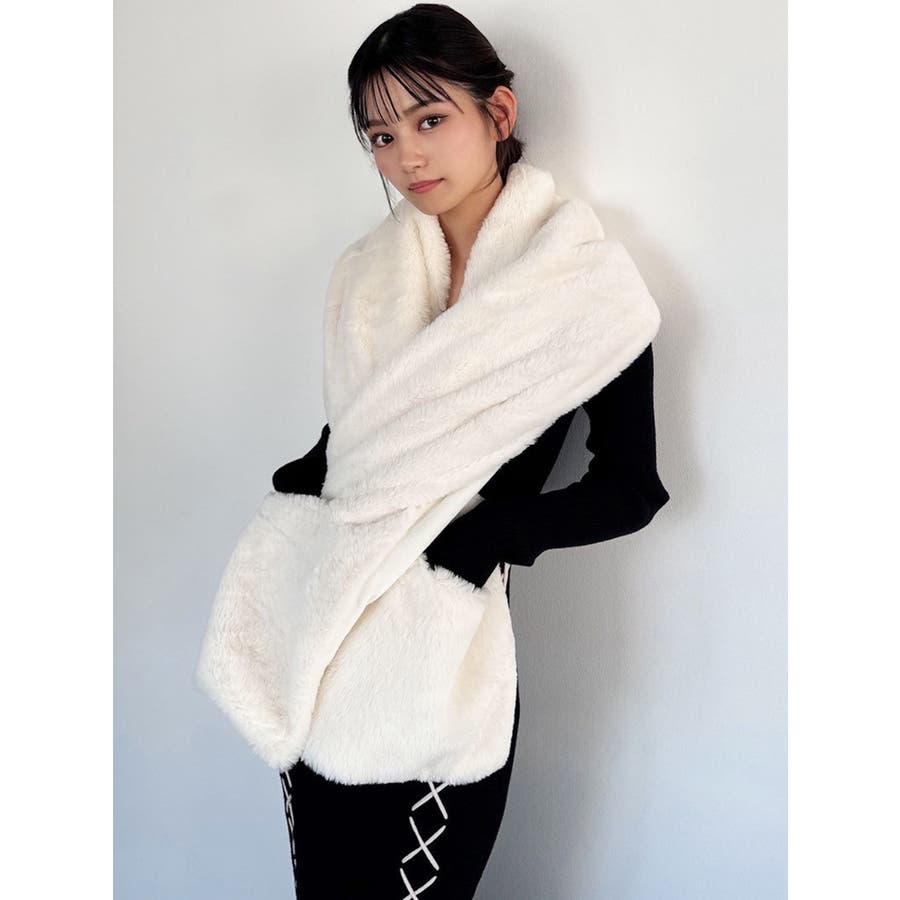 ポケット付きのマフラーが登場▽デザイン▽毛足の短いフェイクファーを使用し上品なアイテムに仕上げました。両サイドにポケットを付け、手袋にも小物入れにもなる便利デザイン。マフラーとしてもストールとしても使えるので様々なシーンに活躍。▽カラー▽白・黒のベーシックカラー。