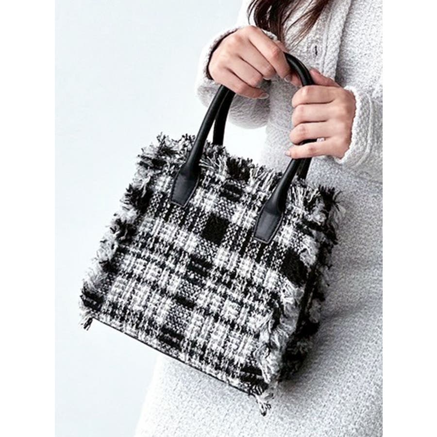 定番のスクエア型バックがツイード生地になって登場!▽デザイン▽持ちやすいサイズ感とAWらしいツイード素材でトレンド感あふれるアイテム。ハンドバッグでもショルダーバッグとしても使える2WAYタイプ◎マチもしっかりあるので大容量です。▽カラー▽白・ミックスの2色展開。