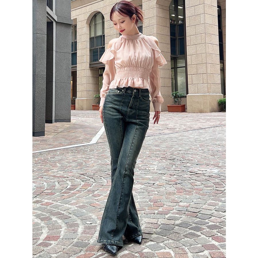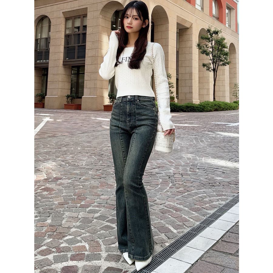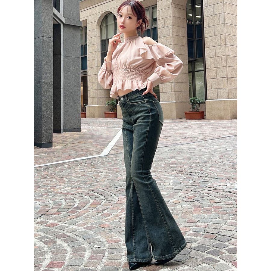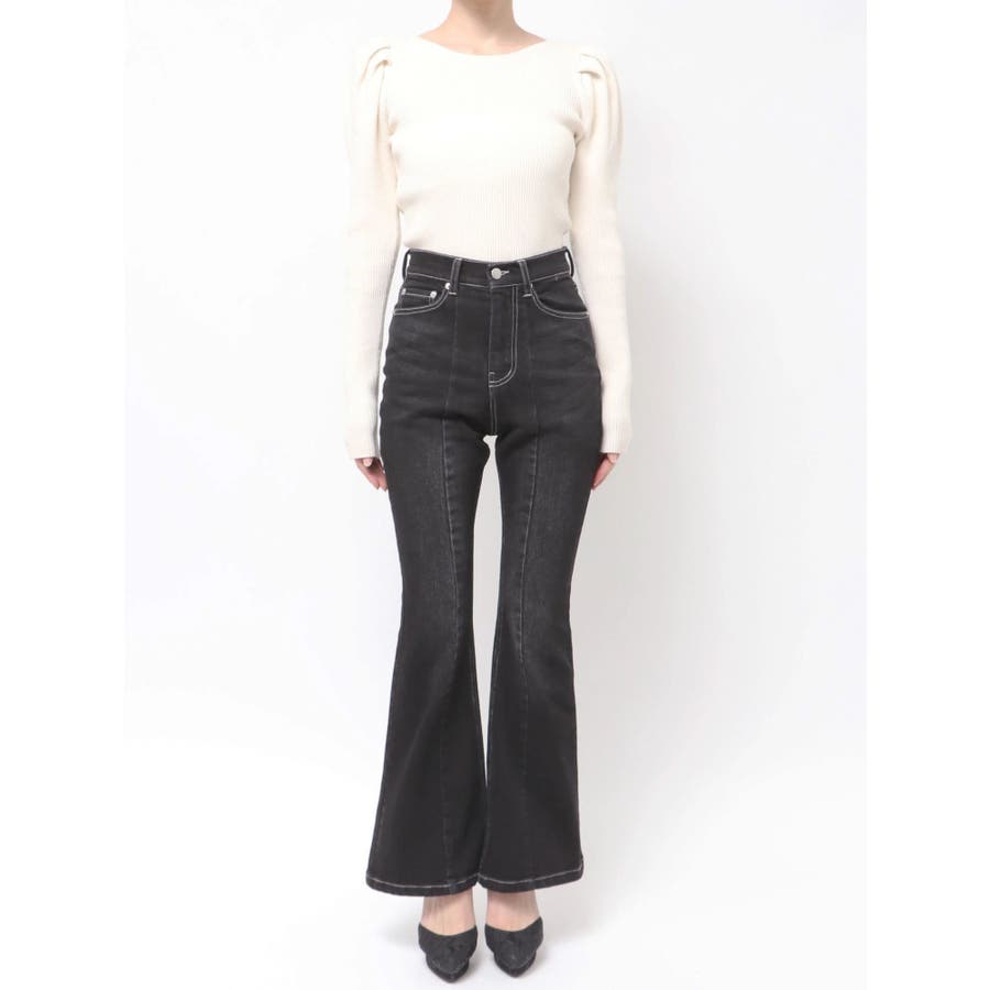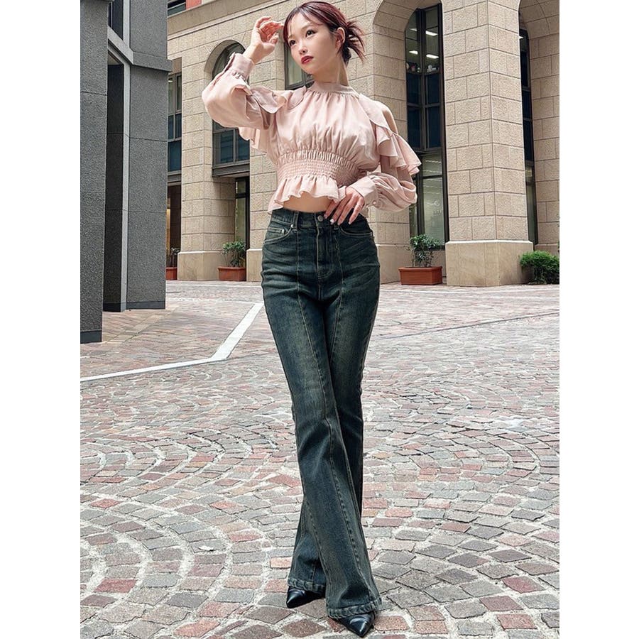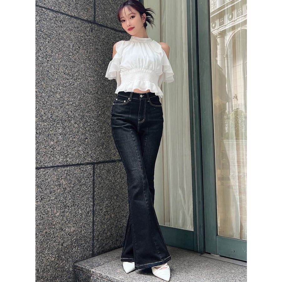 「脚長効果はそのままに、シンプルなデザインが欲しい!」という沢山のリクエストにお応えして、あの大バズりデニムから“ずっと履けるベーシックデニム”が登場!▽デザイン▽ウエストはキュッと細く、脚はとことん長く!計算されたウエストシルエットと裾まで伸びたセンタータックがスタイルアップ効果を高めます。ヒップのVデザインとポケットの位置を高く設定していることでヒップアップ見えし、後ろ姿まで抜かりなく♪脚を細く長く見せるフレアデザインで、ヒールでもスニーカーでも美脚効果抜群◎XS・S・Mの3サイズ展開でピッタリフィットします。▽カラー▽トレンドのヴィンテージ加工をほどこした黒・青の2色展開。▽スタイリング▽キレイ目なブラウスからカジュアルなトップスまでどんなトップスにも万能にマッチします。冬のアウター合わせでもしっかり細見えするデニムです♪1本持っているとオールシーズン活躍します◎