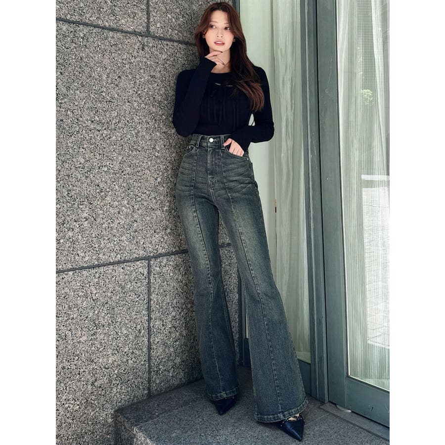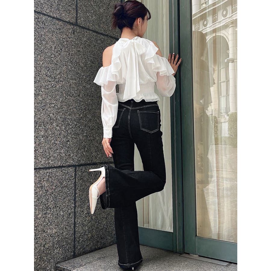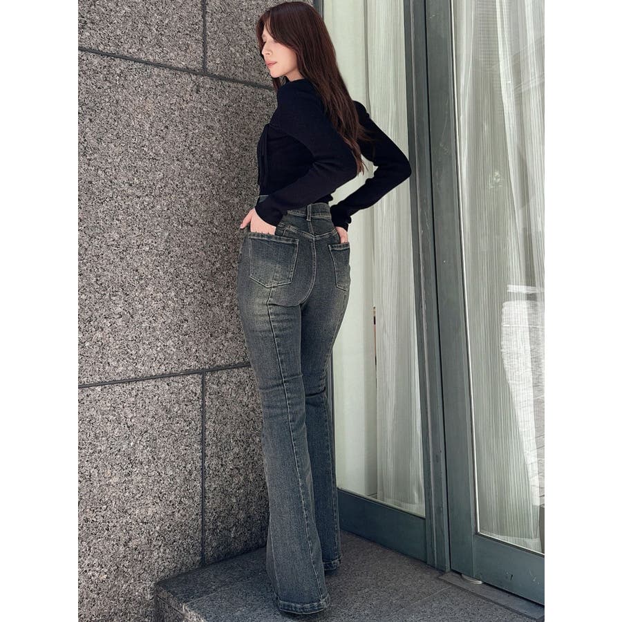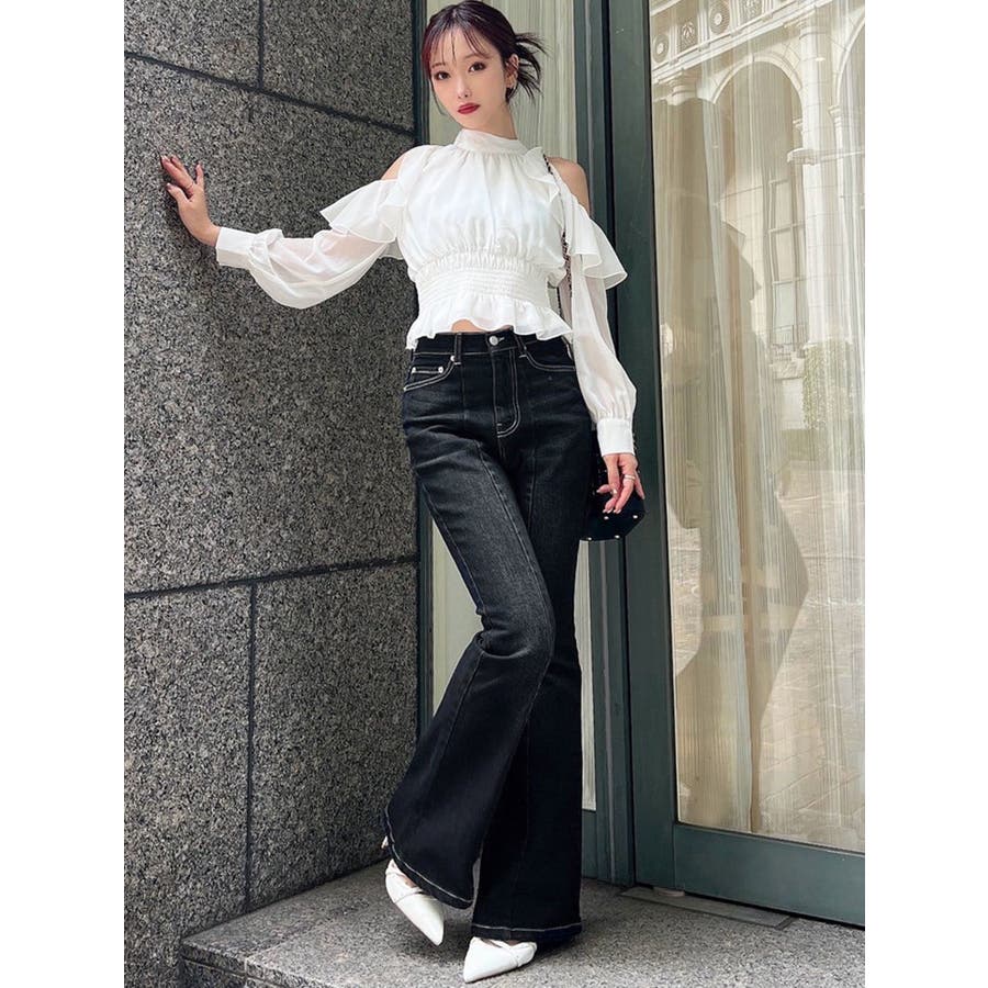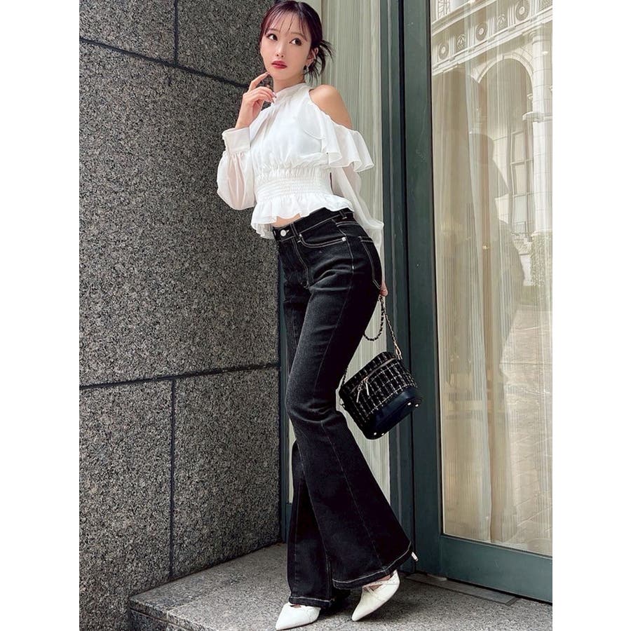 「脚長効果はそのままに、シンプルなデザインが欲しい!」という沢山のリクエストにお応えして、あの大バズりデニムから“ずっと履けるベーシックデニム”が登場!▽デザイン▽ウエストはキュッと細く、脚はとことん長く!計算されたウエストシルエットと裾まで伸びたセンタータックがスタイルアップ効果を高めます。ヒップのVデザインとポケットの位置を高く設定していることでヒップアップ見えし、後ろ姿まで抜かりなく♪脚を細く長く見せるフレアデザインで、ヒールでもスニーカーでも美脚効果抜群◎XS・S・Mの3サイズ展開でピッタリフィットします。▽カラー▽トレンドのヴィンテージ加工をほどこした黒・青の2色展開。▽スタイリング▽キレイ目なブラウスからカジュアルなトップスまでどんなトップスにも万能にマッチします。冬のアウター合わせでもしっかり細見えするデニムです♪1本持っているとオールシーズン活躍します◎