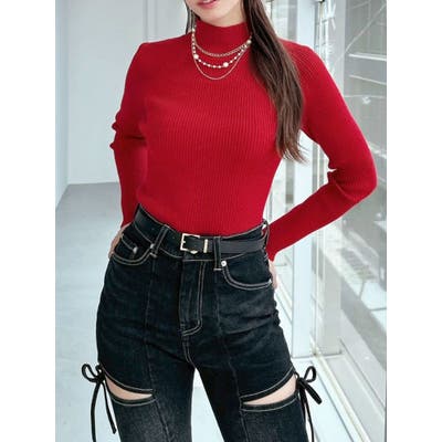 ハイネックベーシックニットトップス