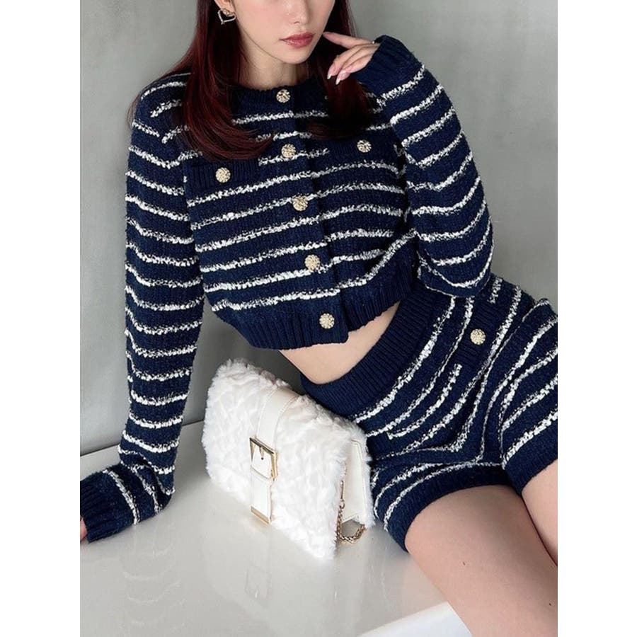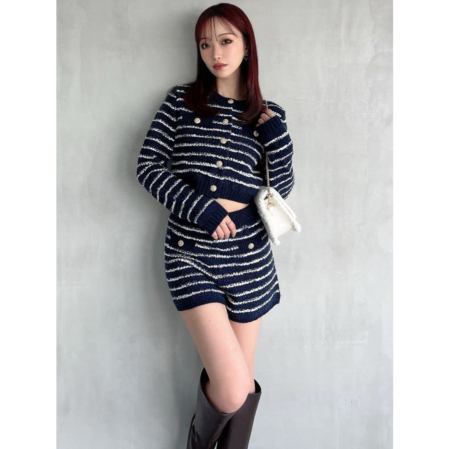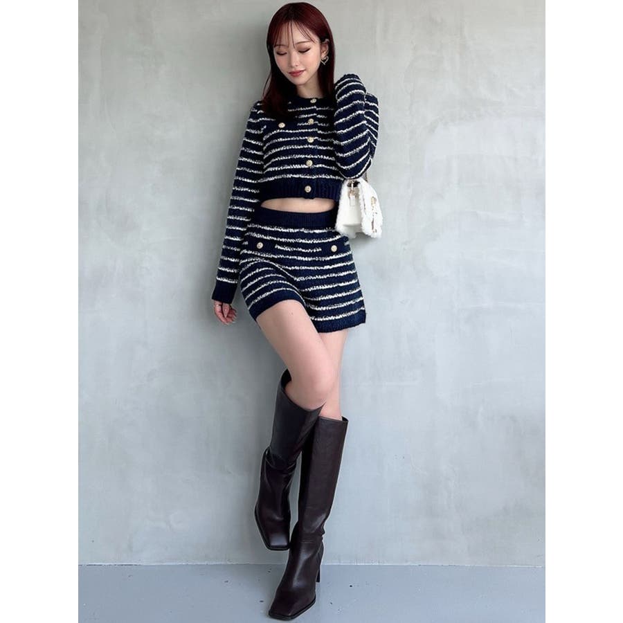ツイードボーダーニットカーディガン【セットアップ着用可能】