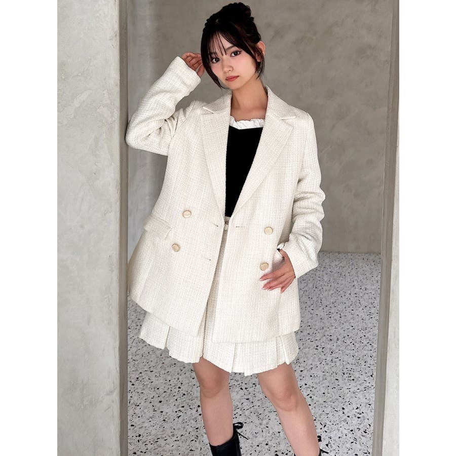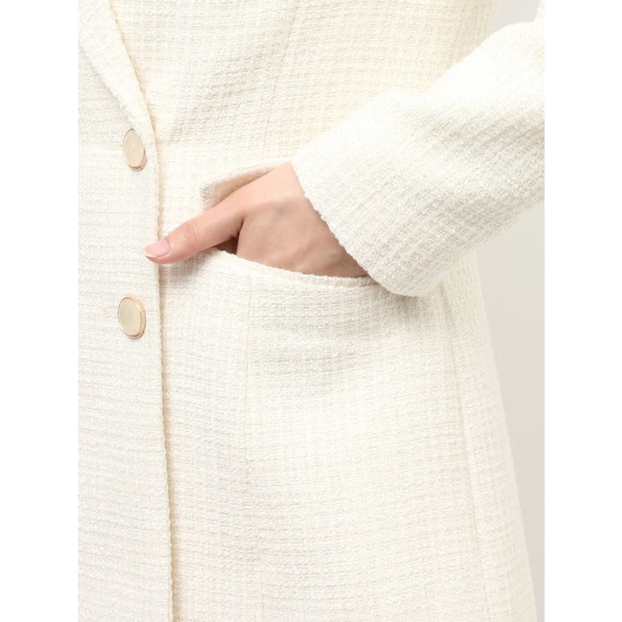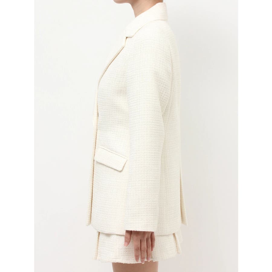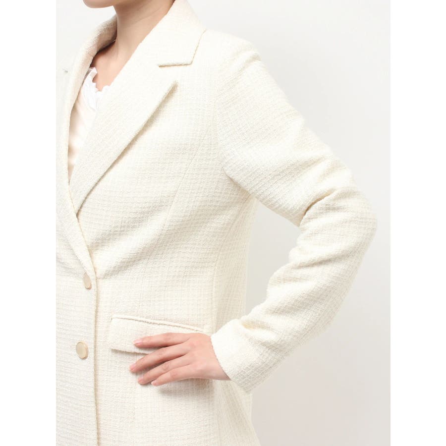 春らしいツイード生地のミディジャケット▽デザイン▽定番人気の春のツイードジャケットからミディ丈が登場!ラメ糸が織り交ぜられているツイード生地を使用し、贅沢感溢れる一着に♪ヒップまで隠れる丈感でボディラインのカバーをしつつ高級感のあるツイード生地がキチンと感も演出◎トレンドに左右されず長くお使いいただけるデザインです。▽カラー▽白・青・ピンクの3色展開。▽スタイリング▽同素材のプリーツミニスカートと合わせればセットアップ着用が可能◎ミディ丈とクロップド丈でお好きなジャケットをお選びいただけます♪もちろんお持ちのワンピースやデニムコーデに羽織っても!高見えする生地感で様々なシーンで活躍する春アウターです。