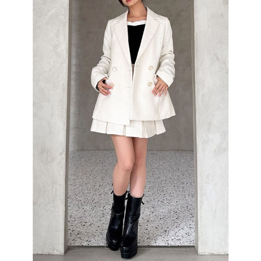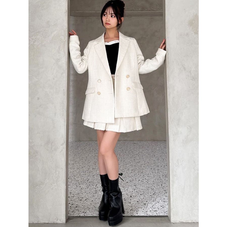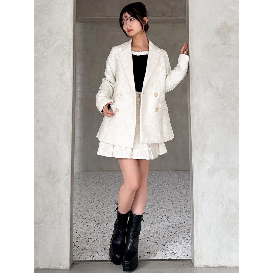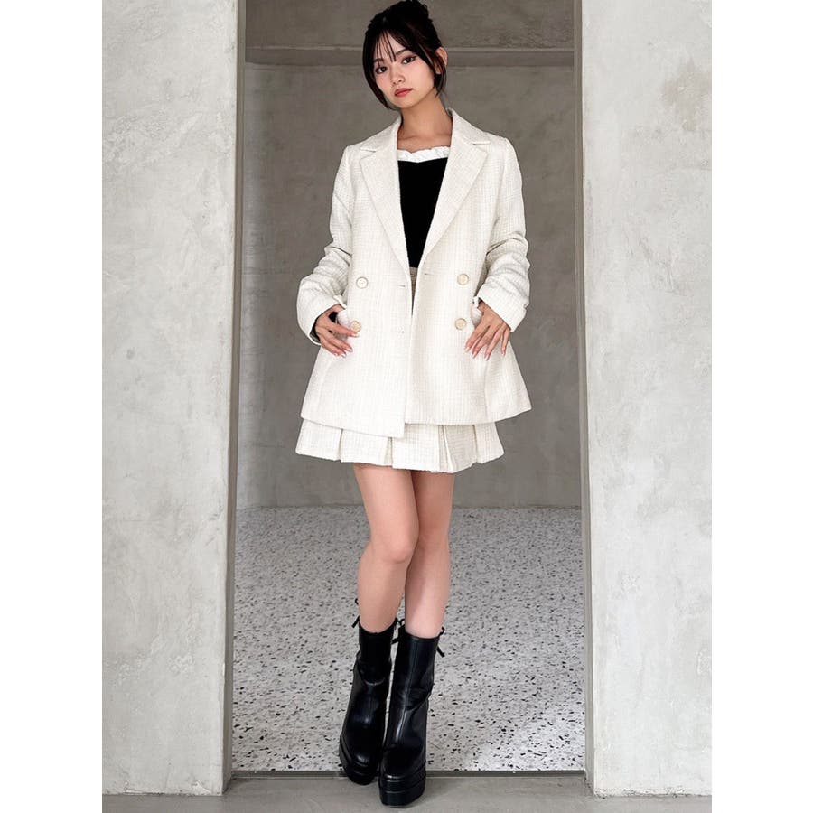 春らしいツイード生地のミディジャケット▽デザイン▽定番人気の春のツイードジャケットからミディ丈が登場!ラメ糸が織り交ぜられているツイード生地を使用し、贅沢感溢れる一着に♪ヒップまで隠れる丈感でボディラインのカバーをしつつ高級感のあるツイード生地がキチンと感も演出◎トレンドに左右されず長くお使いいただけるデザインです。▽カラー▽白・青・ピンクの3色展開。▽スタイリング▽同素材のプリーツミニスカートと合わせればセットアップ着用が可能◎ミディ丈とクロップド丈でお好きなジャケットをお選びいただけます♪もちろんお持ちのワンピースやデニムコーデに羽織っても!高見えする生地感で様々なシーンで活躍する春アウターです。