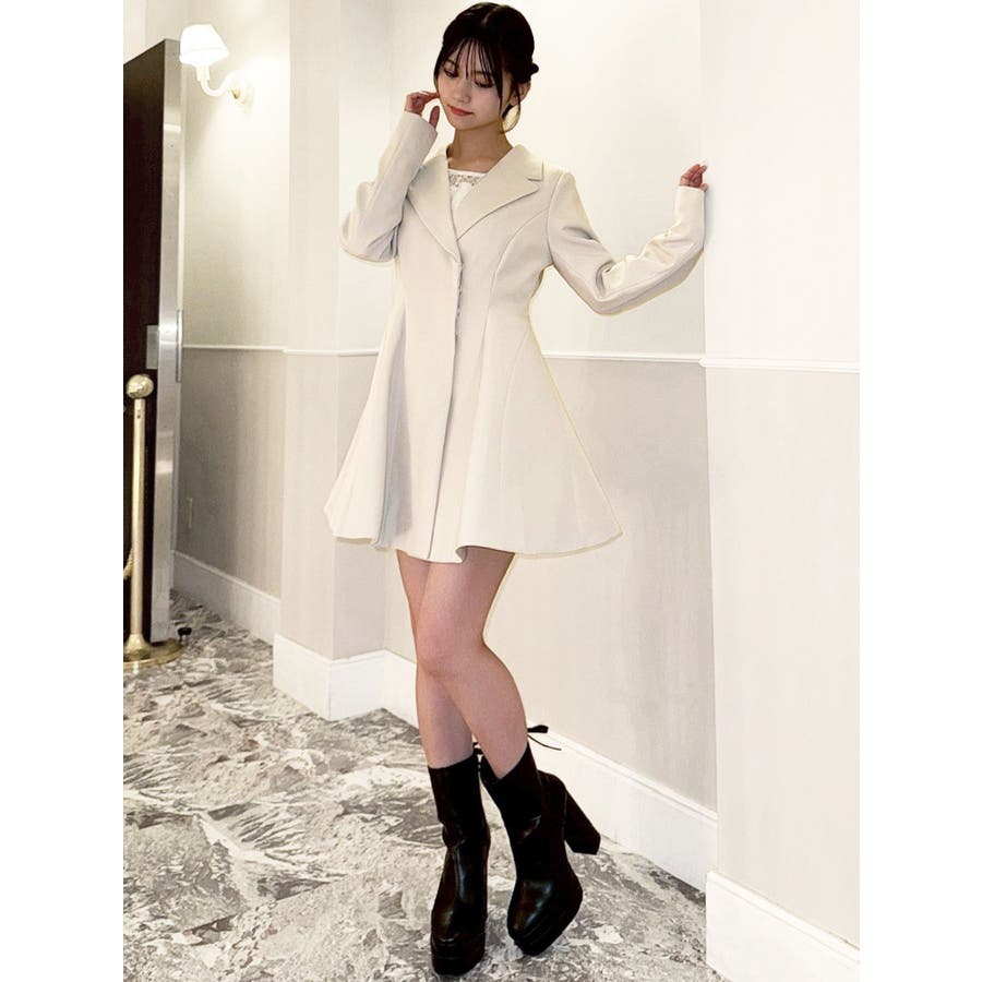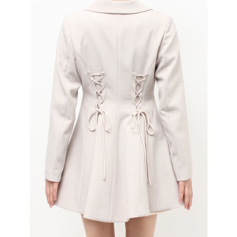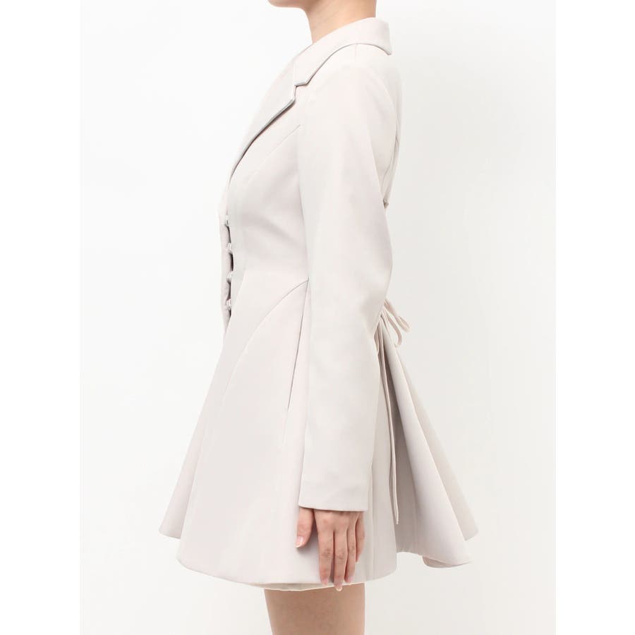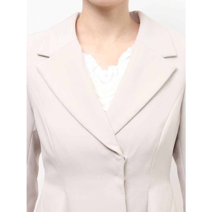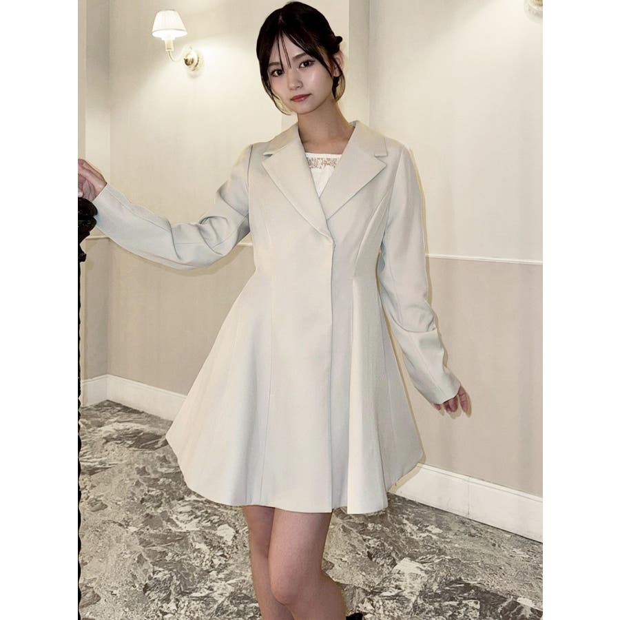 細見えにこだわったテーラードジャケット▽デザイン▽ハリのあるボンディング素材を使い、フィット&フレアの美しいシルエットのジャケットに仕上げました。バックウエスト部分にはレースアップをほどこし、自分のサイズに合わせて調節が可能◎ヒップまで隠れる長めの丈感に設定し、シンプルなデザインながらスタイルアップが叶う1枚に。▽カラー▽白・黒の2色展開。▽スタイリング▽サラッとジャケットとして羽織るのはもちろん、前を閉じてフレアミニワンピースのようなシルエットでも着用できます♪