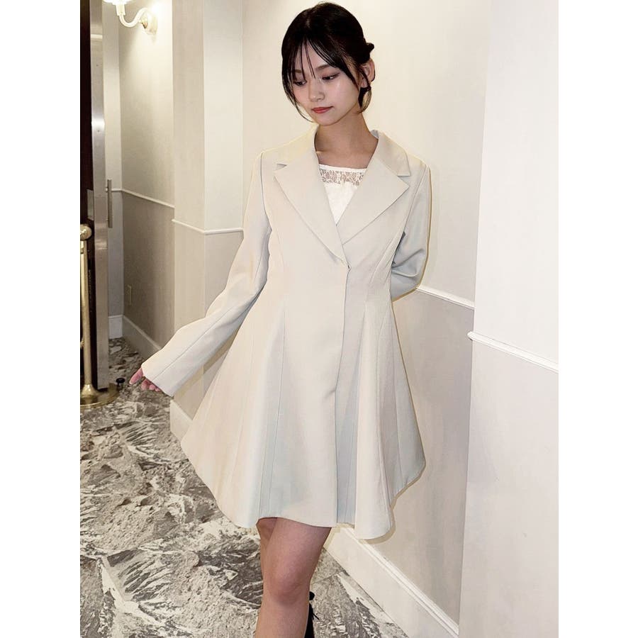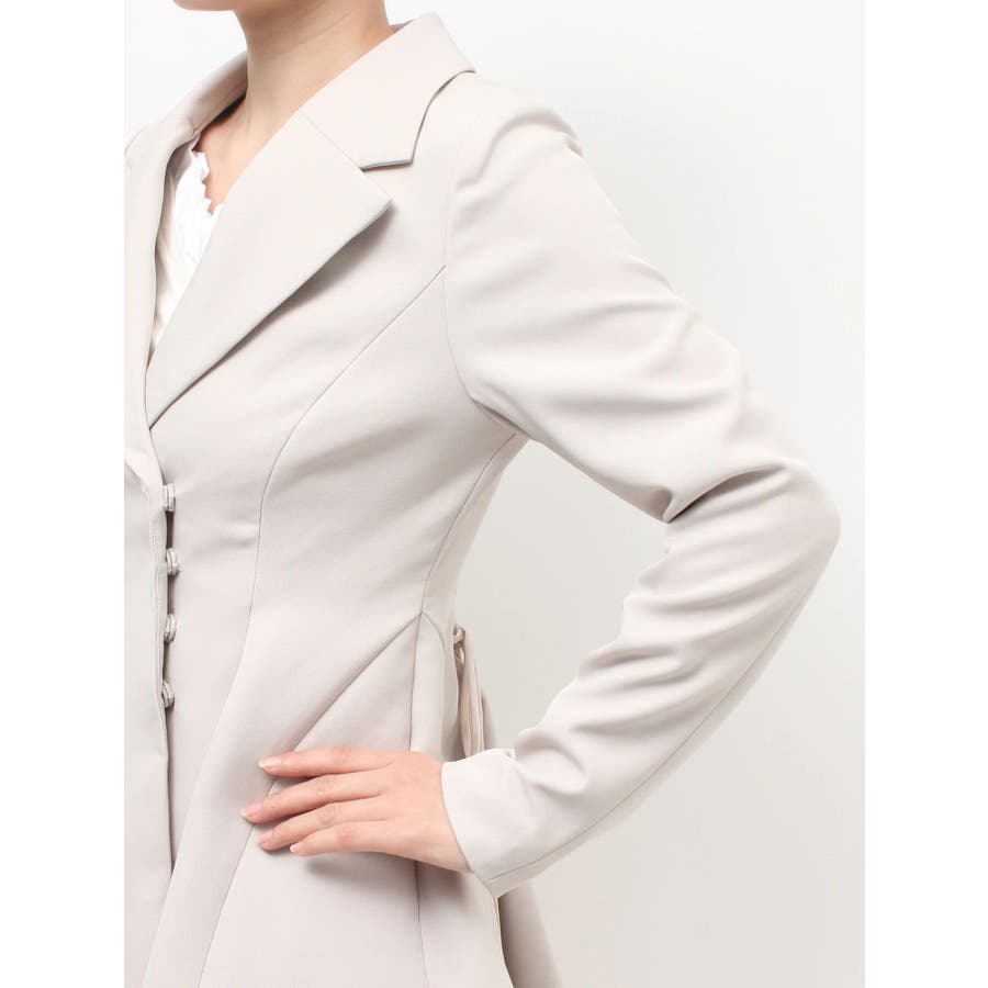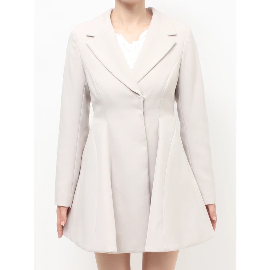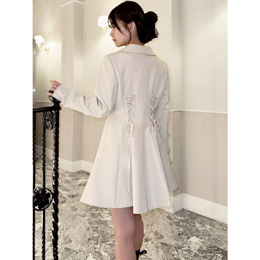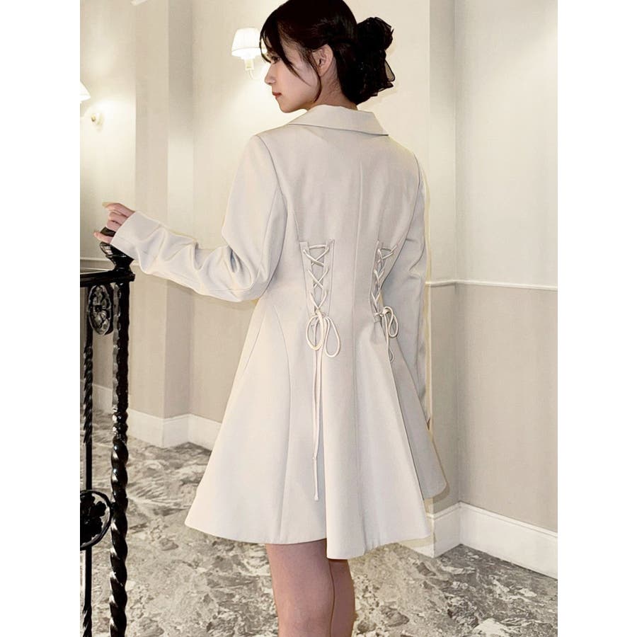 細見えにこだわったテーラードジャケット▽デザイン▽ハリのあるボンディング素材を使い、フィット&フレアの美しいシルエットのジャケットに仕上げました。バックウエスト部分にはレースアップをほどこし、自分のサイズに合わせて調節が可能◎ヒップまで隠れる長めの丈感に設定し、シンプルなデザインながらスタイルアップが叶う1枚に。▽カラー▽白・黒の2色展開。▽スタイリング▽サラッとジャケットとして羽織るのはもちろん、前を閉じてフレアミニワンピースのようなシルエットでも着用できます♪