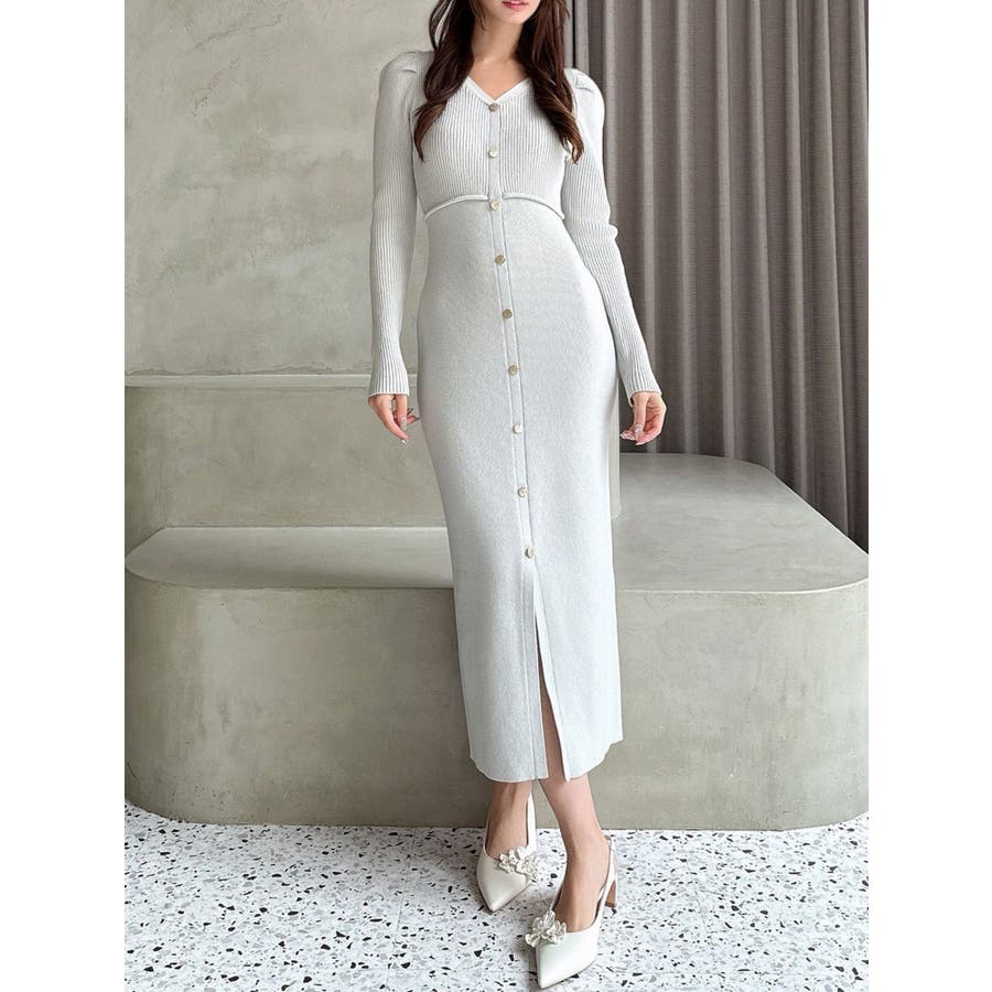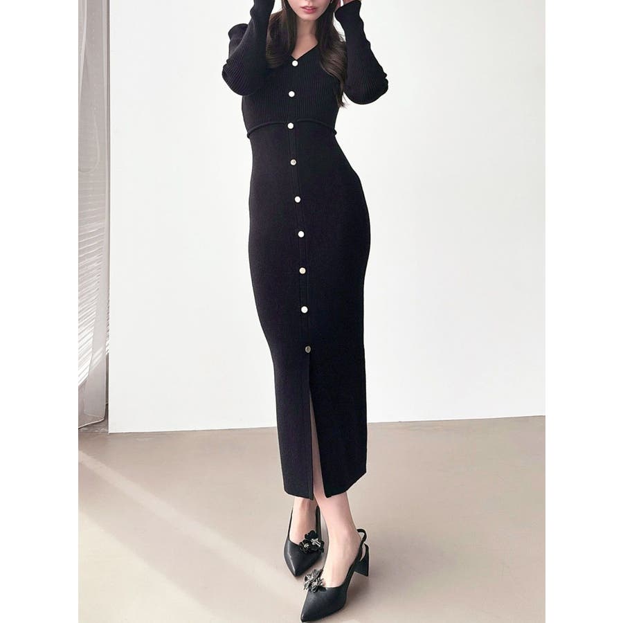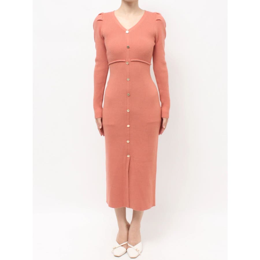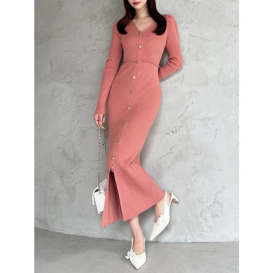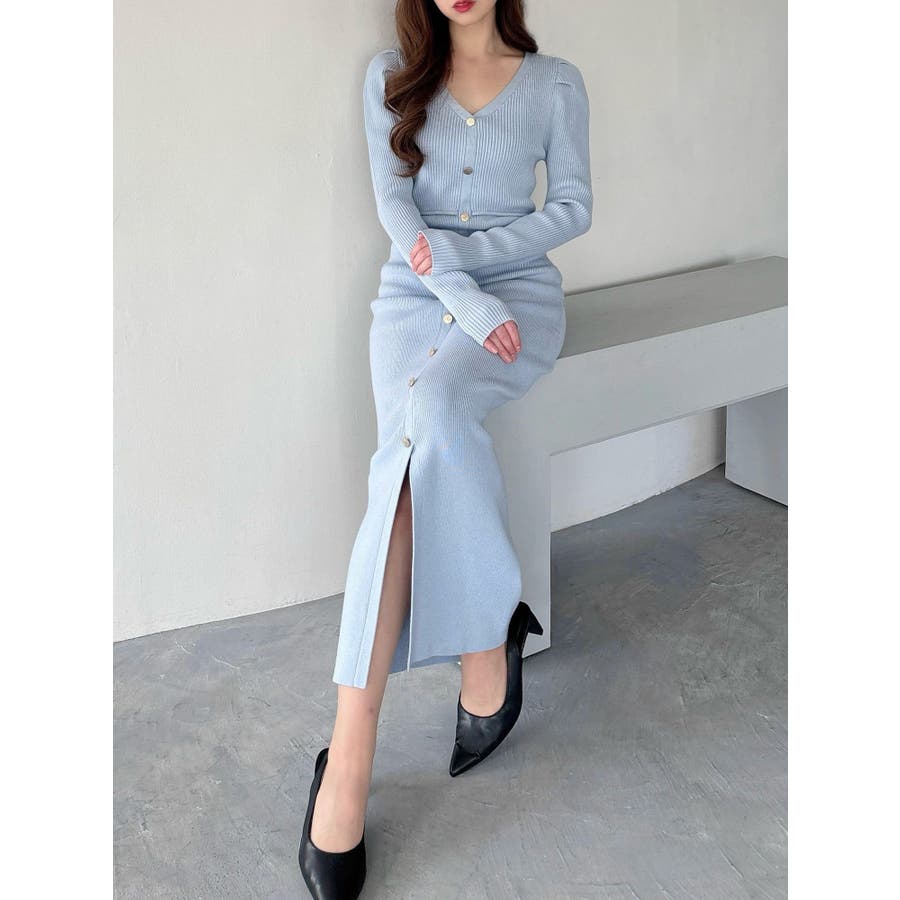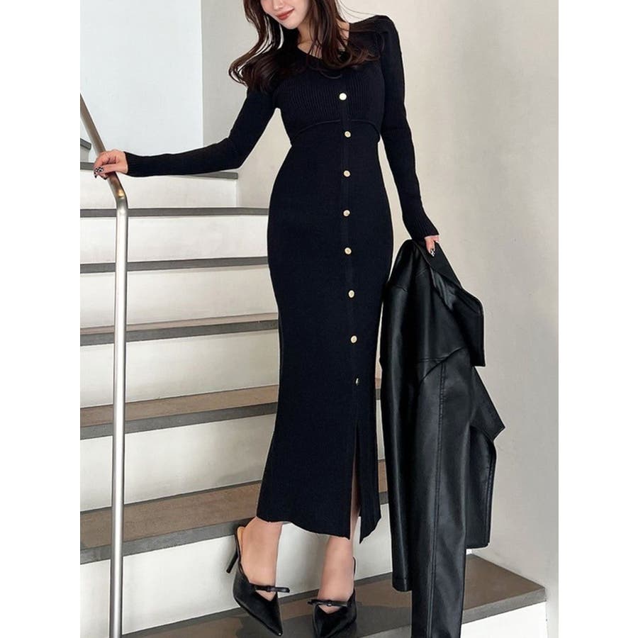 上品なキレイめデザインがポイントのニットワンピースが今年も登場▽デザイン▽毎年大人気!フロントのゴールドボタンに目を惹くタイトニットワンピース。ボディ全体をリブで編み立てたことでストレッチ性抜群のニットワンピースに仕上げました。リブ編みなので体にフィットしボディラインを美しく見せてくれ、バスト下で切り替えラインを入れたのでさらにスタイルアップ効果抜群◎フロントスリットなので足さばきも良く、どんな身長の方でも重たい印象にならず着用いただけます。▽カラー▽黒・青・オレンジ・ミントグリーンの4色展開。肌なじみ良く万能に使えるカラーと、春らしい目を惹くカラーでご用意。▽スタイリング▽サラッと着用できてキレイ目コーデが完成。タイトシルエットなのでジャケットやコートなど春アウターとの相性も抜群♪トレンドに左右されないデザインで長くお使いいただけます。※着用画像はフラッシュの加減で実際の製品と色味等が異なる場合がございますので、生地のズームアップ画像をご確認ください。※ご利用の端末画面の設定により実際の商品と色味が異なる場合がございます。【商品特徴】透け感:なし伸縮性:あり生地の厚さ:普通サイズ感:普通裏地:なしポケット:なしファスナー:なし