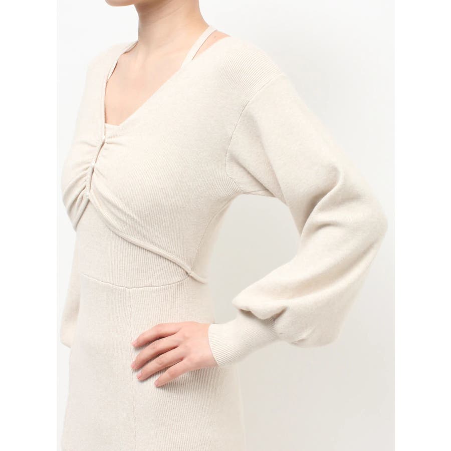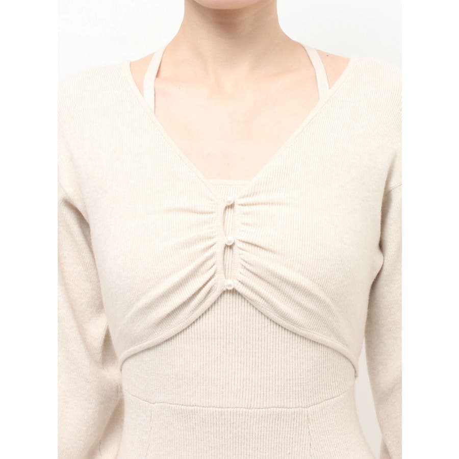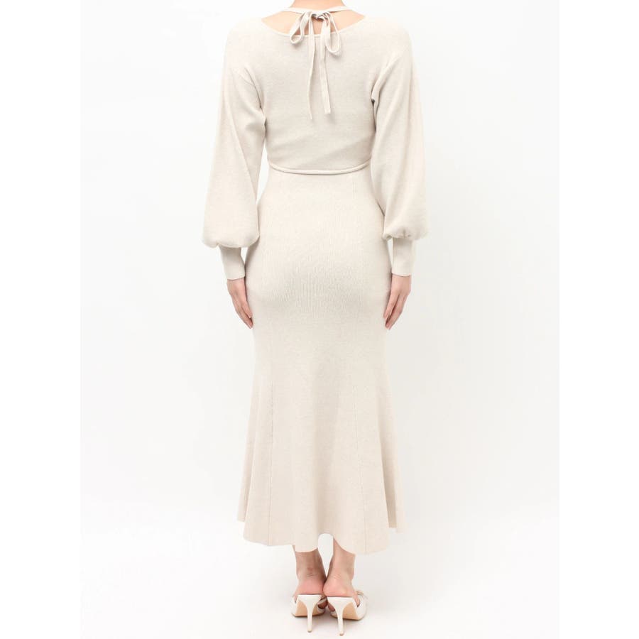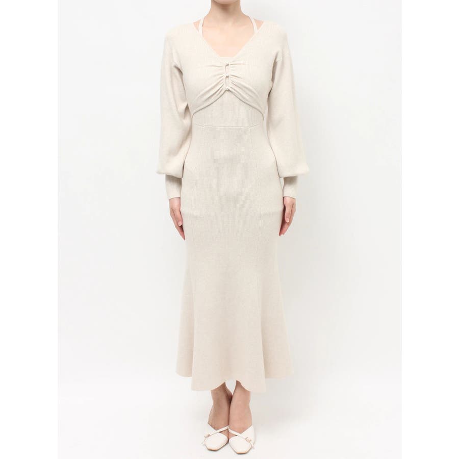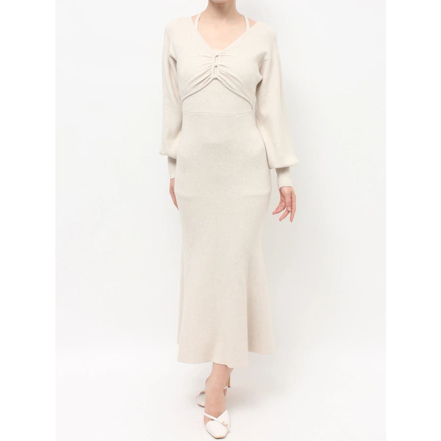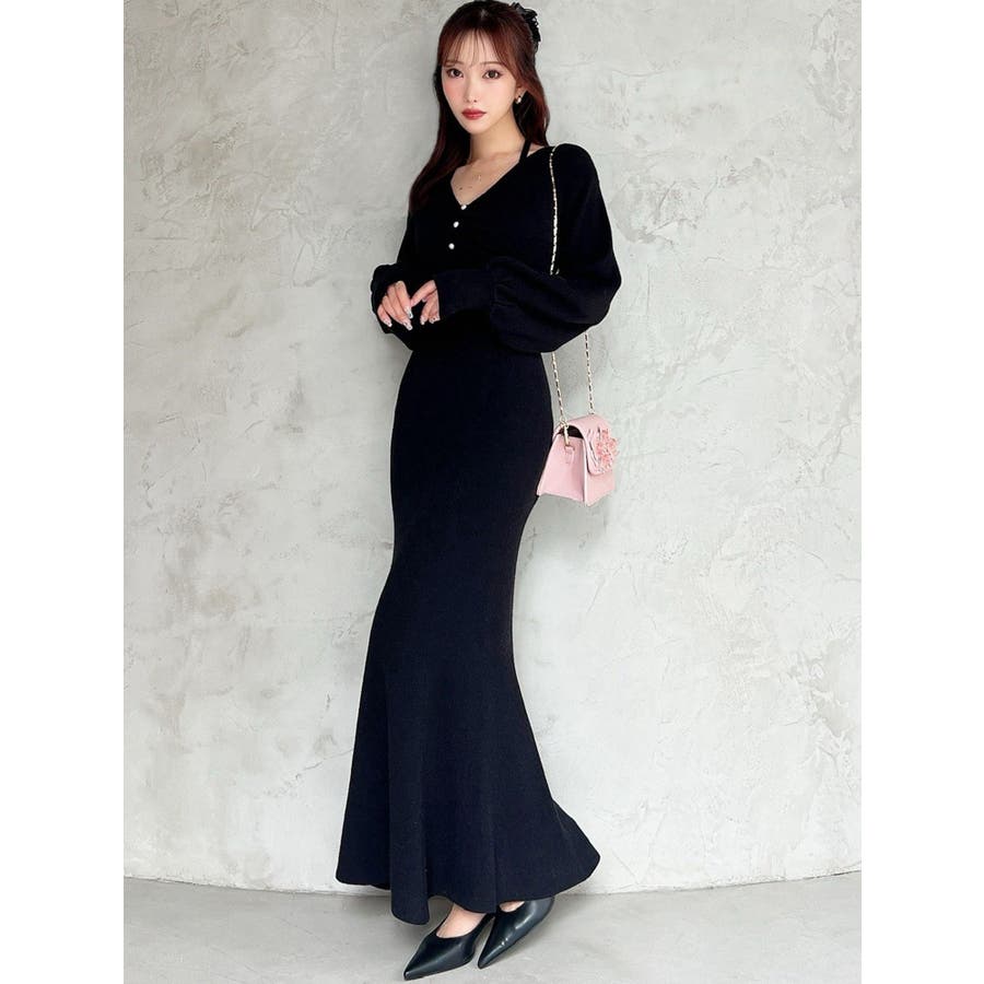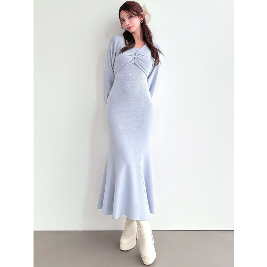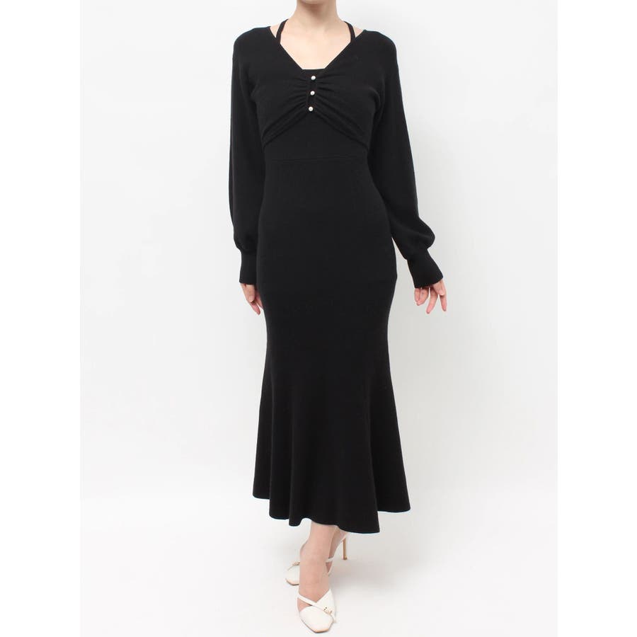 毎年大人気のワンピースが今年も登場!▽デザイン▽クロップド丈のニットカーディガンとマーメイドワンピースのドッキングデザインで1枚でデザイン性のあるレイヤード見えデザインにしました。裾に向かってゆるやかに広がったマーメイドシルエットが大人な印象に。カーディガンのフロントにギャザーを寄せたり、インナーのネックの後ろ部分はリボン結びにしたりとさりげなく女性らしいポイントをプラス。▽カラー▽白・黒・青の3色展開。▽スタイリング▽1枚でサラッと着用できてキレイ目コーデが完成。ボディにフィットするサイズ感なのでアウター羽織りもでき、ロングシーズン活躍します。