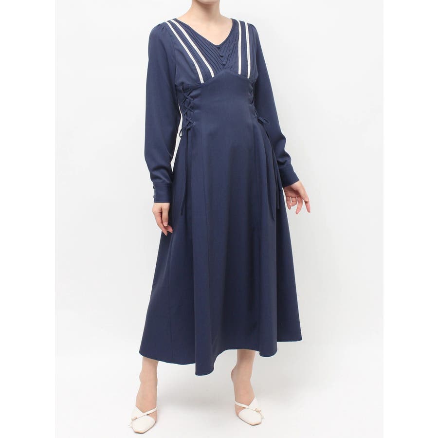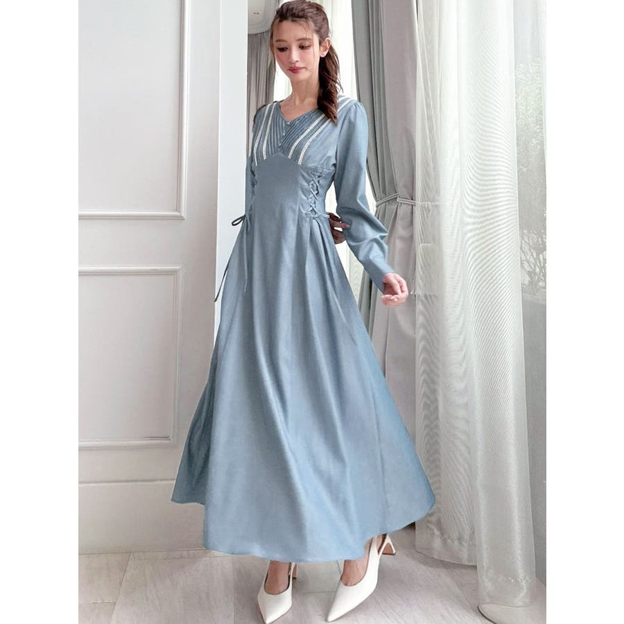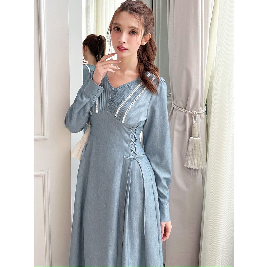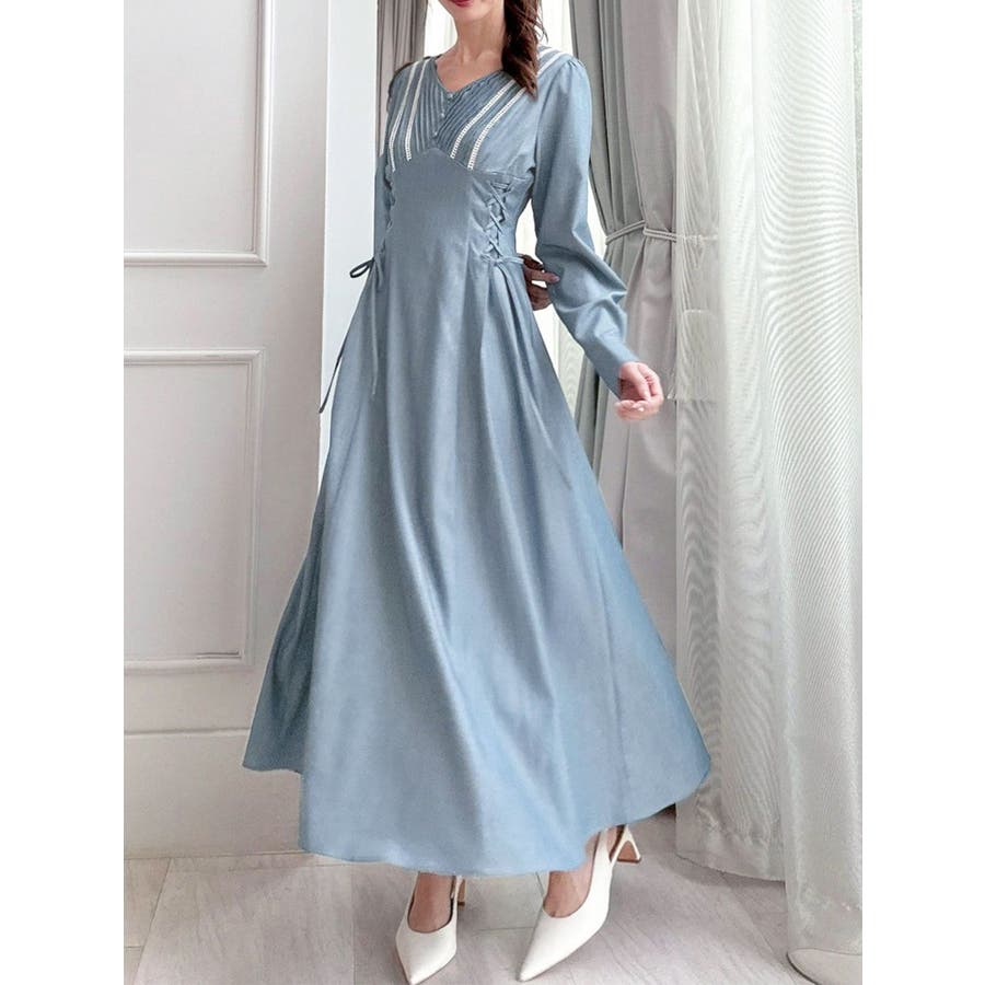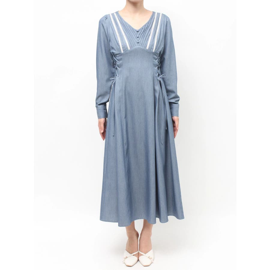 さらっとした生地感が春らしいワンピース▽デザイン▽さらっとした素材にコントラストの効いたレースを施したフレアワンピース。ウエストのレースアップなどモダンなエレガンス感が漂う1枚です。ブルーとネイビーはデニムライクな素材を使用し、カジュアルな雰囲気の中にも上品さをプラスしました。▽カラー▽青、ネイビー、ベージュの3色展開。▽スタイリング▽ジャケットを羽織ったフォーマルな着こなしのほかカーディガンを合わせたフェミニンなコーディネートもおすすめ◎オケージョンにもお使いいただけるキレイ目ワンピースです♪