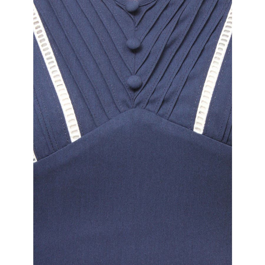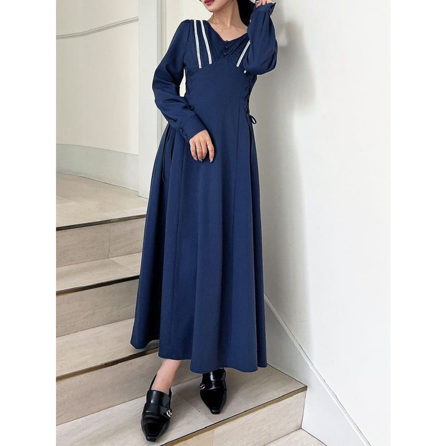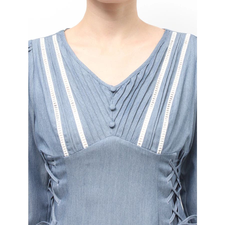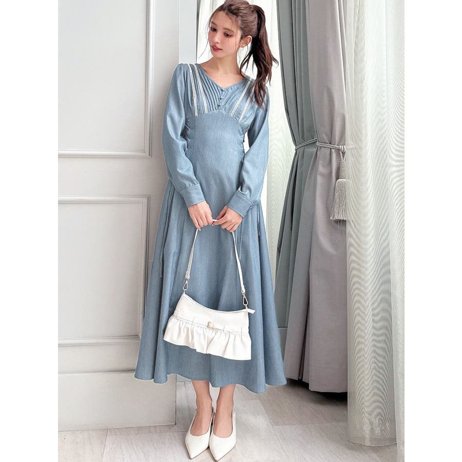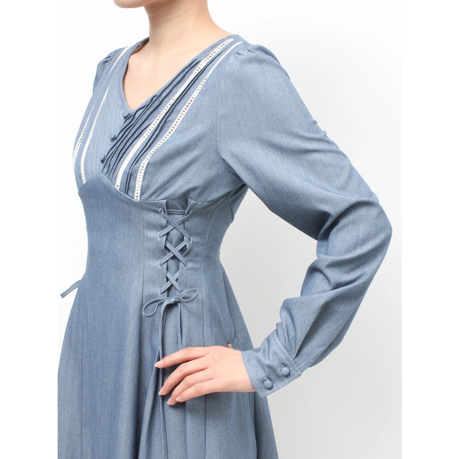 さらっとした生地感が春らしいワンピース▽デザイン▽さらっとした素材にコントラストの効いたレースを施したフレアワンピース。ウエストのレースアップなどモダンなエレガンス感が漂う1枚です。ブルーとネイビーはデニムライクな素材を使用し、カジュアルな雰囲気の中にも上品さをプラスしました。▽カラー▽青、ネイビー、ベージュの3色展開。▽スタイリング▽ジャケットを羽織ったフォーマルな着こなしのほかカーディガンを合わせたフェミニンなコーディネートもおすすめ◎オケージョンにもお使いいただけるキレイ目ワンピースです♪