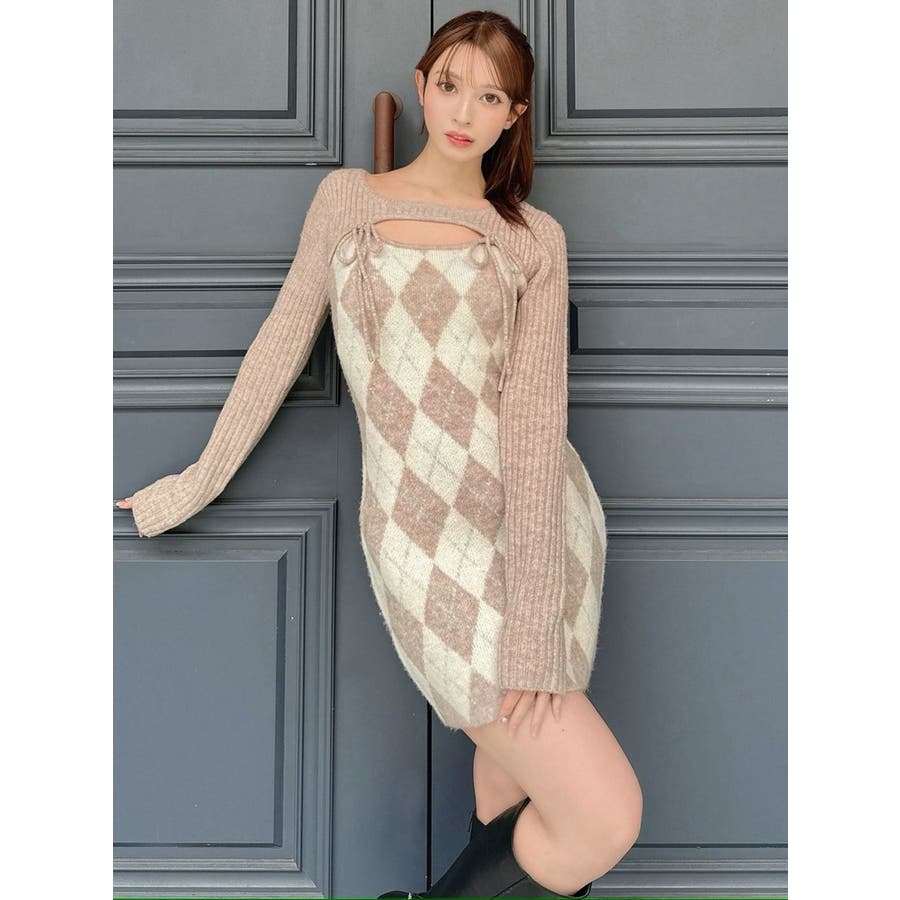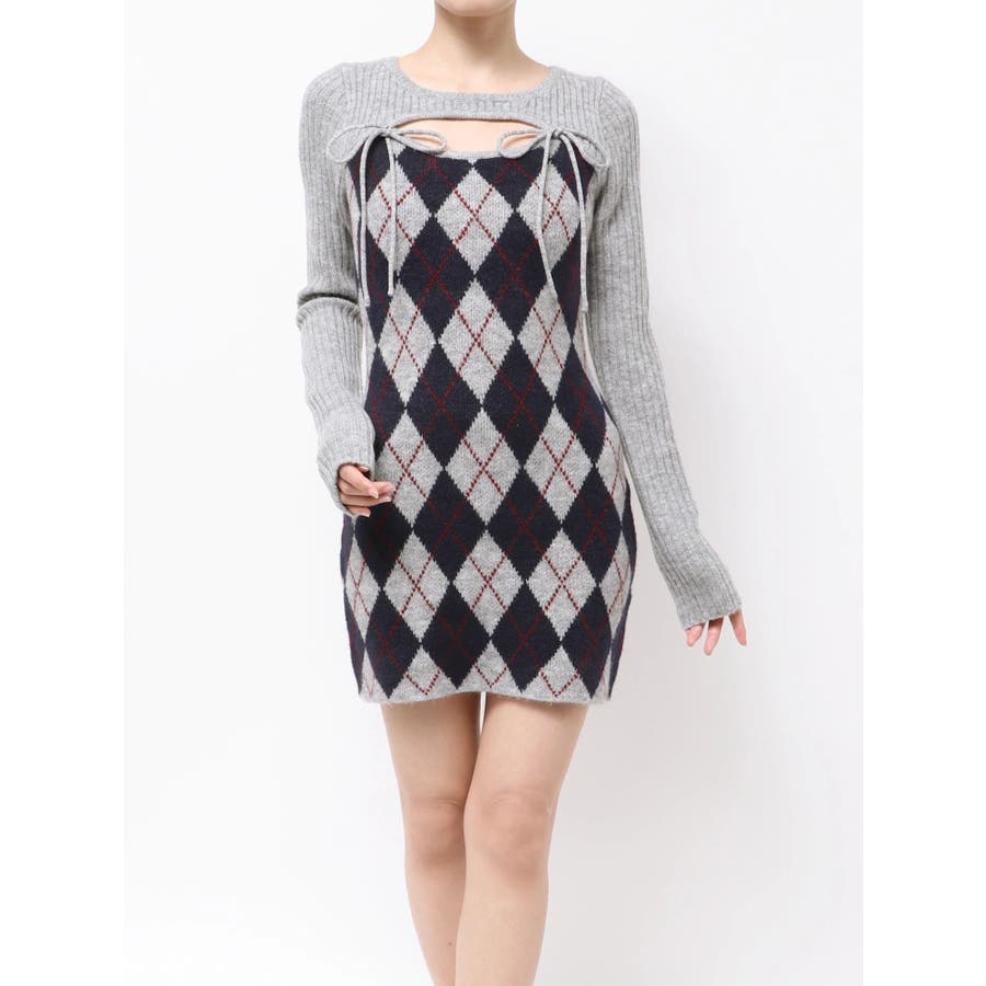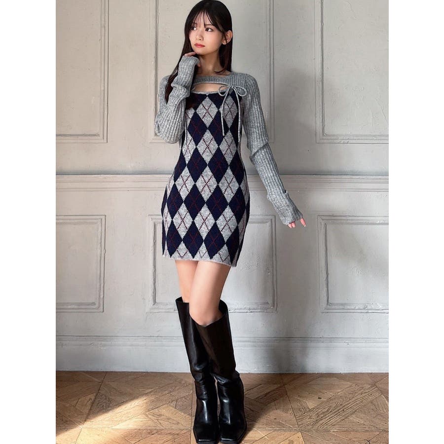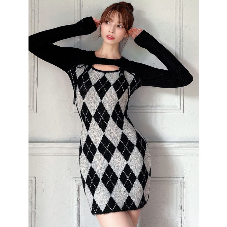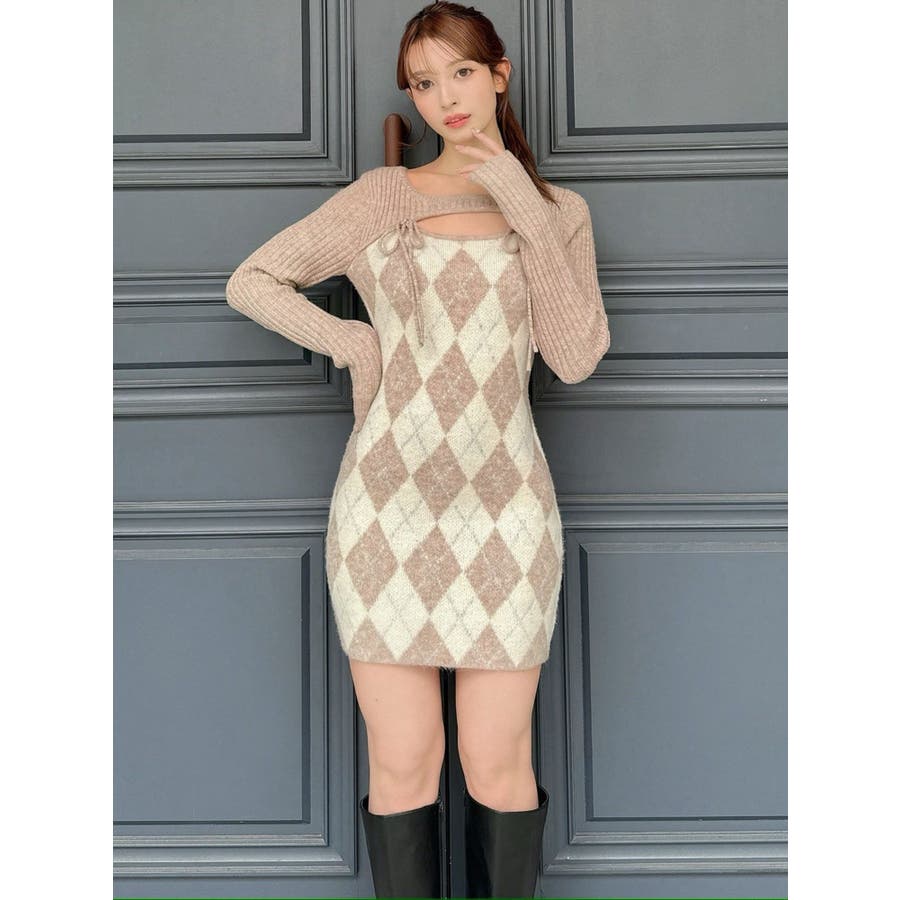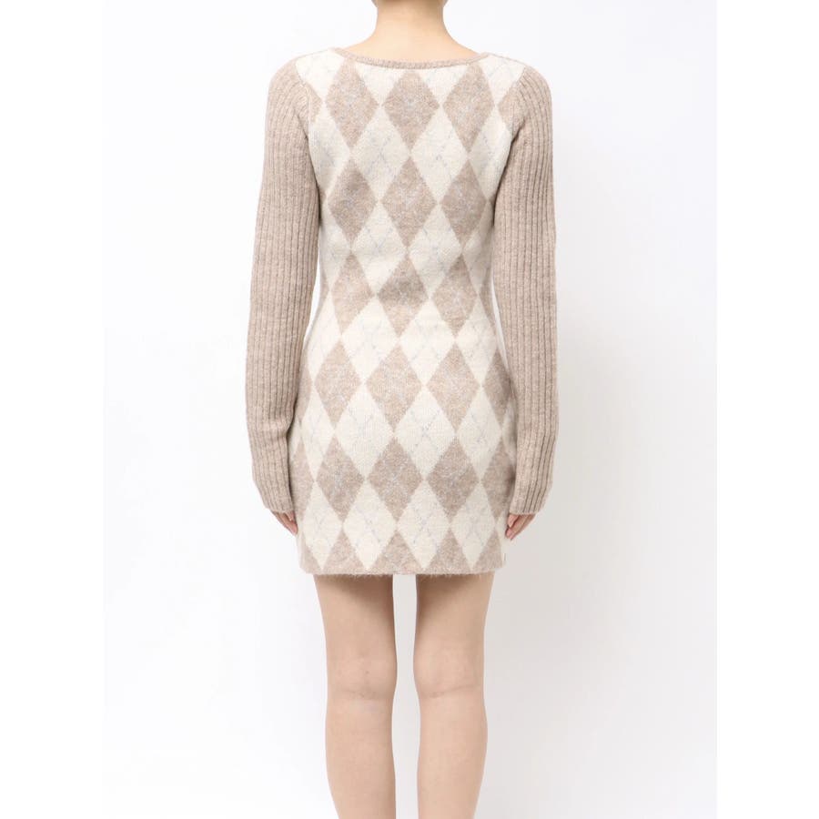 アーガイルタイトニットミニワンピース