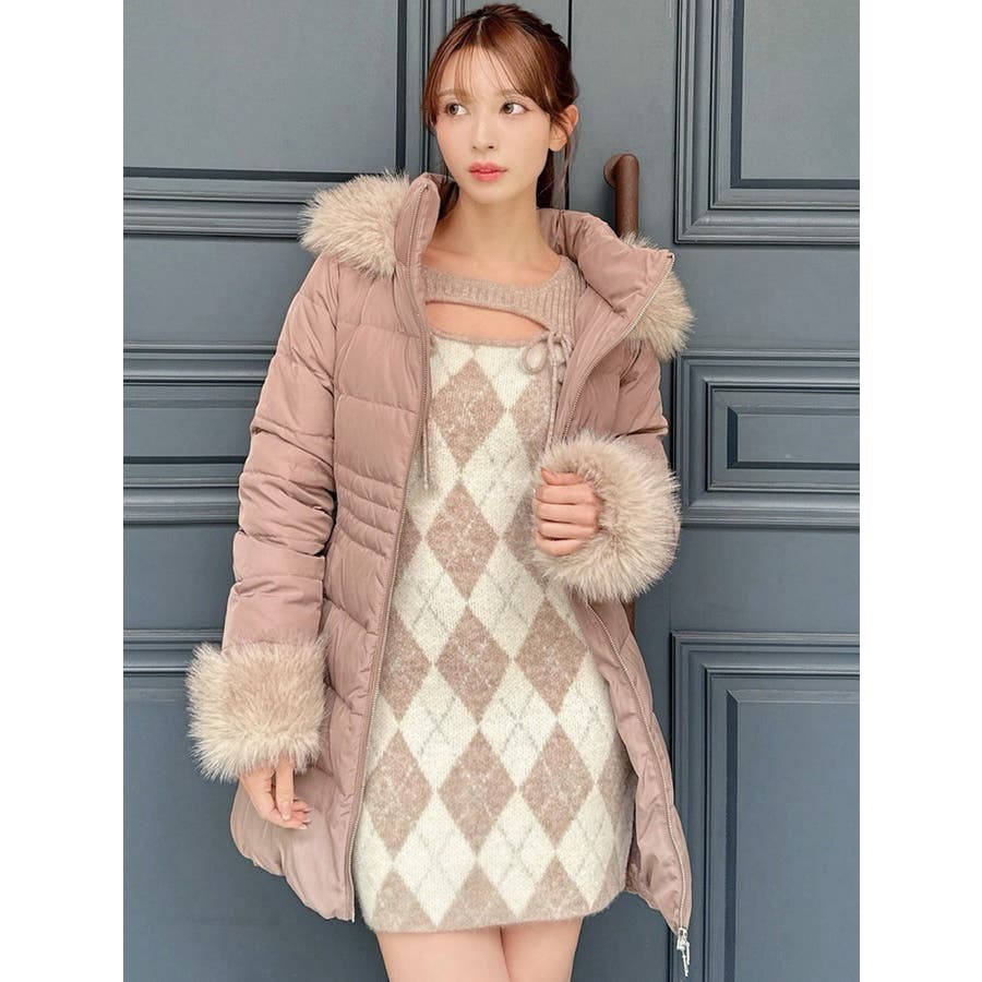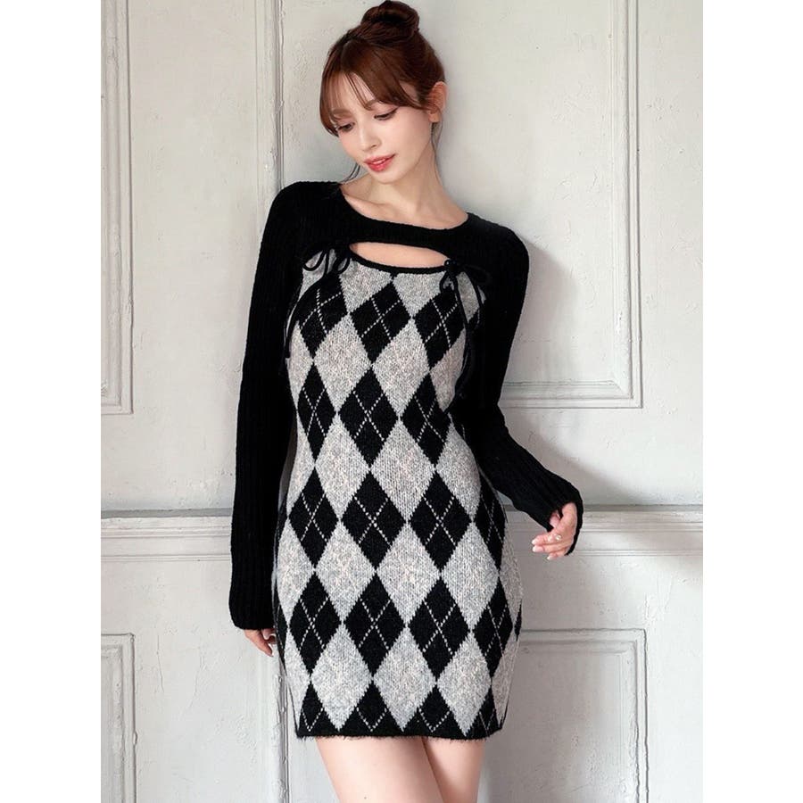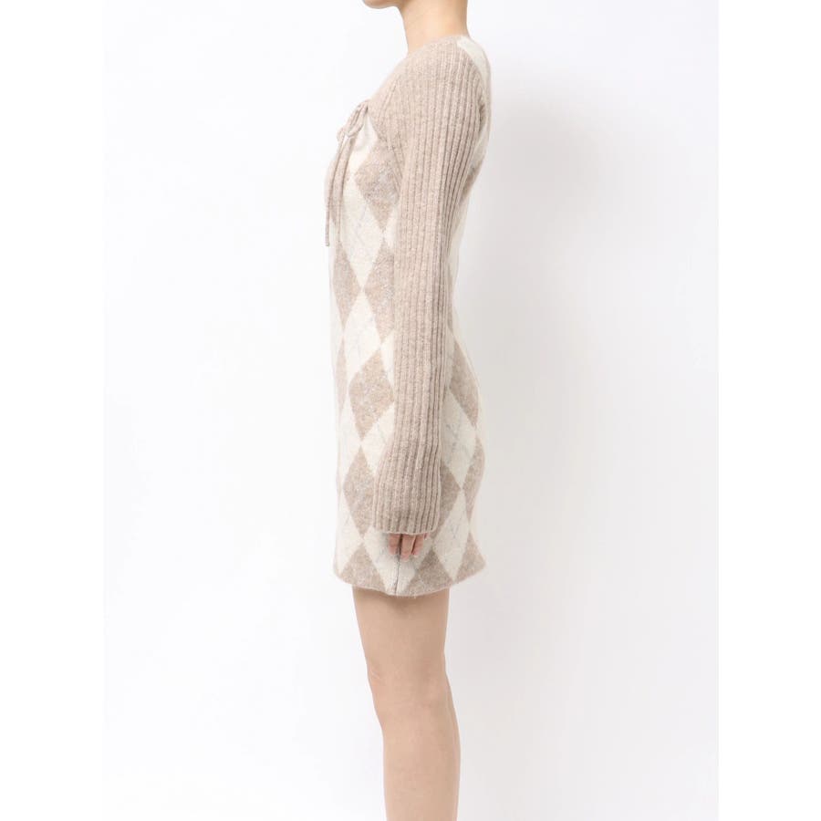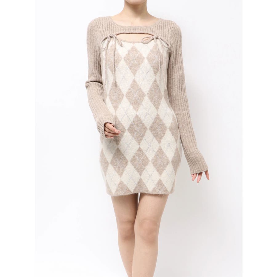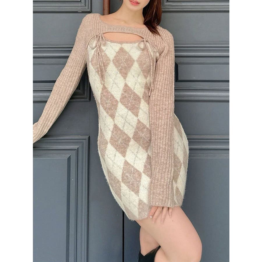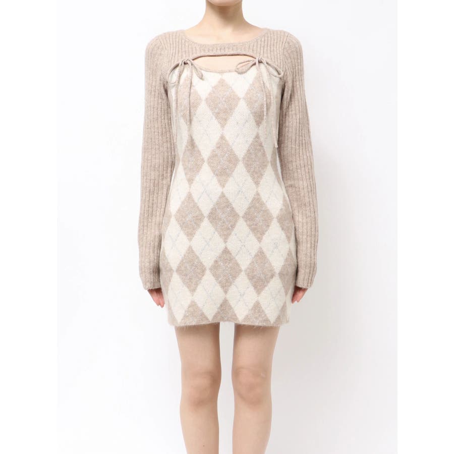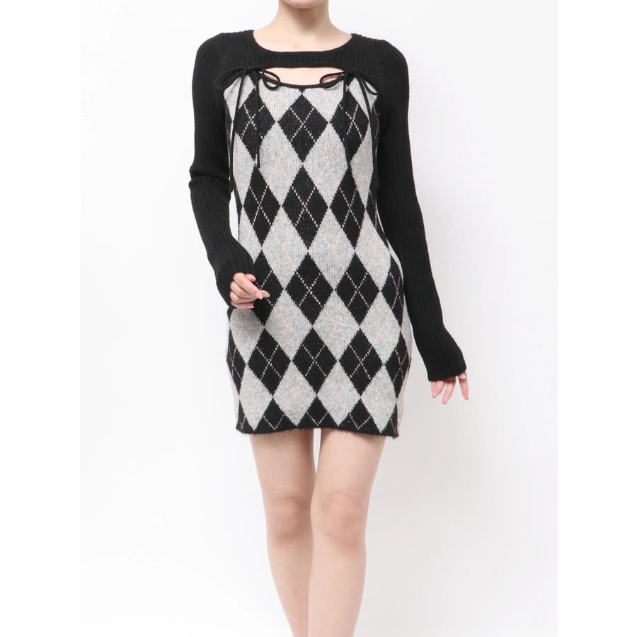 アーガイルタイトニットミニワンピース