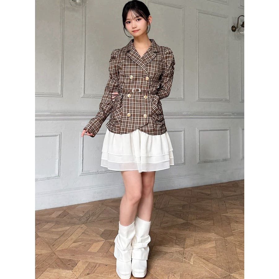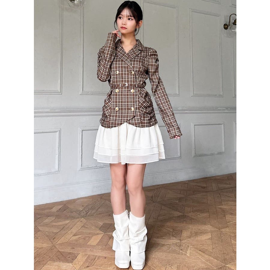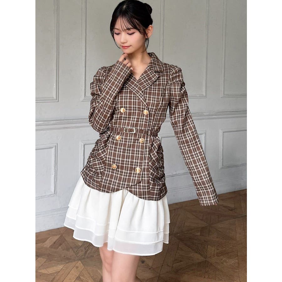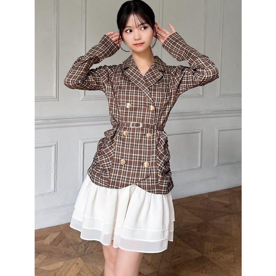 人気だったジャケットワンピースが長袖バージョンで登場♪▽デザイン▽春らしい配色のチェック柄が目を惹く1枚。ジャケットとフリルのペチスカートのSETアイテムなので取り外しができ着回しの幅が広がります。キチンと感がありつつもシアー素材のあるフリルスカートで抜け感のあるバランスの良いアイテムに。細ベルト付きなのでウエストマークができメリハリのあるシルエットを演出。▽カラー▽無地の白と、チェック柄のグレー・ブラウンの3色展開。▽スタイリング▽1枚でトレンド感のあるスタイリングに。ペチスカートはお持ちのアイテムに合わせてもお使いいただけます♪