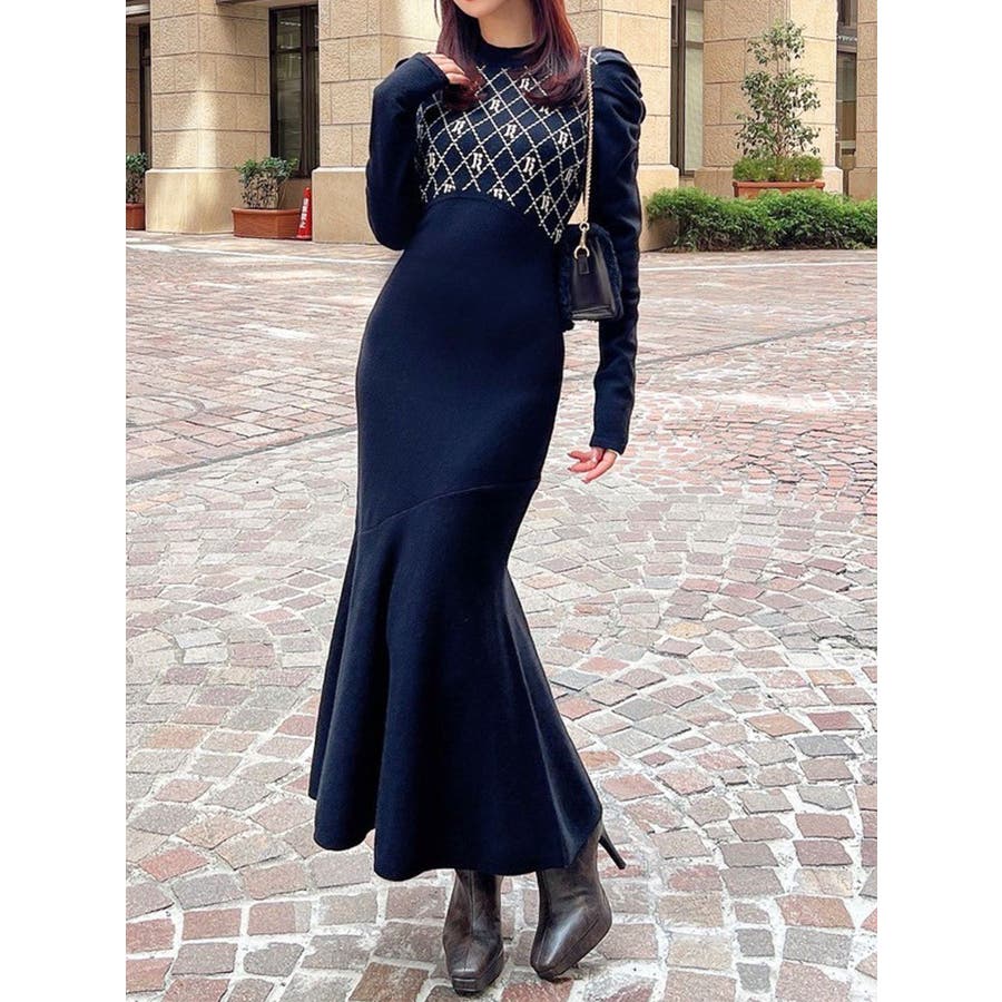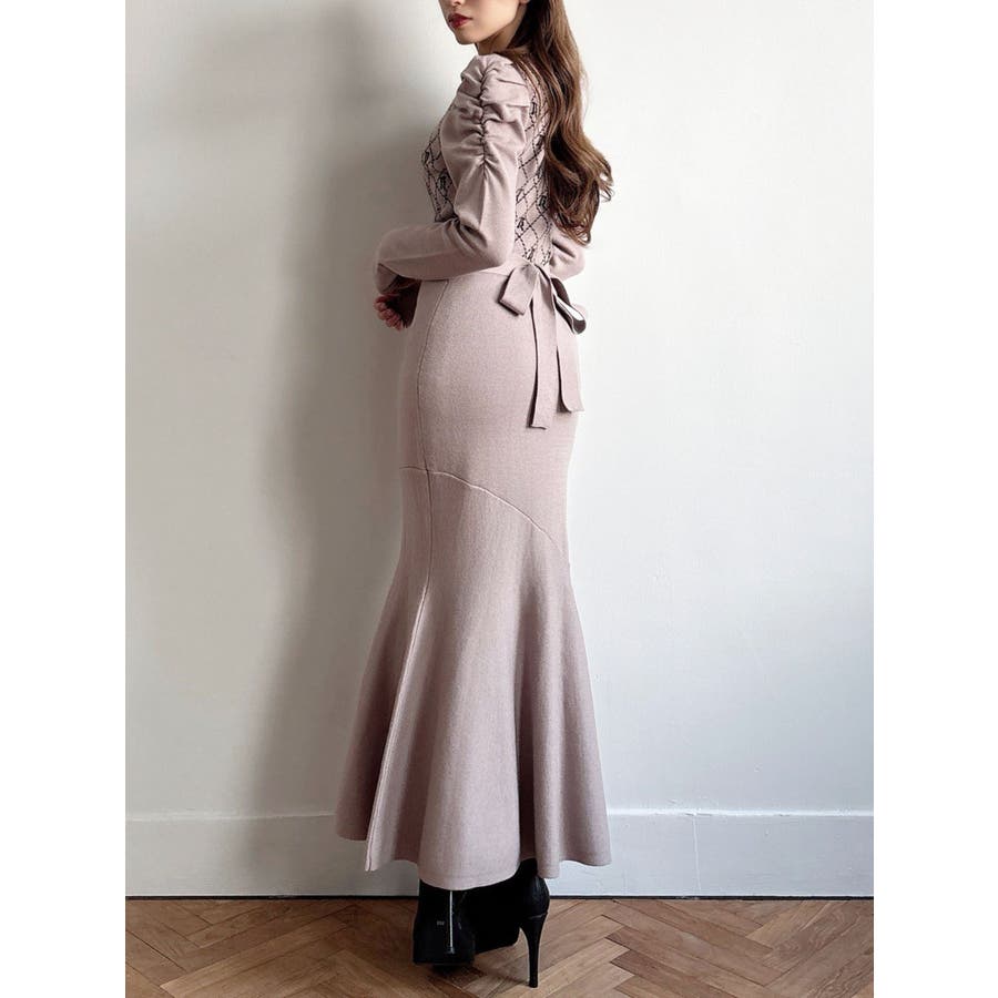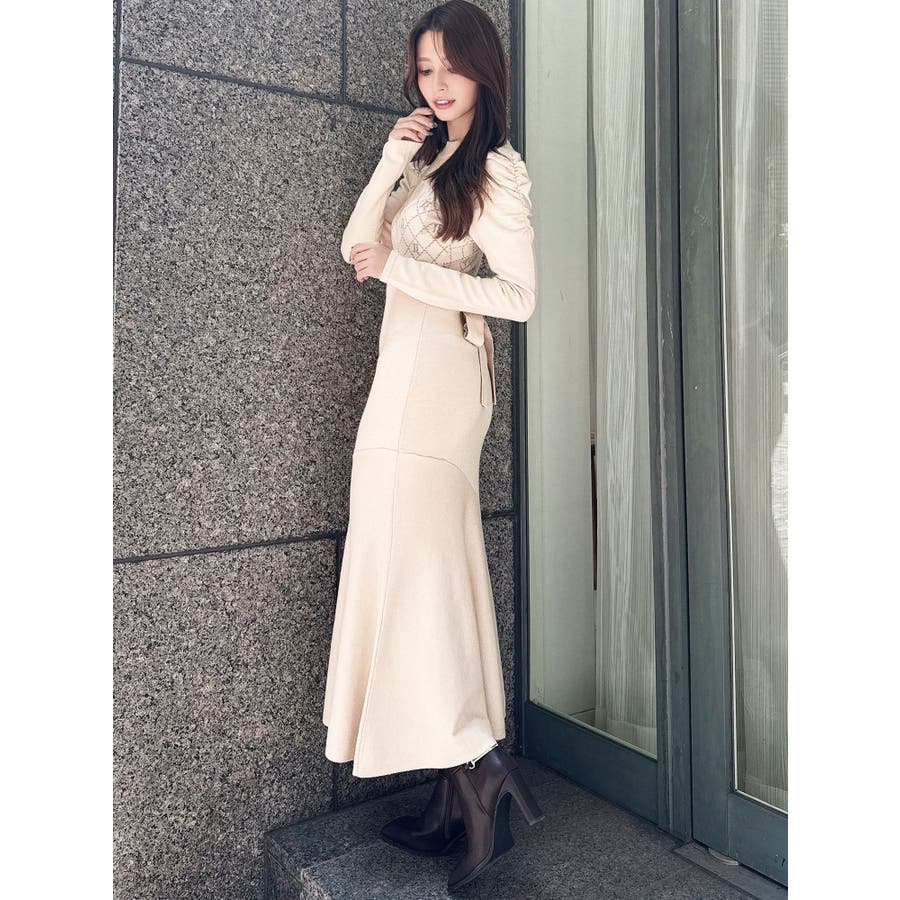 毎年人気のジャガードワンピースの新バージョン!▽デザイン▽定番人気のマーメイドシルエットワンピースに、ブランドのイニシャルである「R」のアレンジロゴをバイカラーで加えたワンピース。バスト下の切り替えで1枚でスタイルアップが叶います。袖にはギャザーを寄せ女性らしさをプラス。バックリボンでウエストを絞り、更にスタイルアップできるデザインです◎▽カラー▽白・黒・ベージュの3色展開。上品な印象の配色にこだわりました!▽スタイリング▽1枚でサラッと着用できてキレイ目コーデが完成◎マーメイドシルエットなのでショート丈アウターとも相性抜群!※着用画像はフラッシュの加減で実際の製品と色味等が異なる場合がございますので、生地のズームアップ画像をご確認ください。※ご利用の端末画面の設定により実際の商品と色味が異なる場合がございます。【商品特徴】透け感:なし伸縮性:あり生地の厚さ:薄手サイズ感:細身裏地:なしポケット:なしファスナー:なし