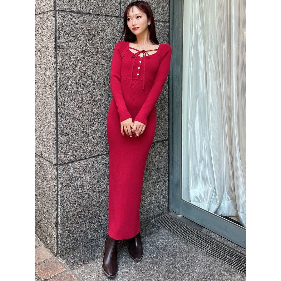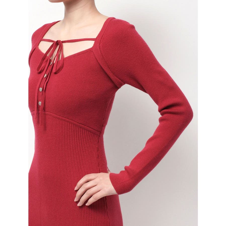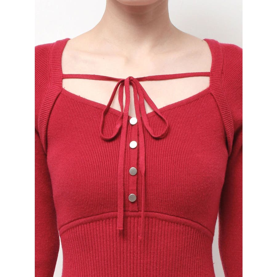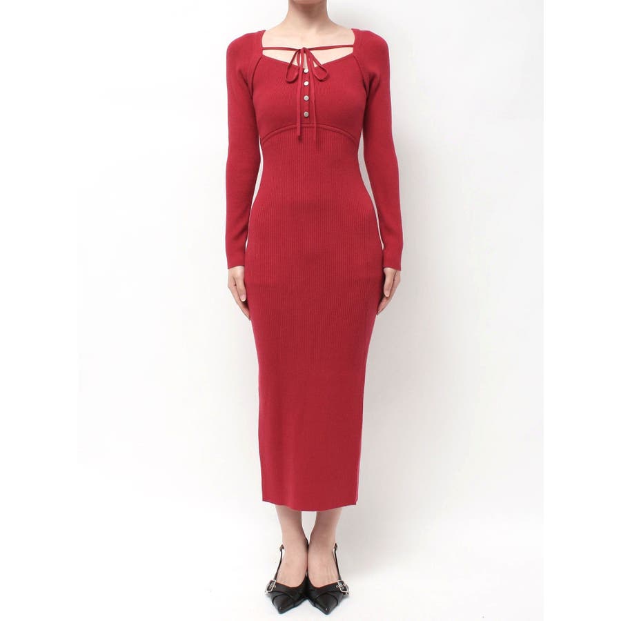 フロントリボンとゴールドボタンが目を惹くタイトワンピース▽デザイン▽デコルテのオープンデザインと、揺れる可憐なリボンが女性らしさを演出してくれます。ボディラインを美しく見せてくれるタイトシルエットでバスト下で切り替えラインを入れたのでさらにスタイルアップ効果のあるデザインに仕上げました。▽カラー▽白・黒・赤の3色展開。▽スタイリング▽1枚でキレイ目コーデが完成。タイトワンピースなのでアウター合わせもピッタリ◎※着用画像はフラッシュの加減で実際の製品と色味等が異なる場合がございますので、生地のズームアップ画像をご確認ください。※ご利用の端末画面の設定により実際の商品と色味が異なる場合がございます。【商品特徴】透け感:なし伸縮性:あり生地の厚さ:普通サイズ感:細身裏地:なしポケット:なしファスナー:なし