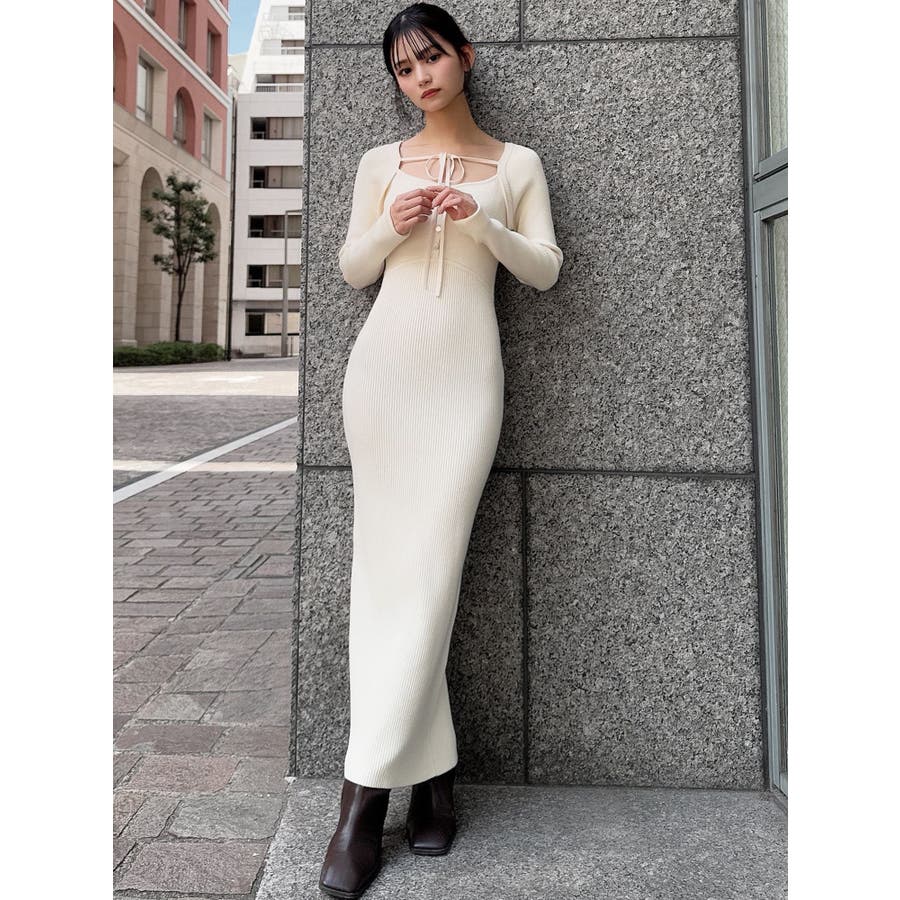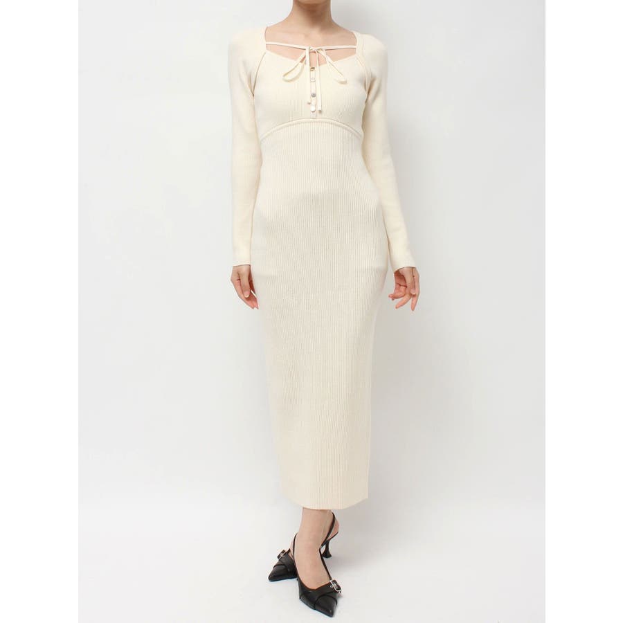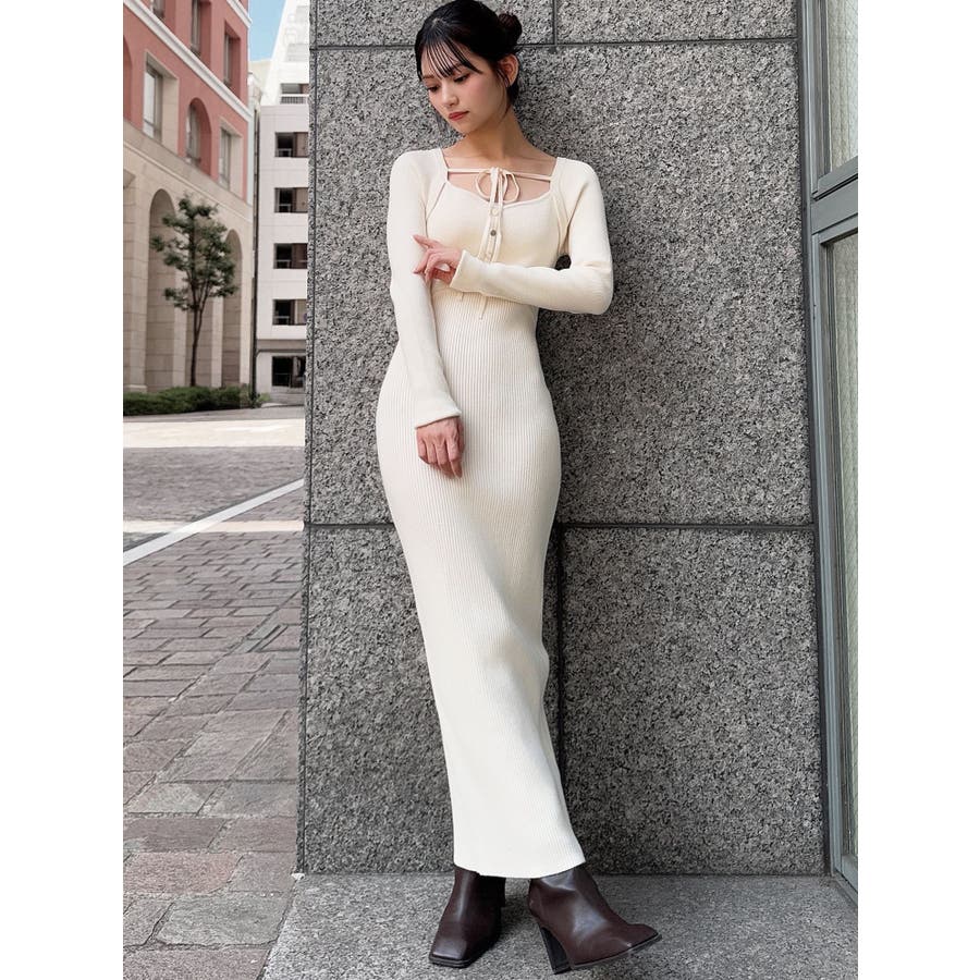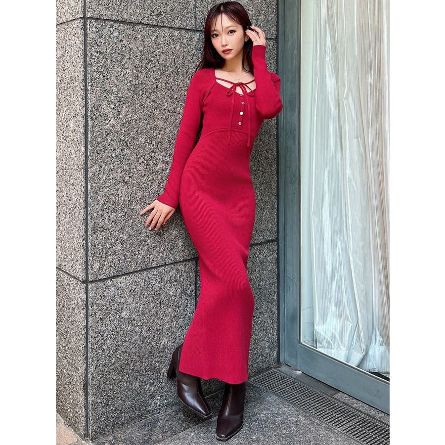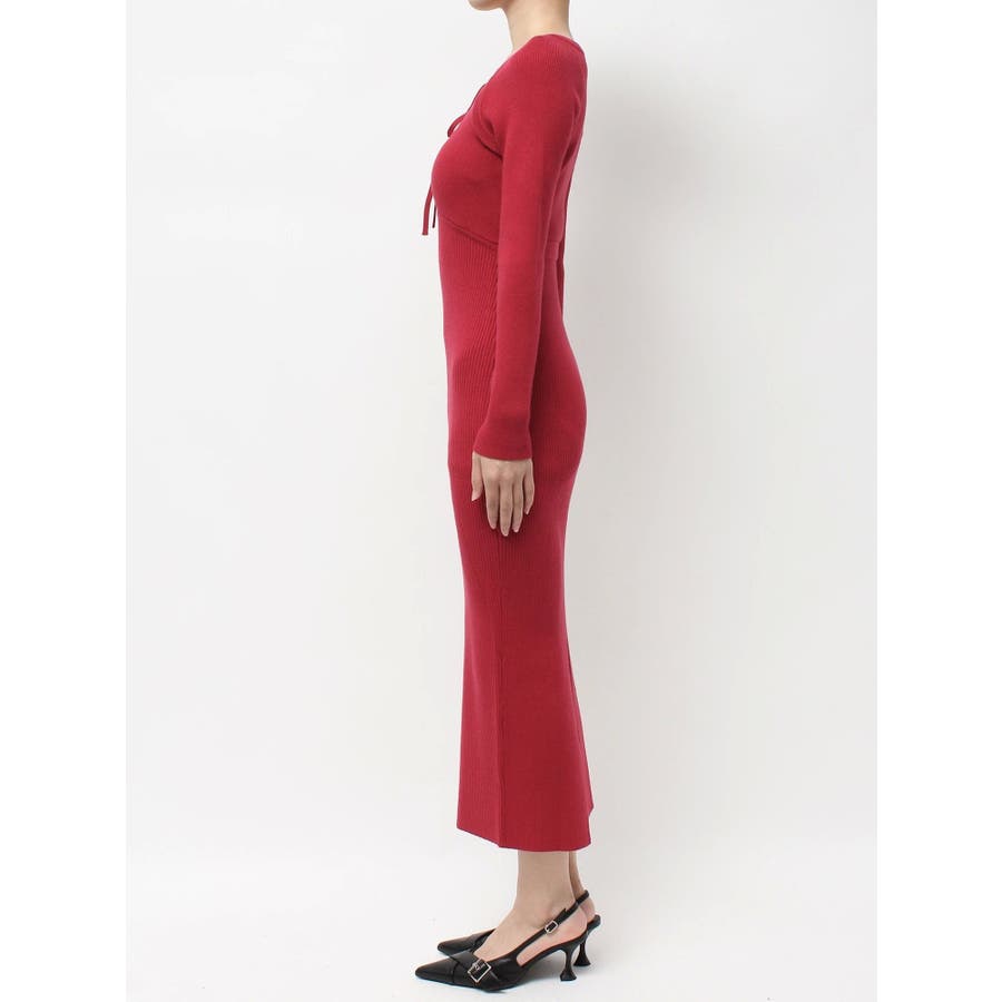 フロントリボンとゴールドボタンが目を惹くタイトワンピース▽デザイン▽デコルテのオープンデザインと、揺れる可憐なリボンが女性らしさを演出してくれます。ボディラインを美しく見せてくれるタイトシルエットでバスト下で切り替えラインを入れたのでさらにスタイルアップ効果のあるデザインに仕上げました。▽カラー▽白・黒・赤の3色展開。▽スタイリング▽1枚でキレイ目コーデが完成。タイトワンピースなのでアウター合わせもピッタリ◎※着用画像はフラッシュの加減で実際の製品と色味等が異なる場合がございますので、生地のズームアップ画像をご確認ください。※ご利用の端末画面の設定により実際の商品と色味が異なる場合がございます。【商品特徴】透け感:なし伸縮性:あり生地の厚さ:普通サイズ感:細身裏地:なしポケット:なしファスナー:なし