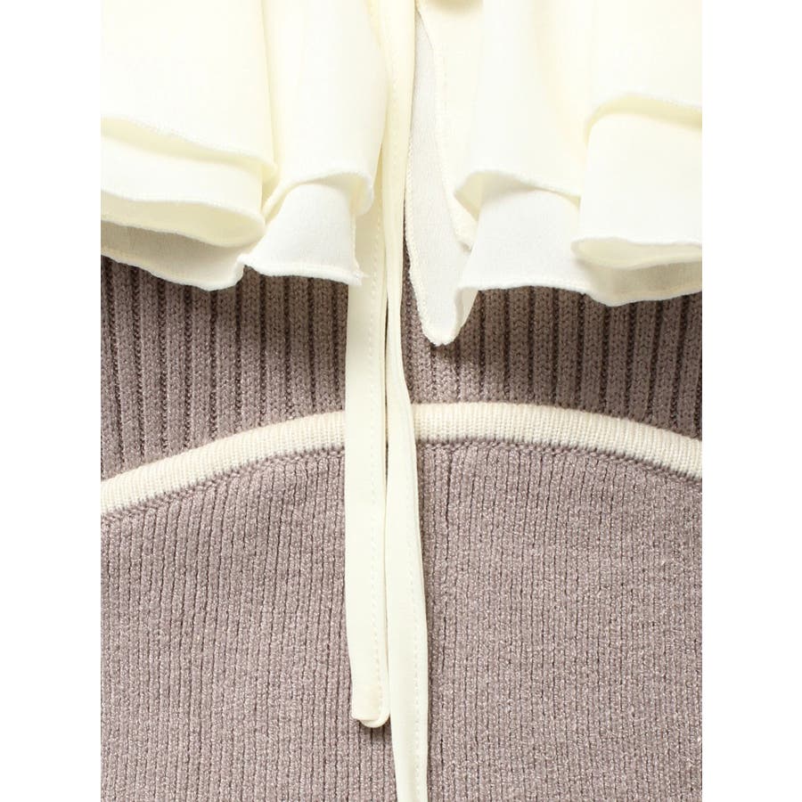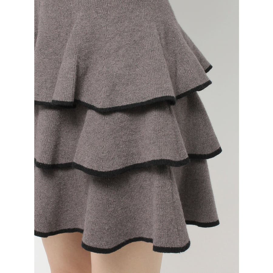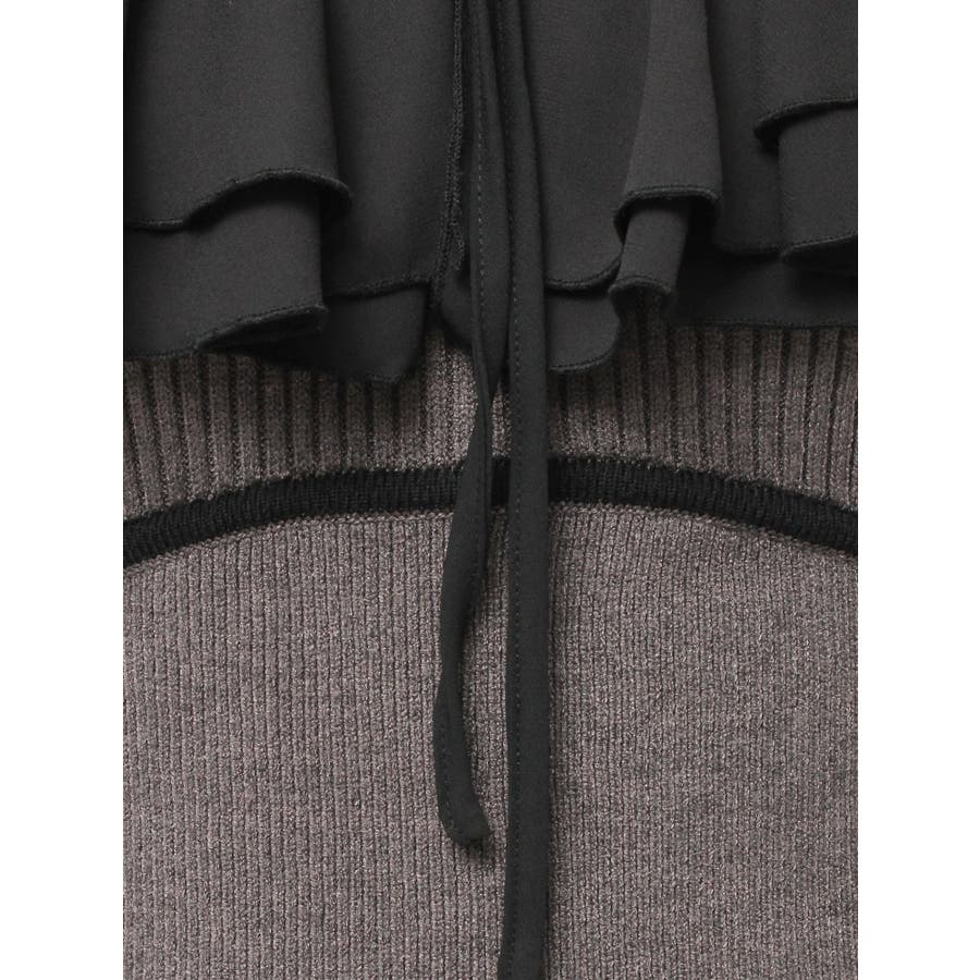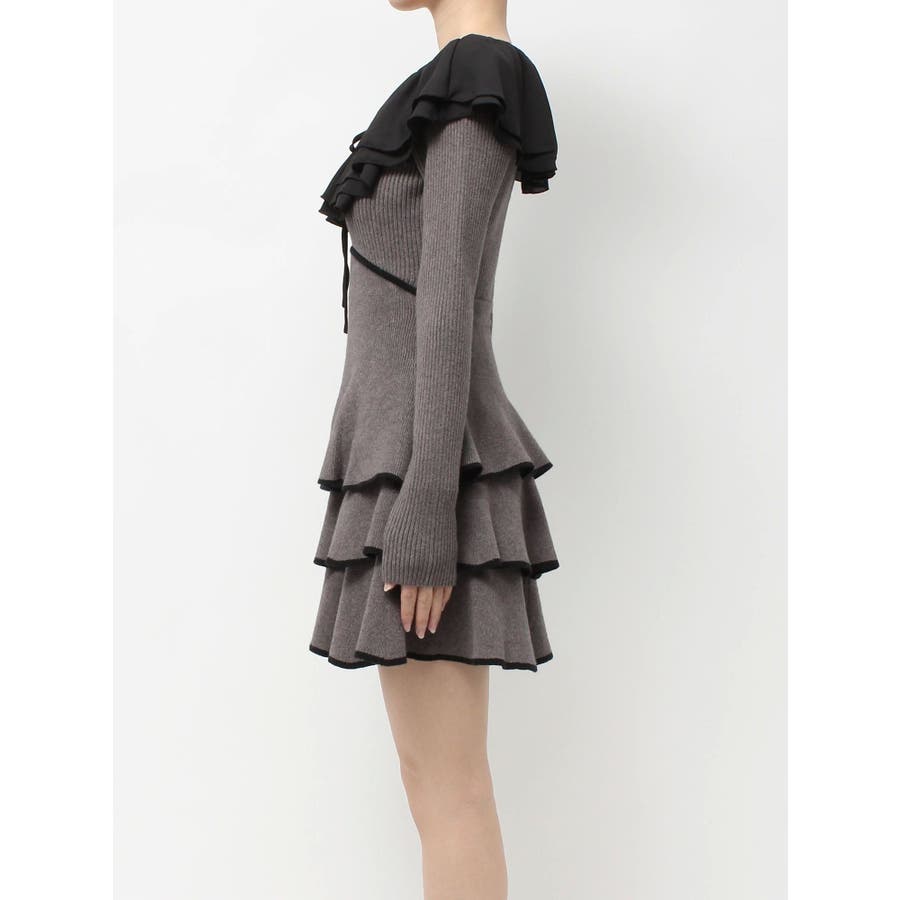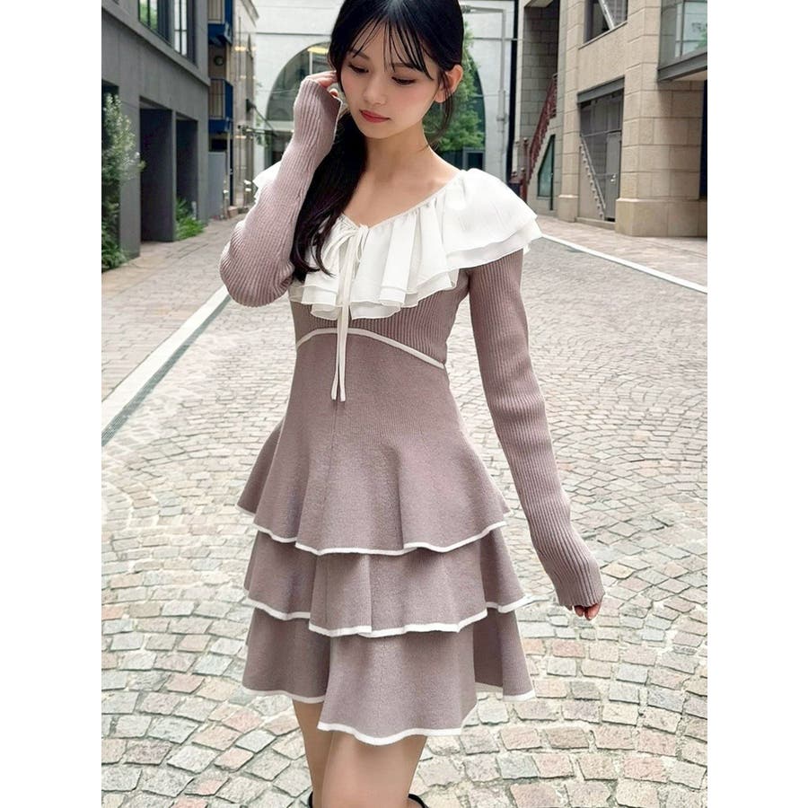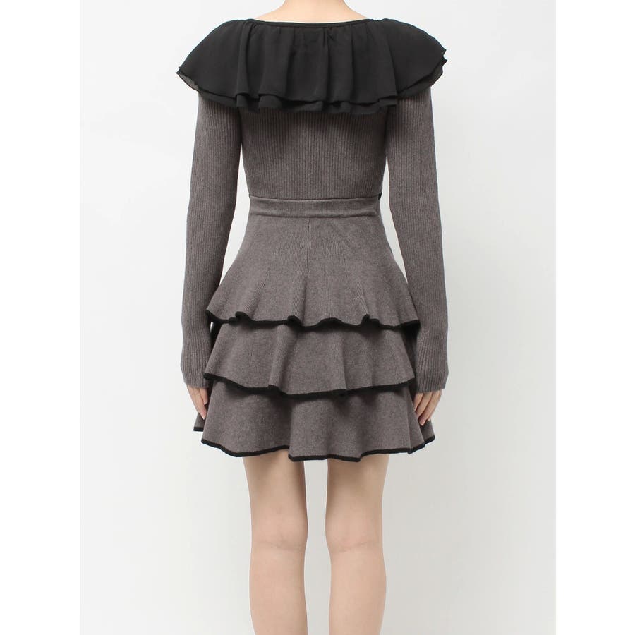 フリルデザインが目を惹くニットワンピース▽デザイン▽襟にフリルデザインがあることで顔周りが華やかに♪スカート部分もトレンド感のあるフリル連段デザインでボリューム感を出しました♪ウエストにはカーブ切り替えを入れたことでスッキリしたウエストラインに。バイカラーデザインが甘くなりすぎないメリハリ感をプラス。▽カラー▽黒・チャコールグレー・ベージュの3色展開。▽スタイリング▽ニットワンピなのでサラッと着れてフェミニンコーデに♪アウター合わせはもちろん、秋や春に1枚で着てもサマになるデザインです◎