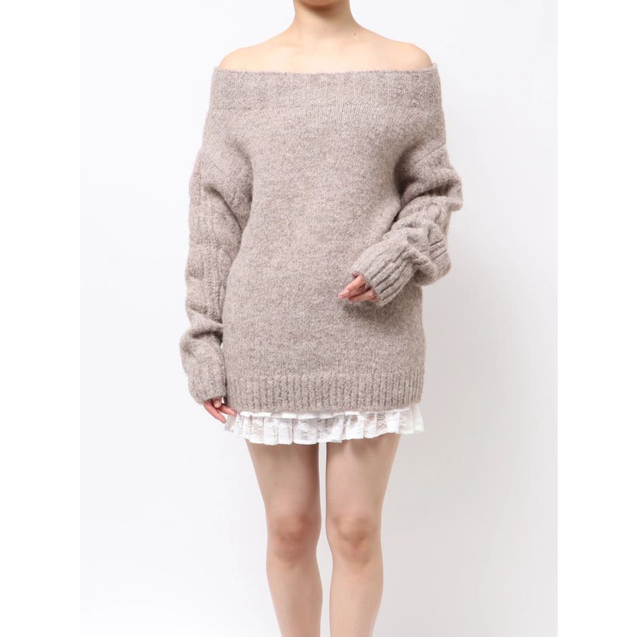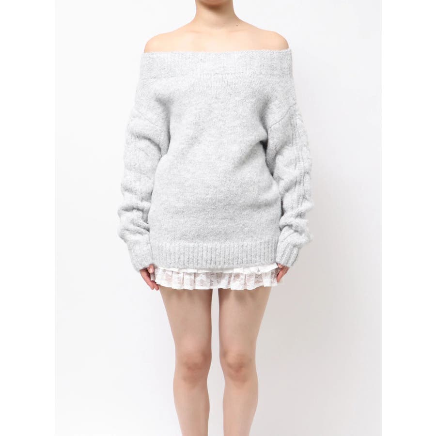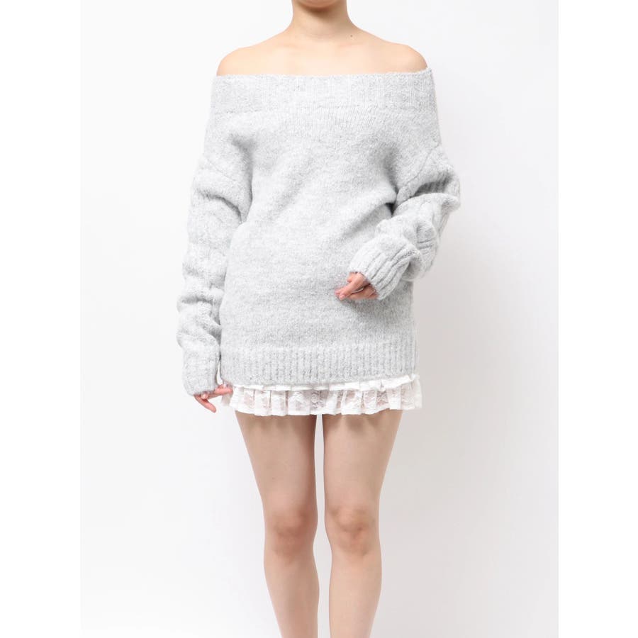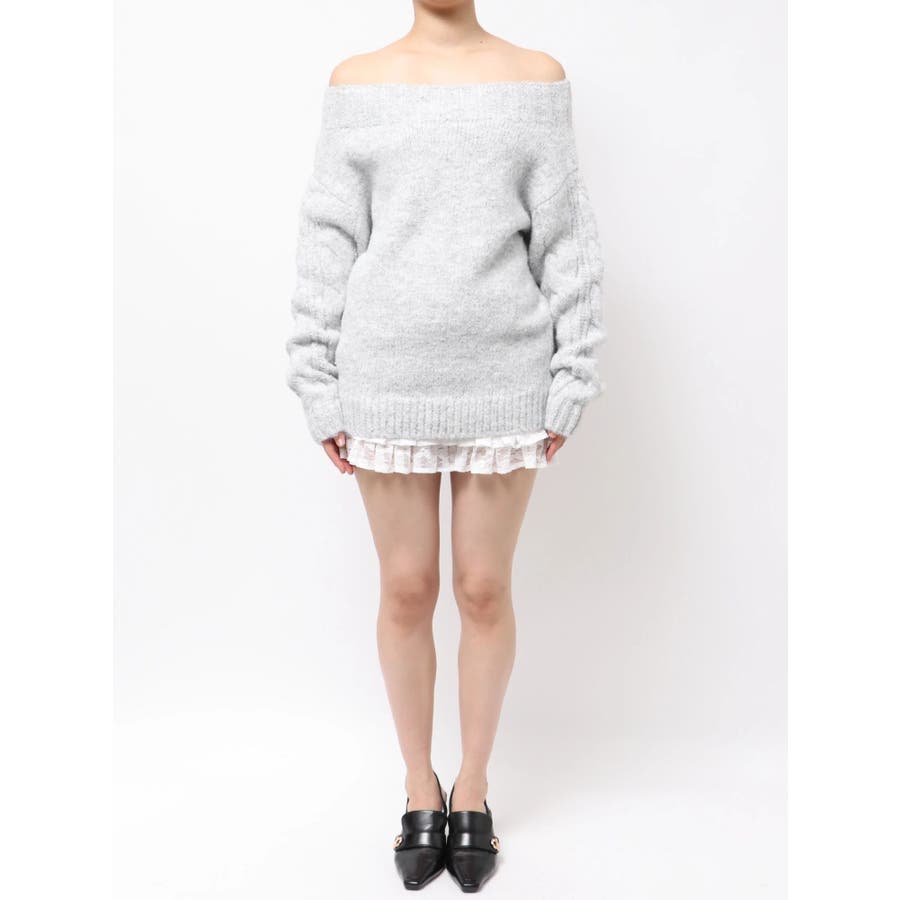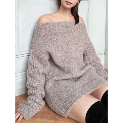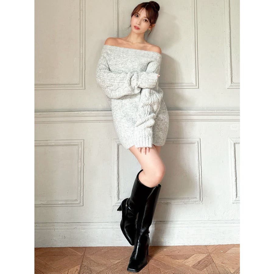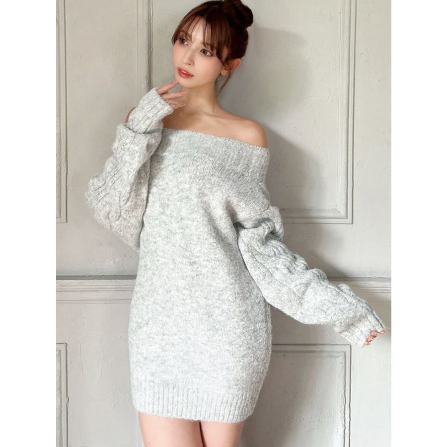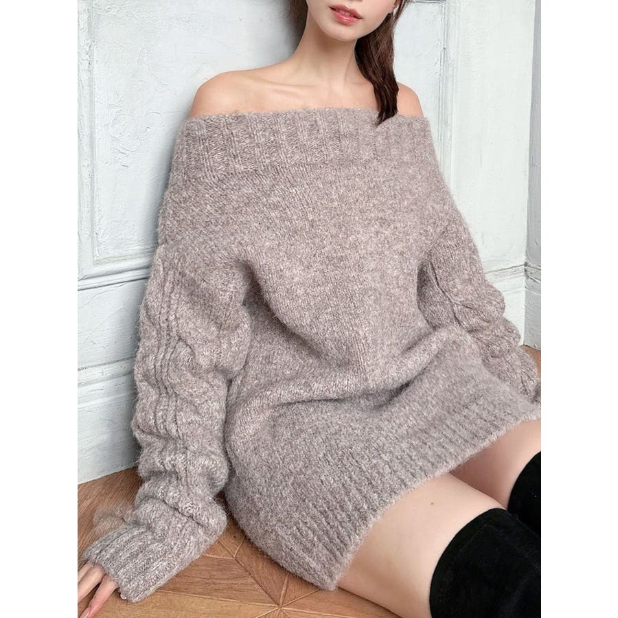 抜け感のあるゆったりシルエットのミニワンピ▽デザイン▽ゆったりとしたシルエットのニットワンピ。オーバーサイズとオフショルデザインで抜け感のあるスタイリングに◎淡いカラーと柔らかい素材が女性らしいアイテムです。▽カラー▽白、グレー、ベージュの3色展開。▽スタイリング▽1枚でミニワンピとして着用いただけます。ミニボトムを合わせてトップス風に来ていただくのもおすすめ◎ロングブーツを合わせるとトレンド感のあるスタイリングに仕上がります。