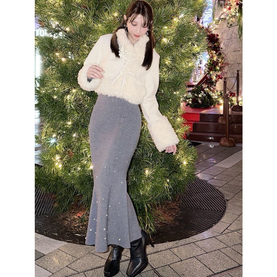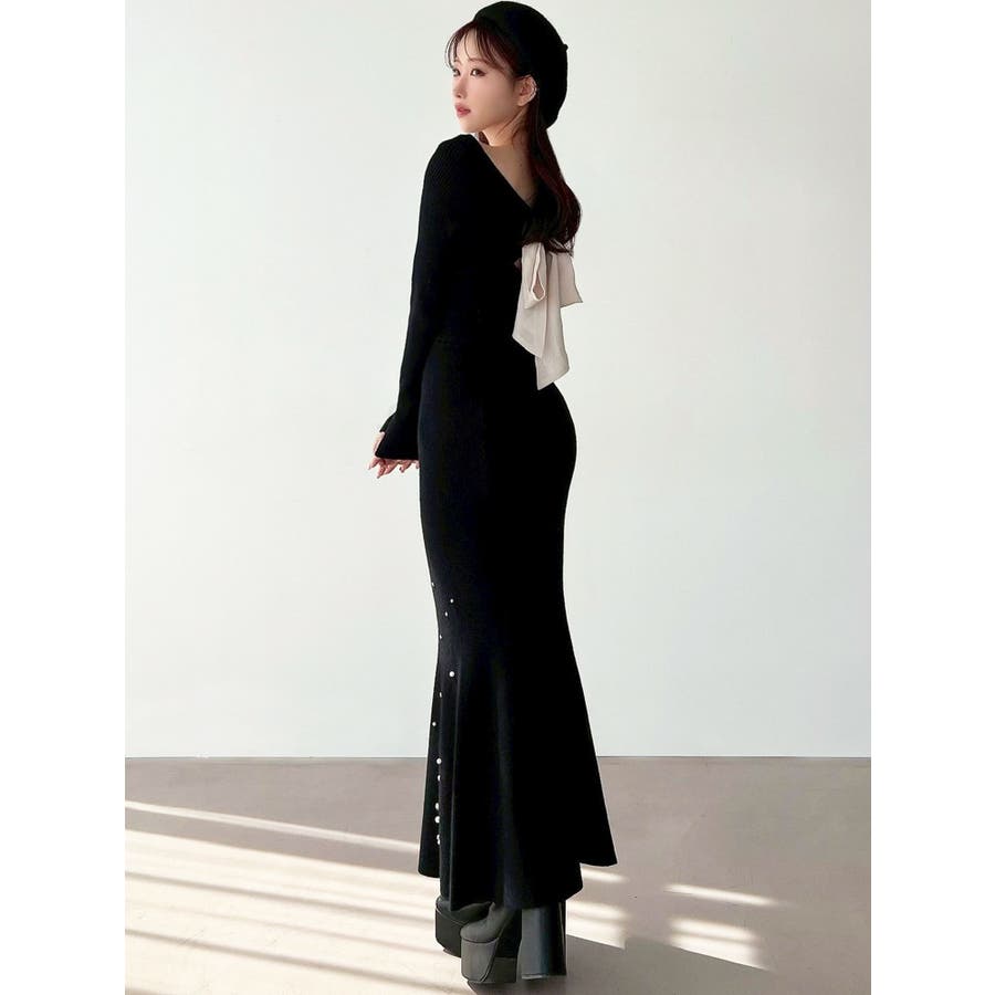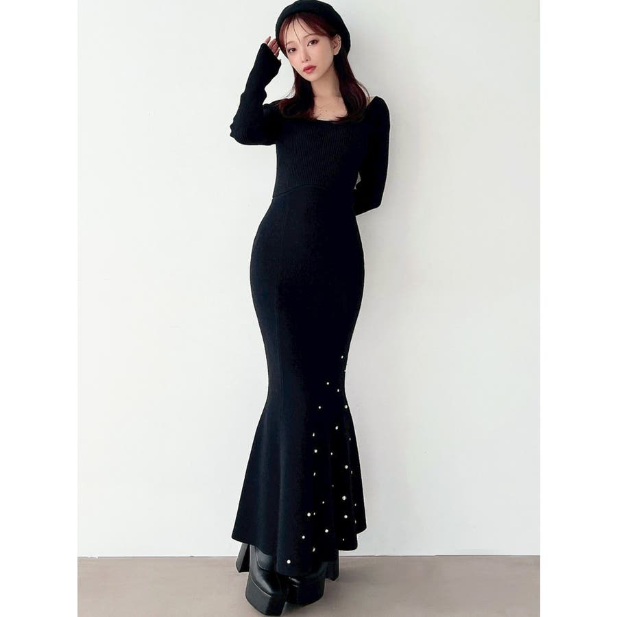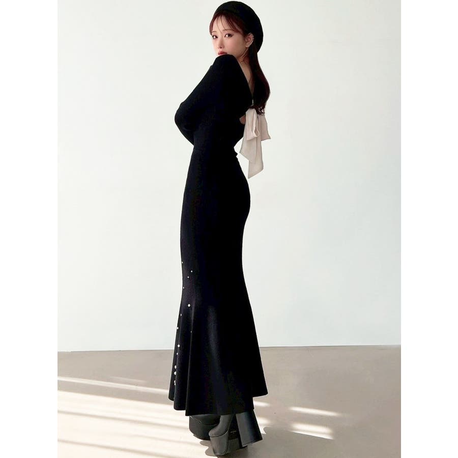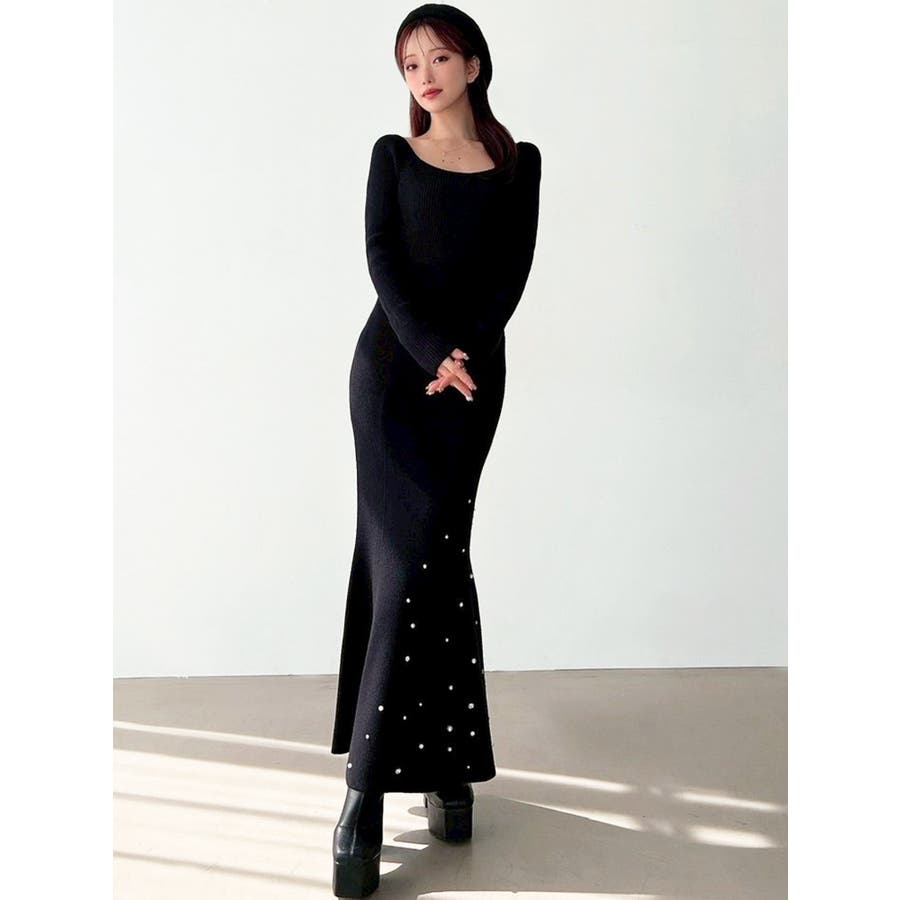裾にビジューを散りばめたマーメイドワンピース▽デザイン▽裾にビジューとパールを散りばめ、煌めき感のあるワンピース。バックリボンデザインで後ろ姿まで可愛く♪ウエストのカーブ切り替えが着るだけでスタイルアップ見え!マーメイドシルエットが大人の女性らしさをプラスします。▽カラー▽黒・チャコールグレー・ピンクの3色展開。▽スタイリング▽1枚で上品なキレイ目コーデに。マーメイドシルエットなのでショート丈アウターと合わせると着ぶくれ感なくメリハリあるシルエットに。