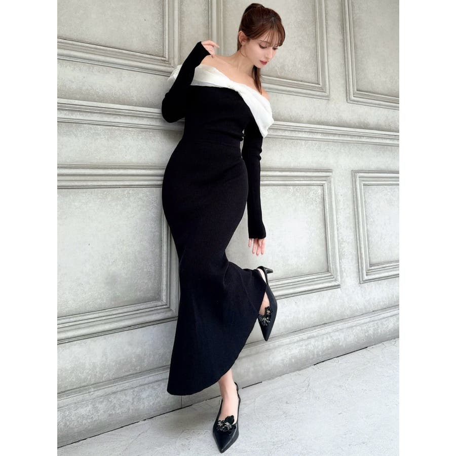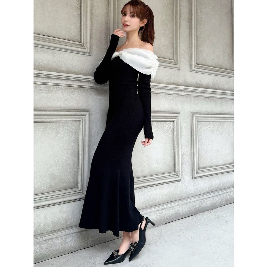 シアーリボンドッキングマーメイドニットワンピース
