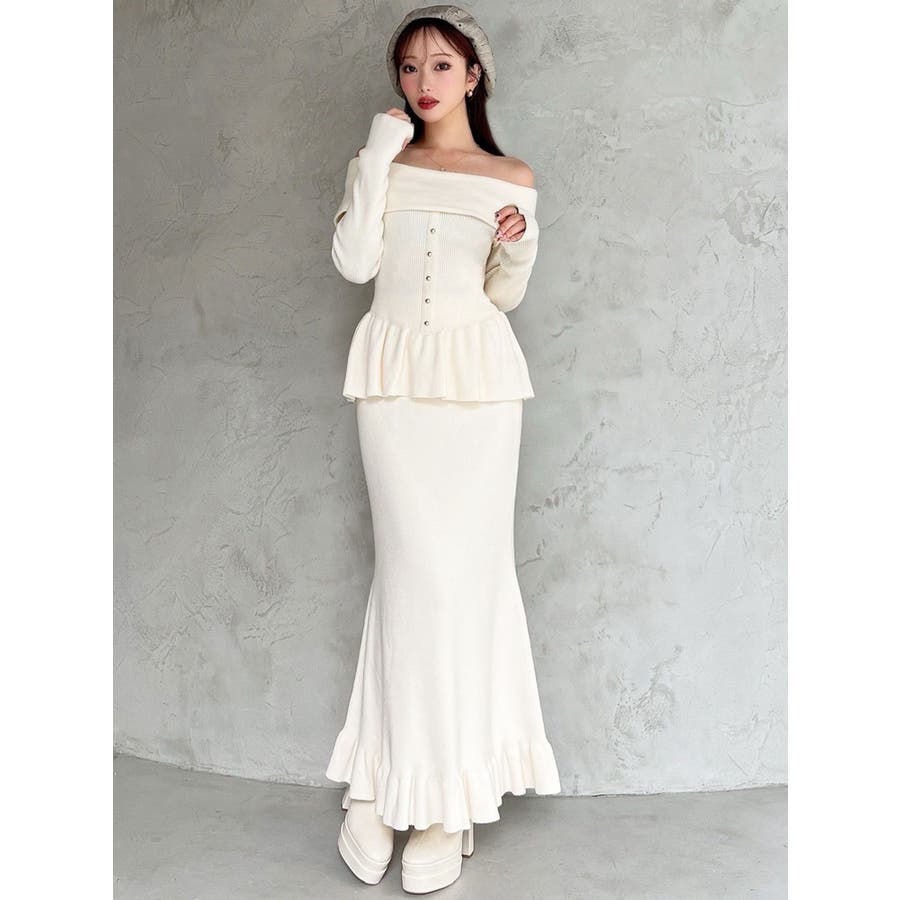 ヘムフリルマーメイドニットスカート【セットアップ着用可能】