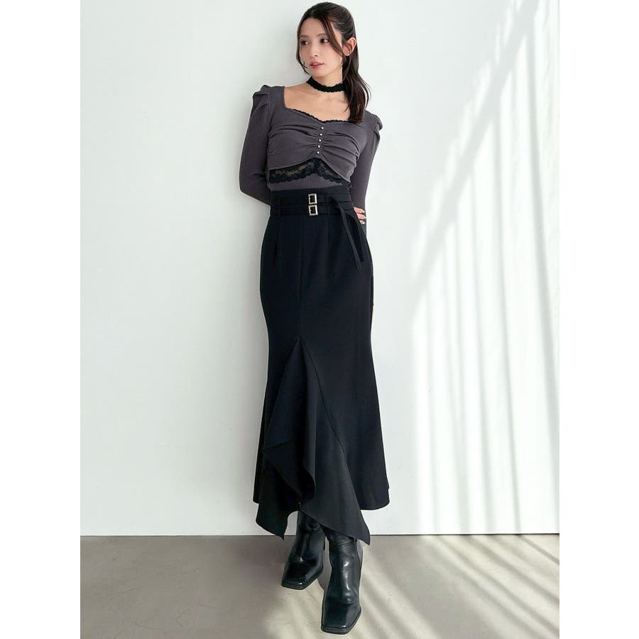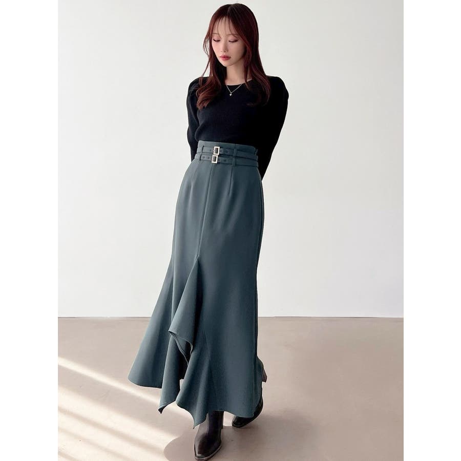 ラッフルが華やかなマーメイドスカート▽デザイン▽フロントのラッフルデザインとセンタースリットがコーデに華やかさと抜け感をプラスします。ハイウエストでウエスト部分にはダブルベルトの仕様にしさらにウエストを強調できる細見えデザイン。▽カラー▽黒・緑・ベージュの3色展開。▽スタイリング▽ニットからブラウスまで様々なトップスにマッチ。1着持っているとシーズンレスに活躍します。デイリーはもちろん、オフィスコーデにもピッタリ◎※着用画像はフラッシュの加減で実際の製品と色味等が異なる場合がございますので、生地のズームアップ画像をご確認ください。※ご利用の端末画面の設定により実際の商品と色味が異なる場合がございます。【商品特徴】透け感:なし伸縮性:なし生地の厚さ:普通サイズ感:普通裏地:ありポケット:なし