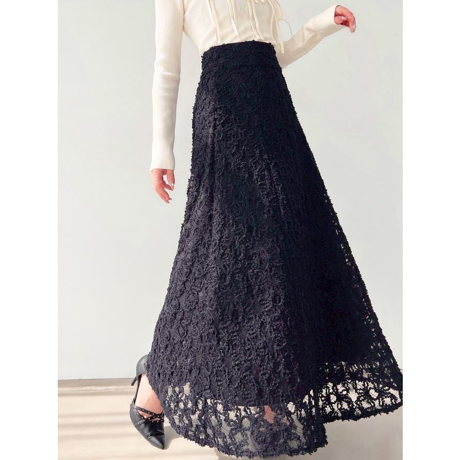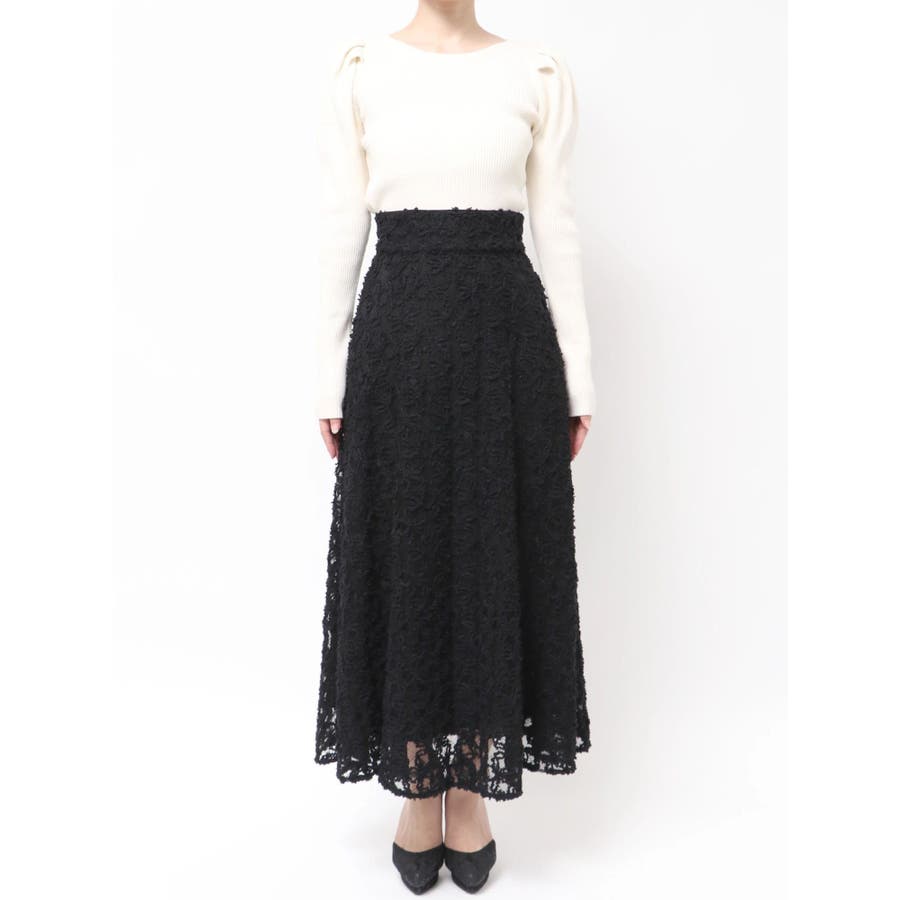 ジャガード生地で高級感のあるスカート▽デザイン▽全面ジャガード生地で表面感があり、高見えするスカート。裾に向かって緩やかに広がるフレアシルエットで大人な1枚に仕上げました。ウエスト幅があるハイウエストデザインなのでフィットフレアの美しいシルエットを演出。裾は裏地が無いため透け感があり、重たくならずに着用いただけます。▽カラー▽白・黒の2色展開。▽スタイリング▽1枚持っているとオールシーズン活躍するフレアスカート。ハイウエストなのでニットからブラウスまで様々なトップスと相性抜群◎デイリーはもちろん、デートコーデやオフィスコーデなど様々なシーンに♪