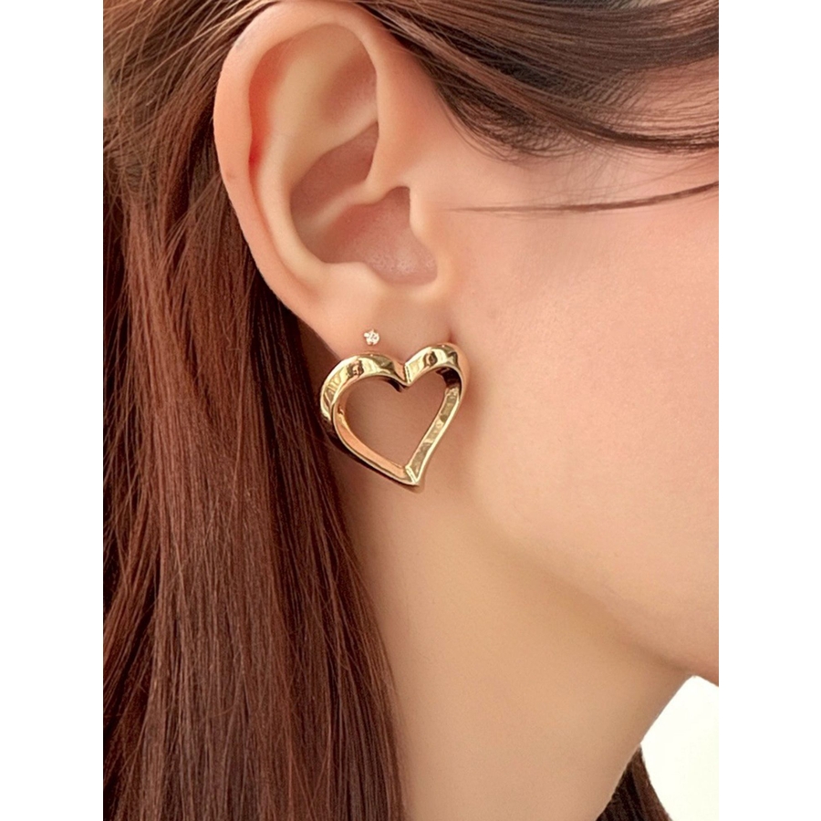 世代問わず人気のハートモチーフピアス。シンプルでありながらも存在感のあるデザインで顔回りを華やかにしてくれます。シンプルなデザインは上品さとカジュアルさを兼ね備え、日常使いから特別な日のコーデにもさらっと取り入れやすく、日々のオシャレが楽しくなるアイテムです。