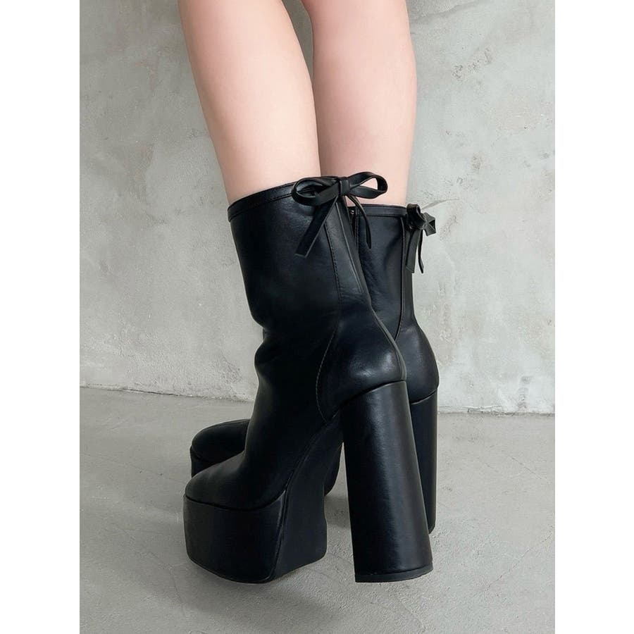 バックリボン厚底ブーツ