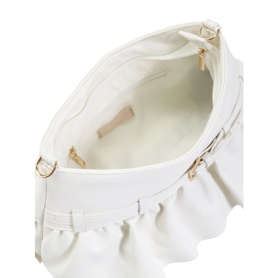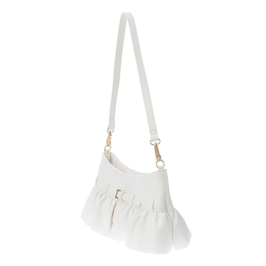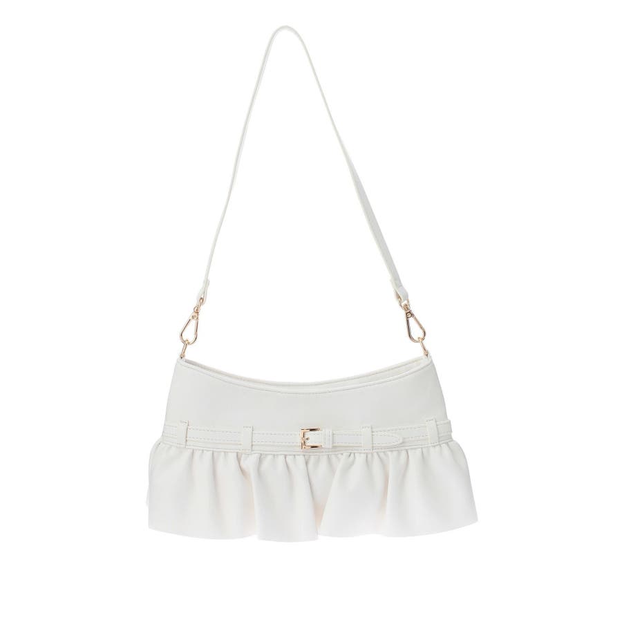 フリルデザインがポイントのショルダーバッグ▽デザイン▽フリル使いと華奢なベルトデザインが華やかな印象を与えるショルダーバッグ。コンパクトながらもマチが6cmあり、内ポケットと外ポケットも付いているので大容量で使いやすいバッグです。ベーシックなデザインとカラーで、オールシーズン様々なシーンに活躍します◎▽カラー▽白・黒の2色展開。