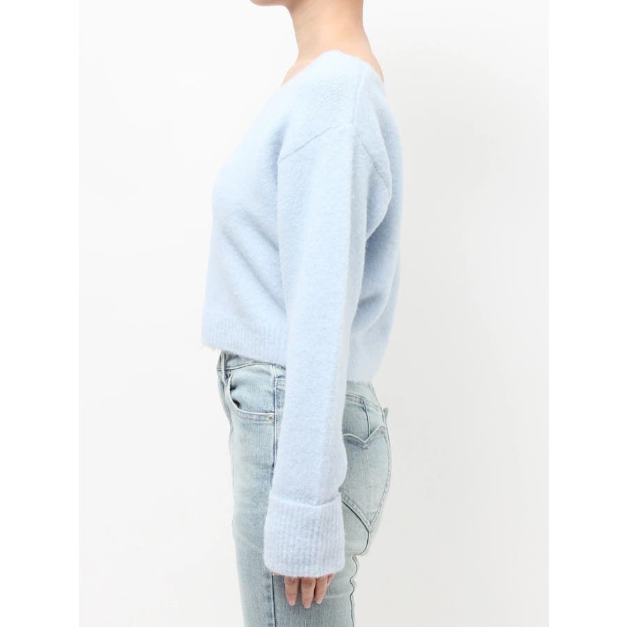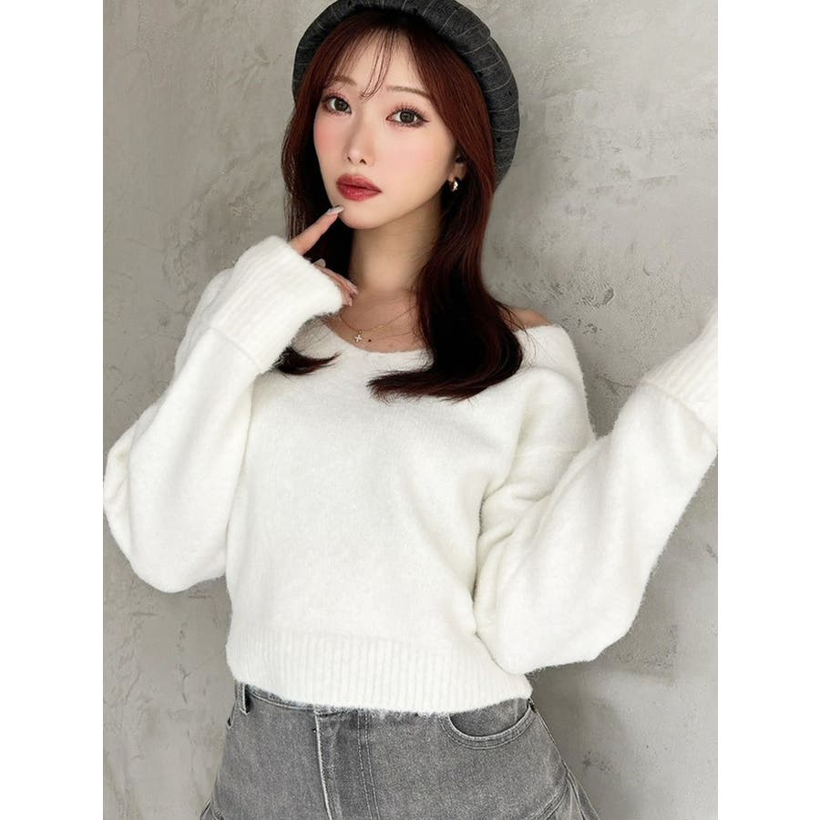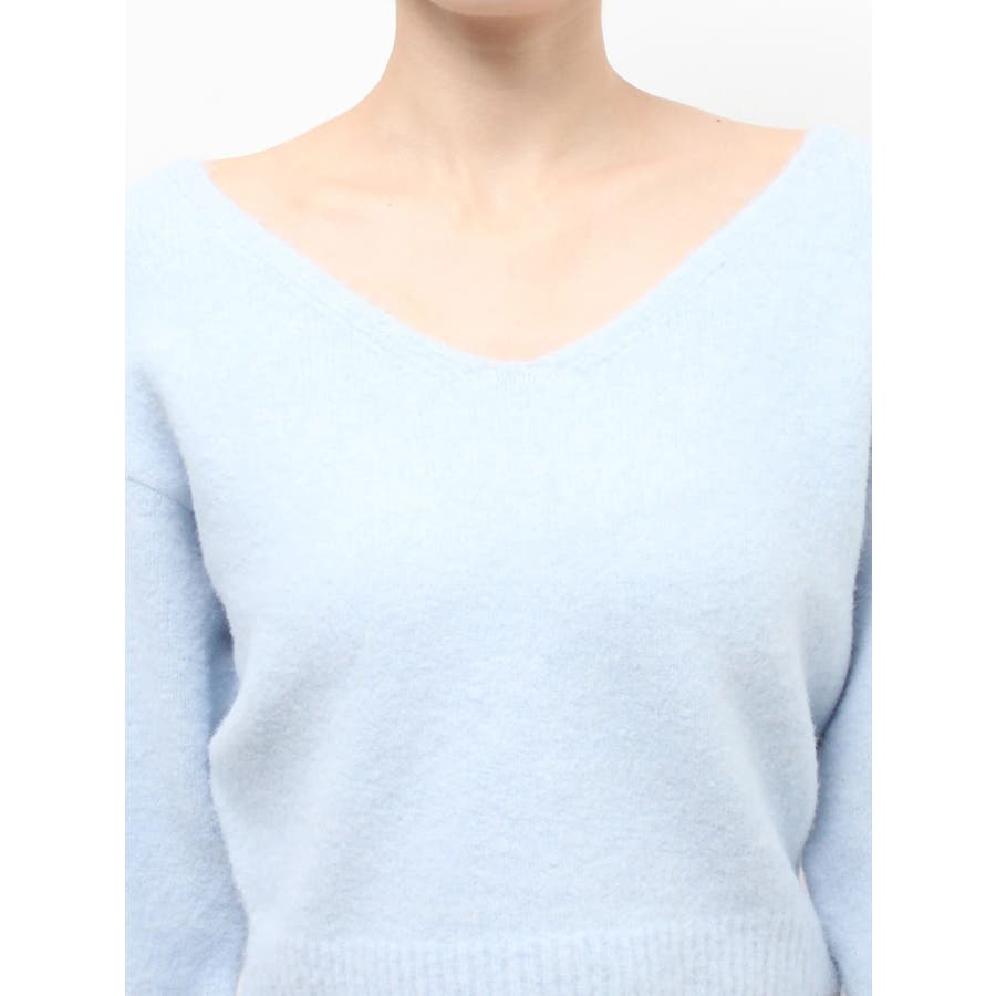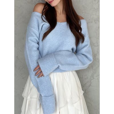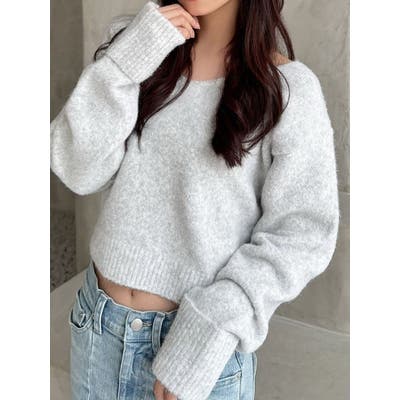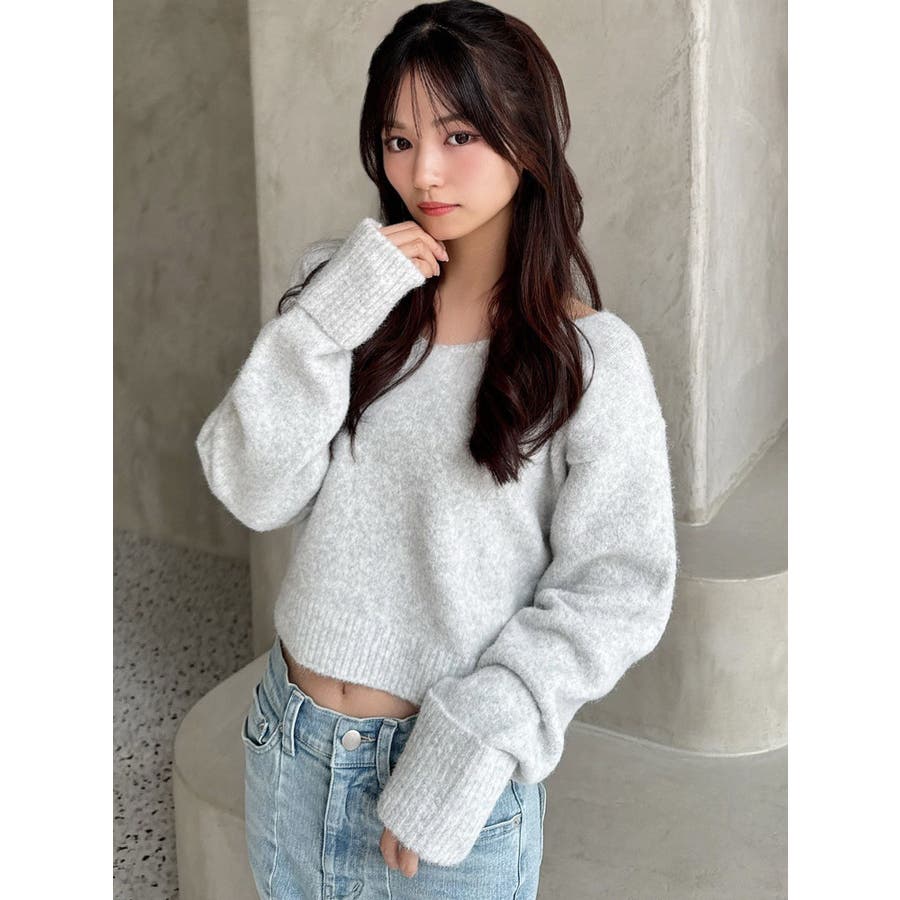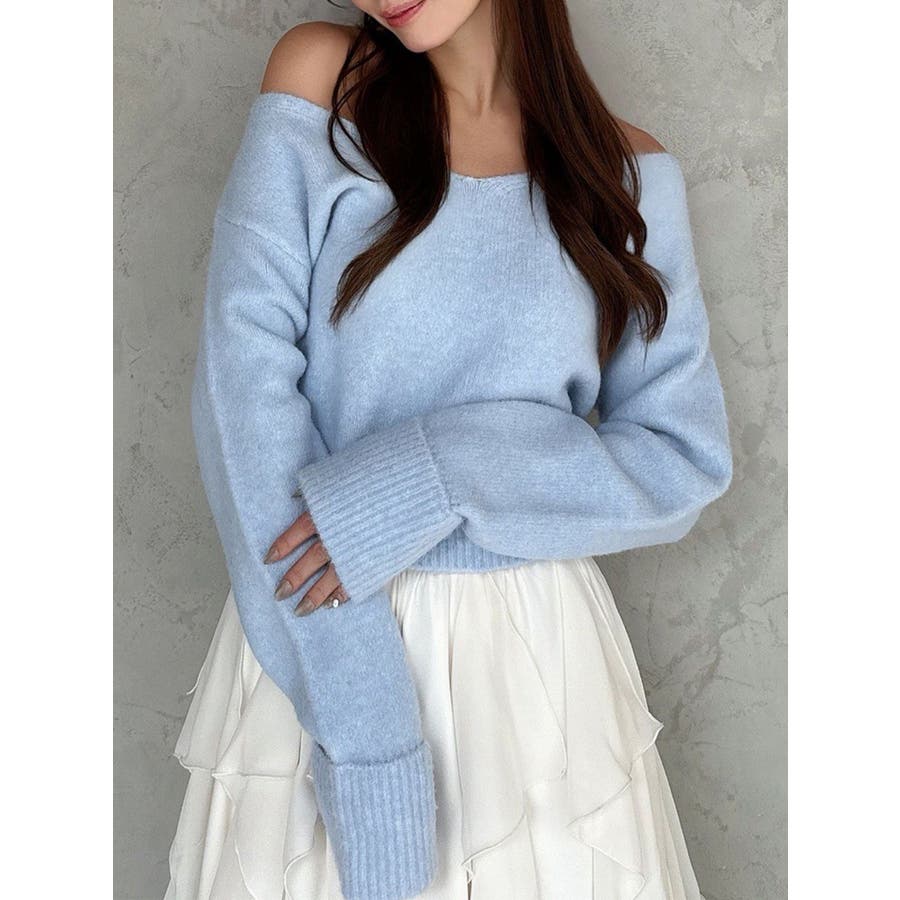 ふんわりとした糸で柔らかい雰囲気のニット▽デザイン▽表面感のある糸で軽やかな印象に仕上げました。女性らしさを引き立てる大きめの襟ぐりでデコルテラインを美しく演出。ざっくりとしたシルエットで、肩を落とした肌見せスタイリングもおすすめ◎コンパクトな丈感と、タイト過ぎないゆるっとしたシルエットで程よい抜け感と女性らしさのある春ニットです。▽カラー▽白・青・ライトグレーの3色展開。▽スタイリング▽スカートからデニムまでどんなボトムにも合わせやすいシンプルニット。温かみのある素材感で春コーデにピッタリ◎シンプルなデザインなのでトレンドに左右されず長くお使いいただけます。