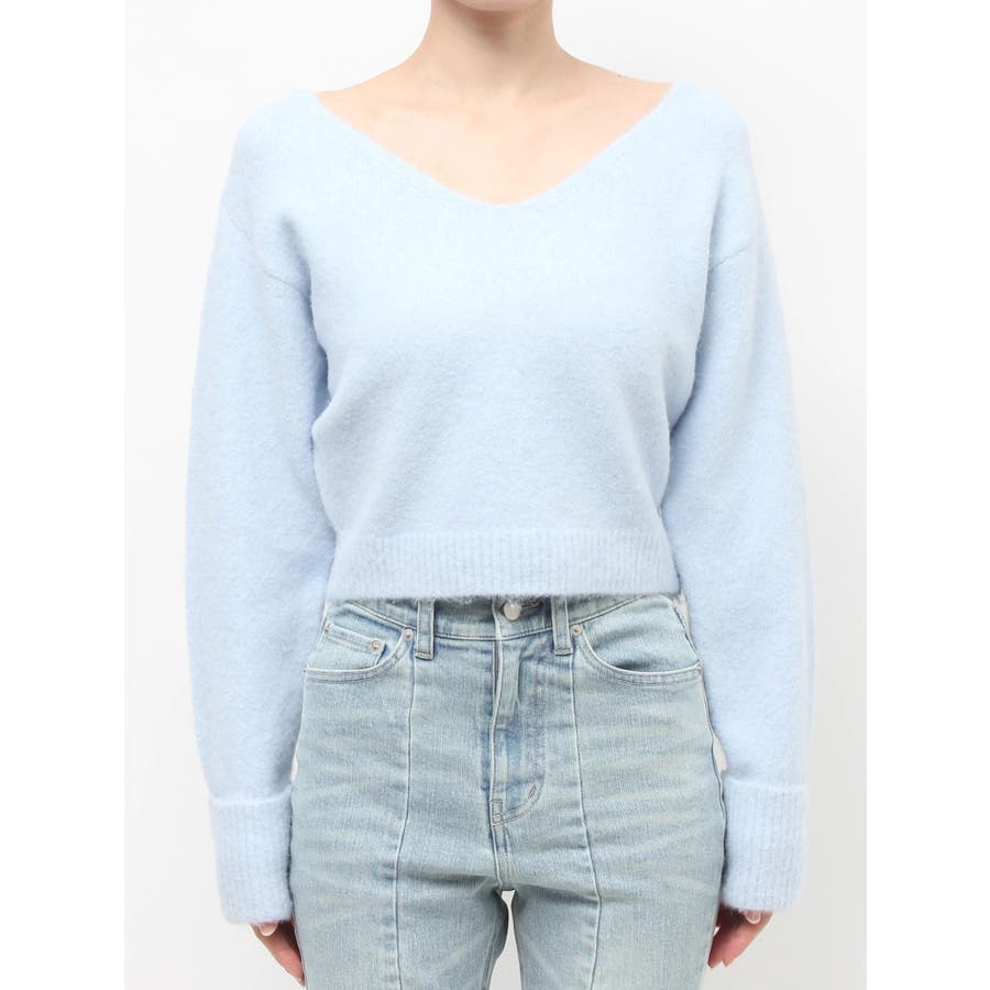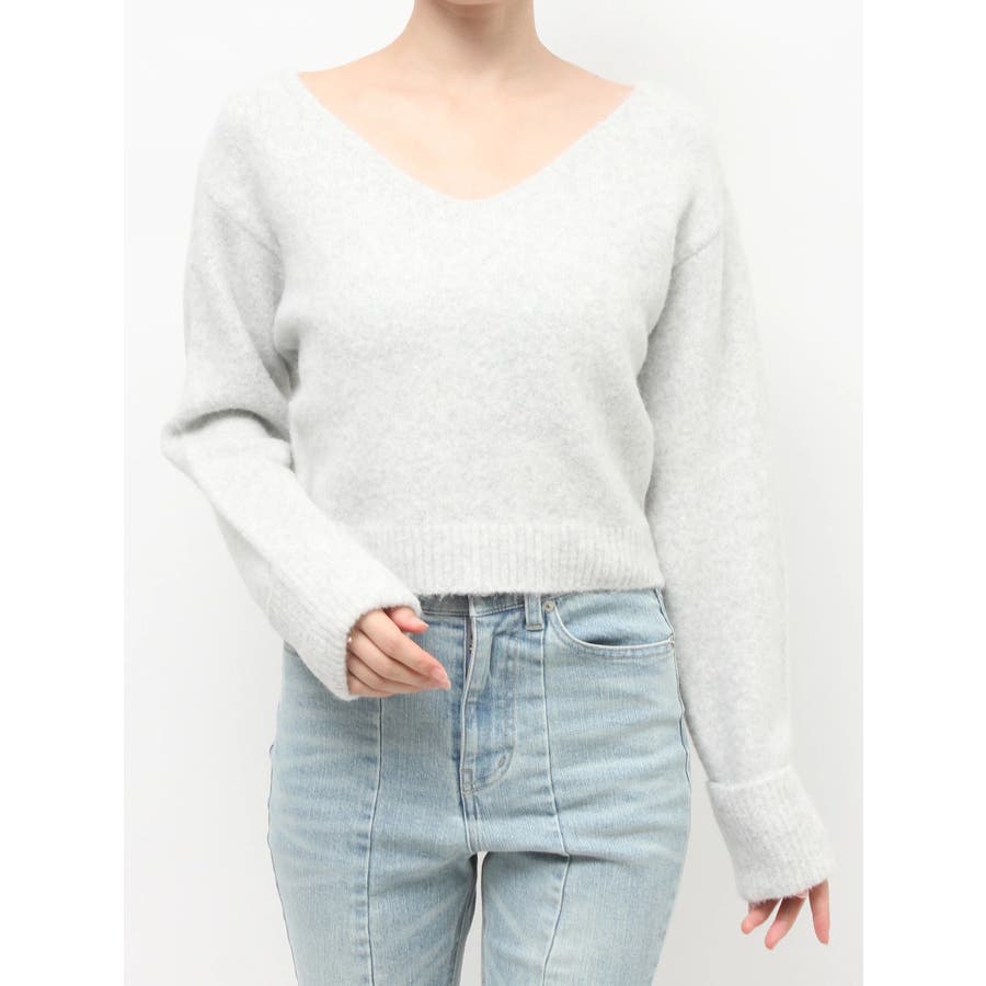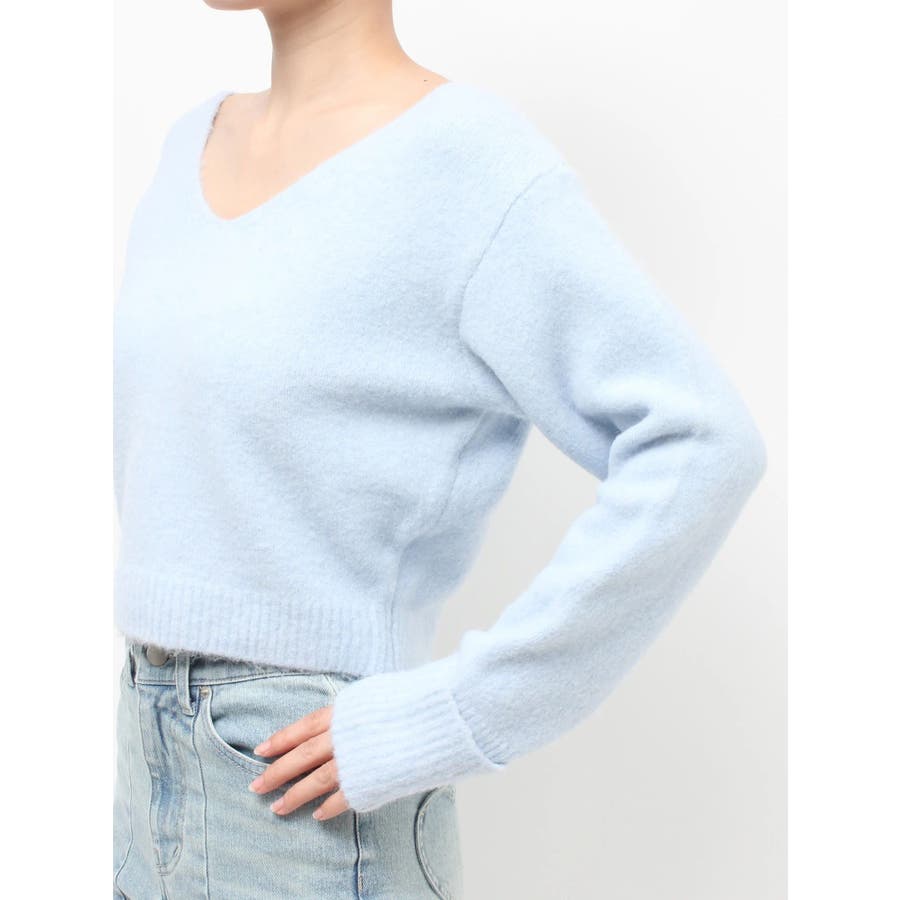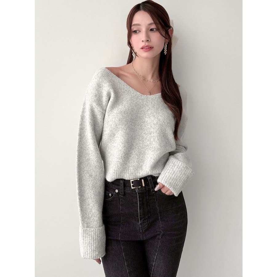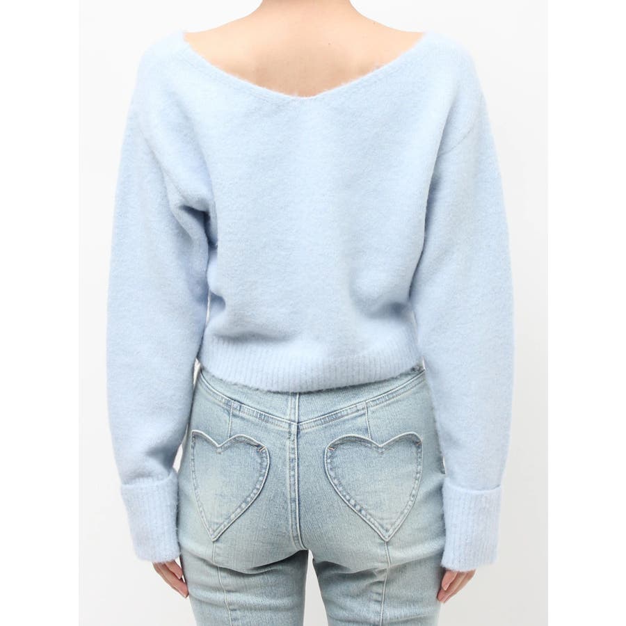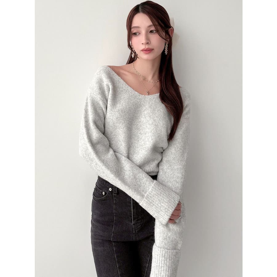 ふんわりとした糸で柔らかい雰囲気のニット▽デザイン▽表面感のある糸で軽やかな印象に仕上げました。女性らしさを引き立てる大きめの襟ぐりでデコルテラインを美しく演出。ざっくりとしたシルエットで、肩を落とした肌見せスタイリングもおすすめ◎コンパクトな丈感と、タイト過ぎないゆるっとしたシルエットで程よい抜け感と女性らしさのある春ニットです。▽カラー▽白・青・ライトグレーの3色展開。▽スタイリング▽スカートからデニムまでどんなボトムにも合わせやすいシンプルニット。温かみのある素材感で春コーデにピッタリ◎シンプルなデザインなのでトレンドに左右されず長くお使いいただけます。
