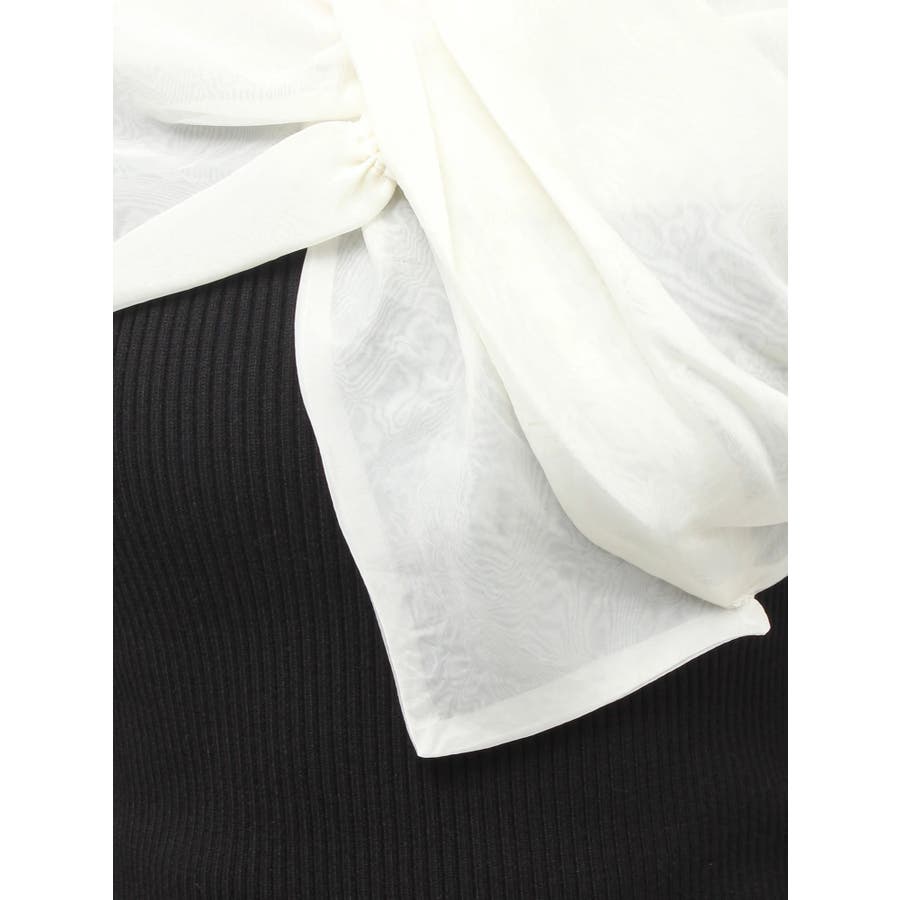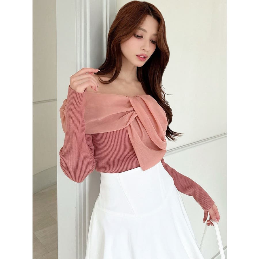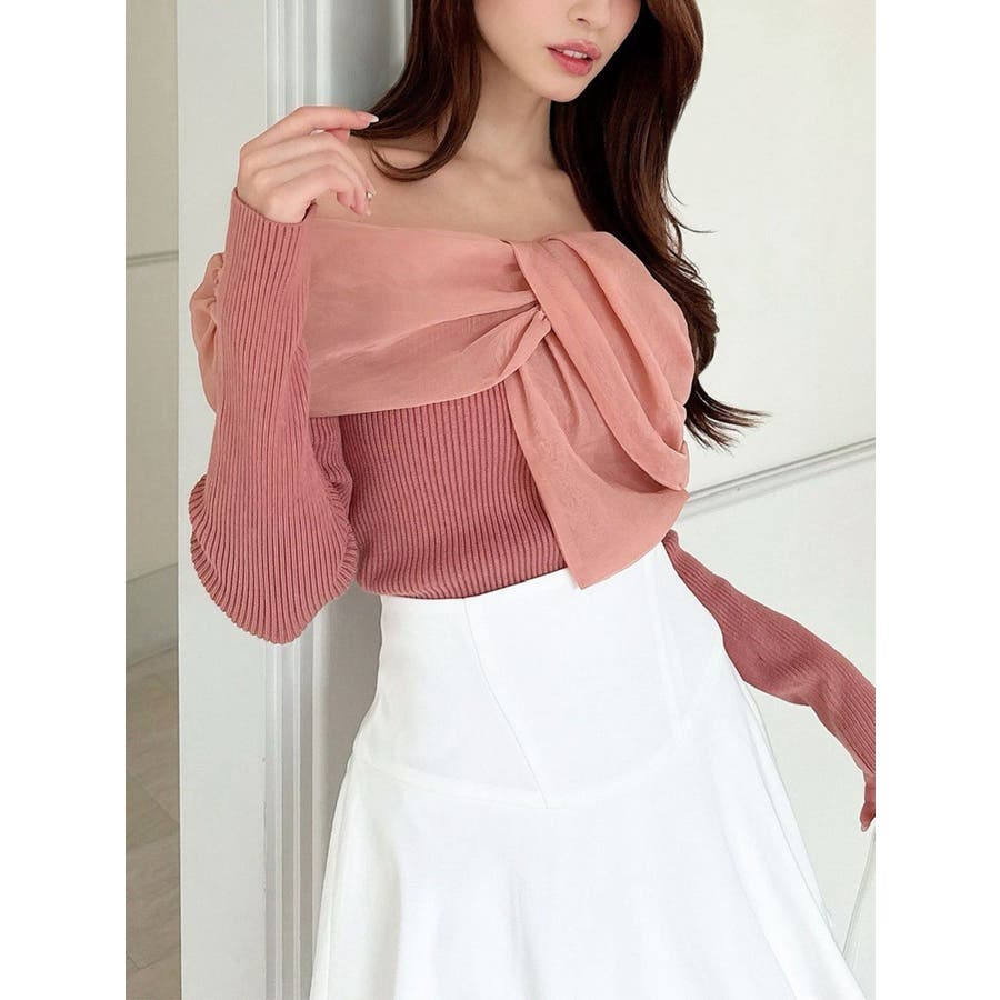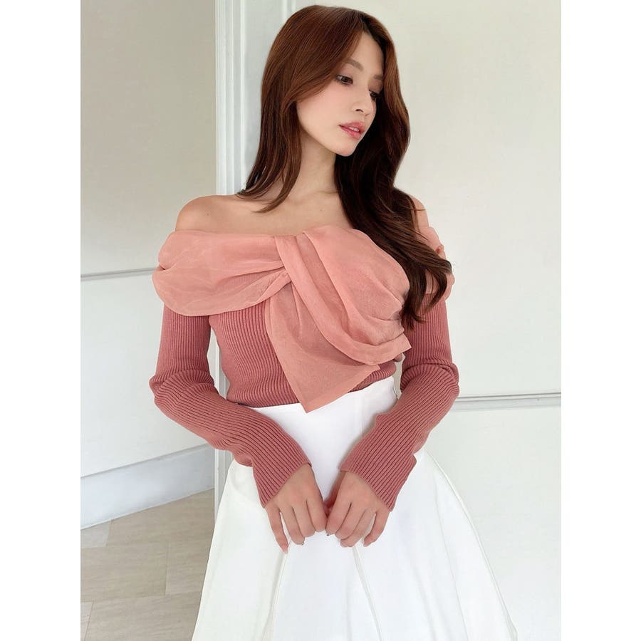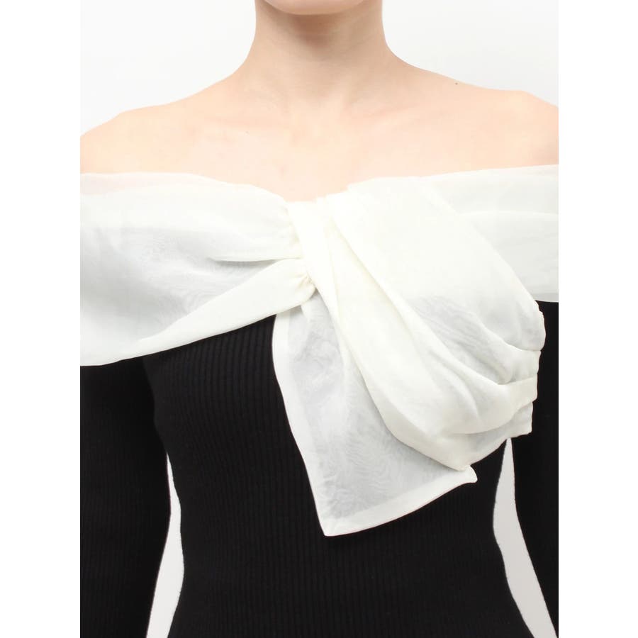 オーガンジーをあしらったフェミニンなニットトップス▽デザイン▽タイトに編まれたニットに軽やかなオーガンジーを幾重にも重ねたニットプルオーバー。意外性のある組み合わせがフレッシュなムードを漂わせます。ソフトでしなやかなボディに、アクセサリーのように配されたオーガンジーリボンが印象的な1枚。▽カラー▽白、黒、」オレンジの3色展開。▽スタイリング▽マーメイドスカートやフレアスカートに合わせたきれいめのスタイリングはもちろんデニムと合わせたカジュアルなスタイルもおすすめです◎