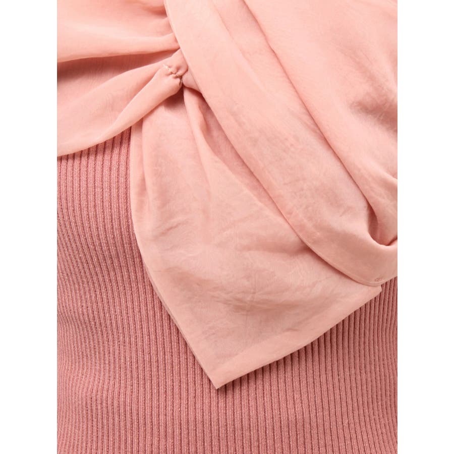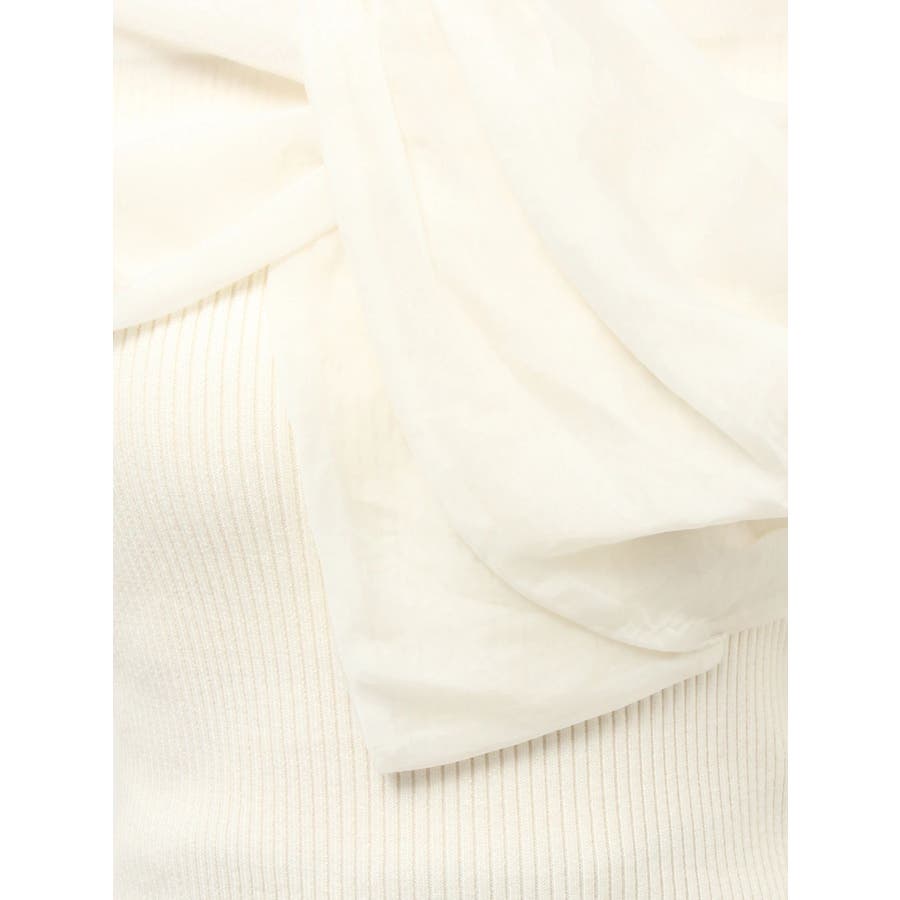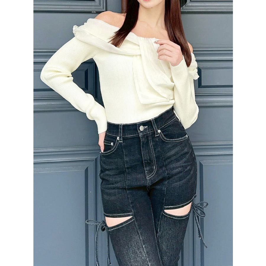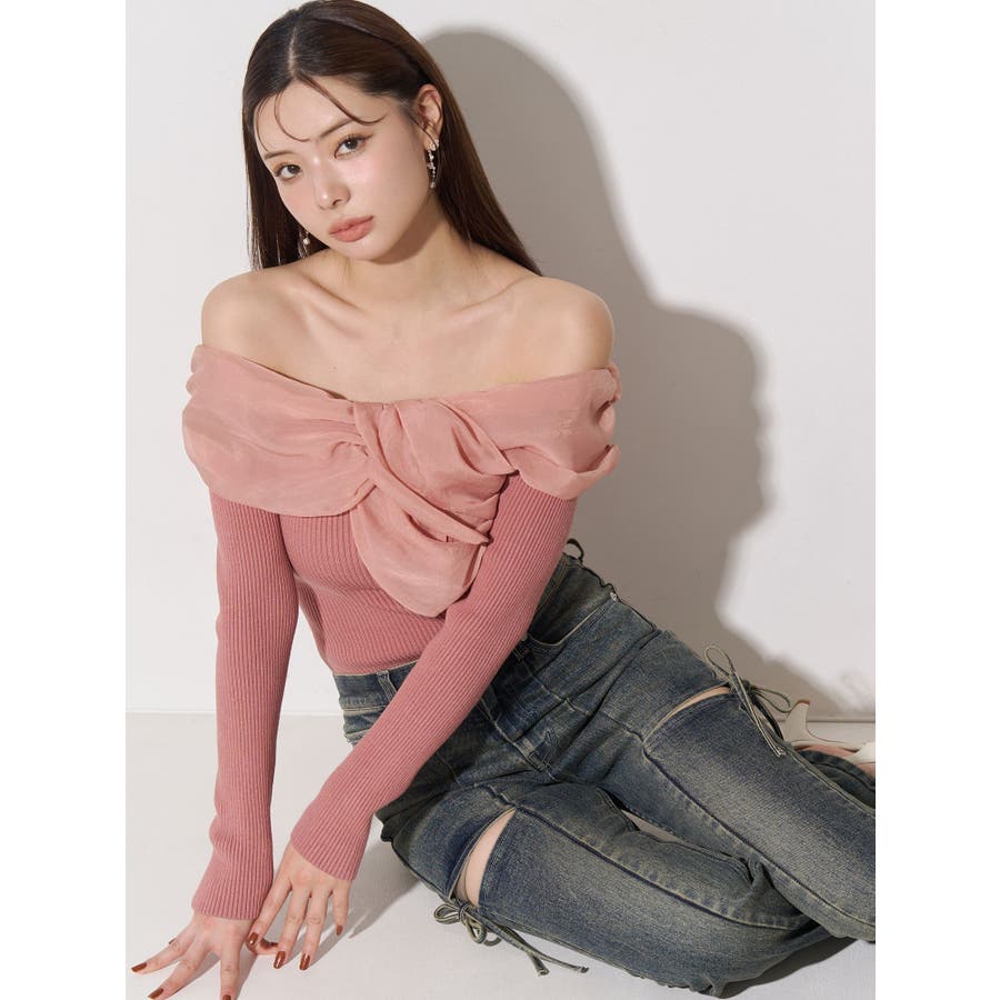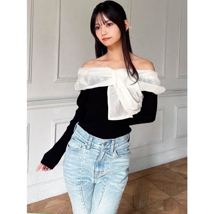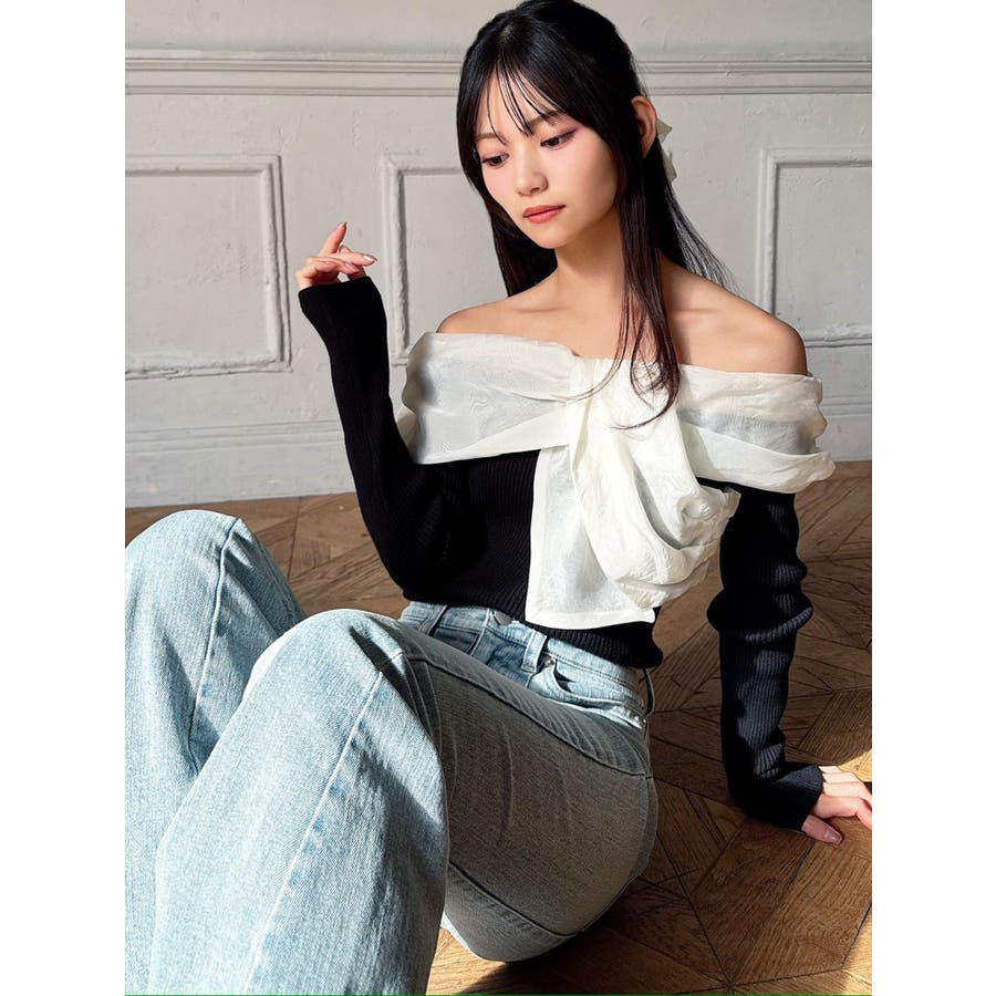 オーガンジーをあしらったフェミニンなニットトップス▽デザイン▽タイトに編まれたニットに軽やかなオーガンジーを幾重にも重ねたニットプルオーバー。意外性のある組み合わせがフレッシュなムードを漂わせます。ソフトでしなやかなボディに、アクセサリーのように配されたオーガンジーリボンが印象的な1枚。▽カラー▽白、黒、」オレンジの3色展開。▽スタイリング▽マーメイドスカートやフレアスカートに合わせたきれいめのスタイリングはもちろんデニムと合わせたカジュアルなスタイルもおすすめです◎