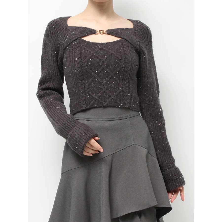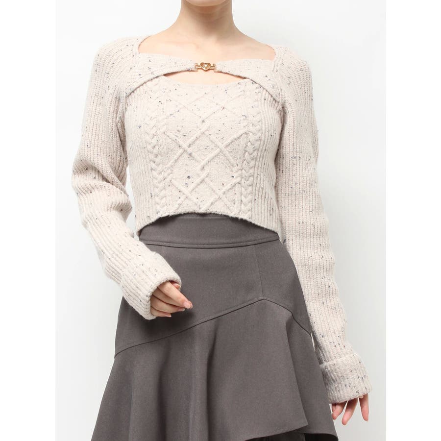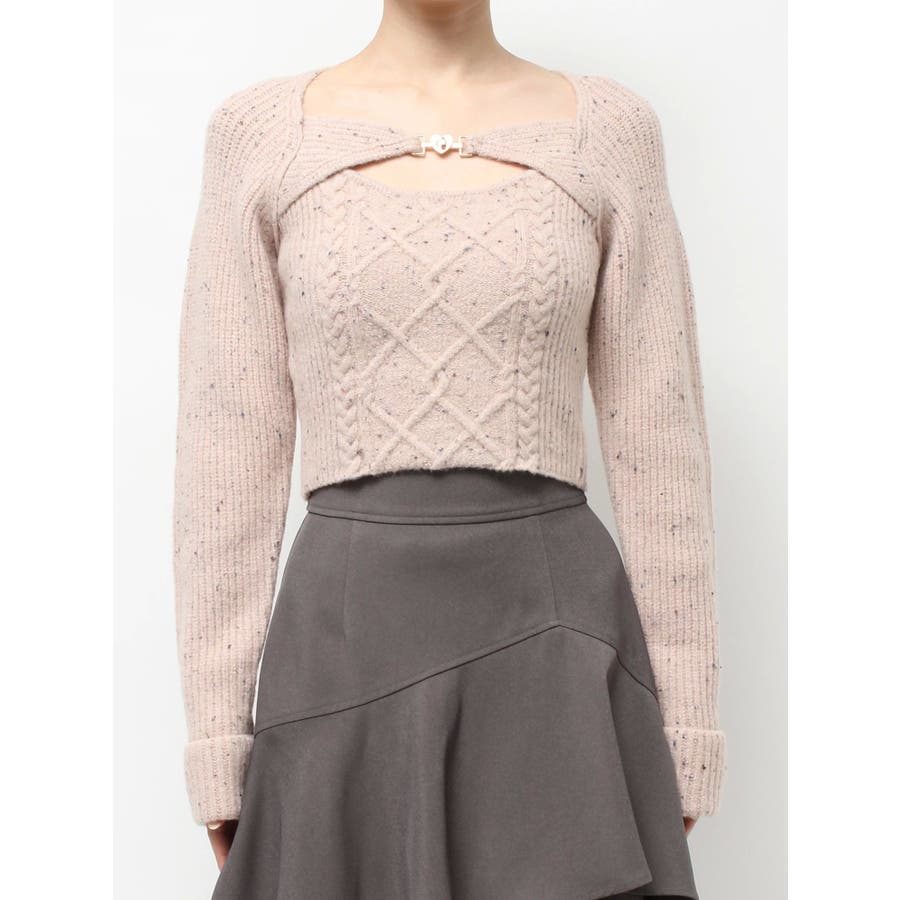 コンパクトな丈感のケーブルニット▽デザイン▽トレンドのケーブルニットを、表面感のあるふっくらとした糸にアップデート。コンパクトですっきりとしたシルエットなのでカジュアルすぎず女性らしさをプラスしたデザインに。バストのオープンデザインとハートモチーフがデザインポイント◎▽カラー▽白・チャコールグレー・ピンクの3色展開。▽スタイリング▽デニムでカジュアルにも、スカートでフェミニンにも、お好きな雰囲気で着用できるニット。コンパクトなサイズ感でアウターにも響かず、着回し抜群◎※着用画像はフラッシュの加減で実際の製品と色味等が異なる場合がございますので、生地のズームアップ画像をご確認ください。※ご利用の端末画面の設定により実際の商品と色味が異なる場合がございます。【商品特徴】透け感:なし伸縮性:あり生地の厚さ:普通サイズ感:普通裏地:なしポケット:なし