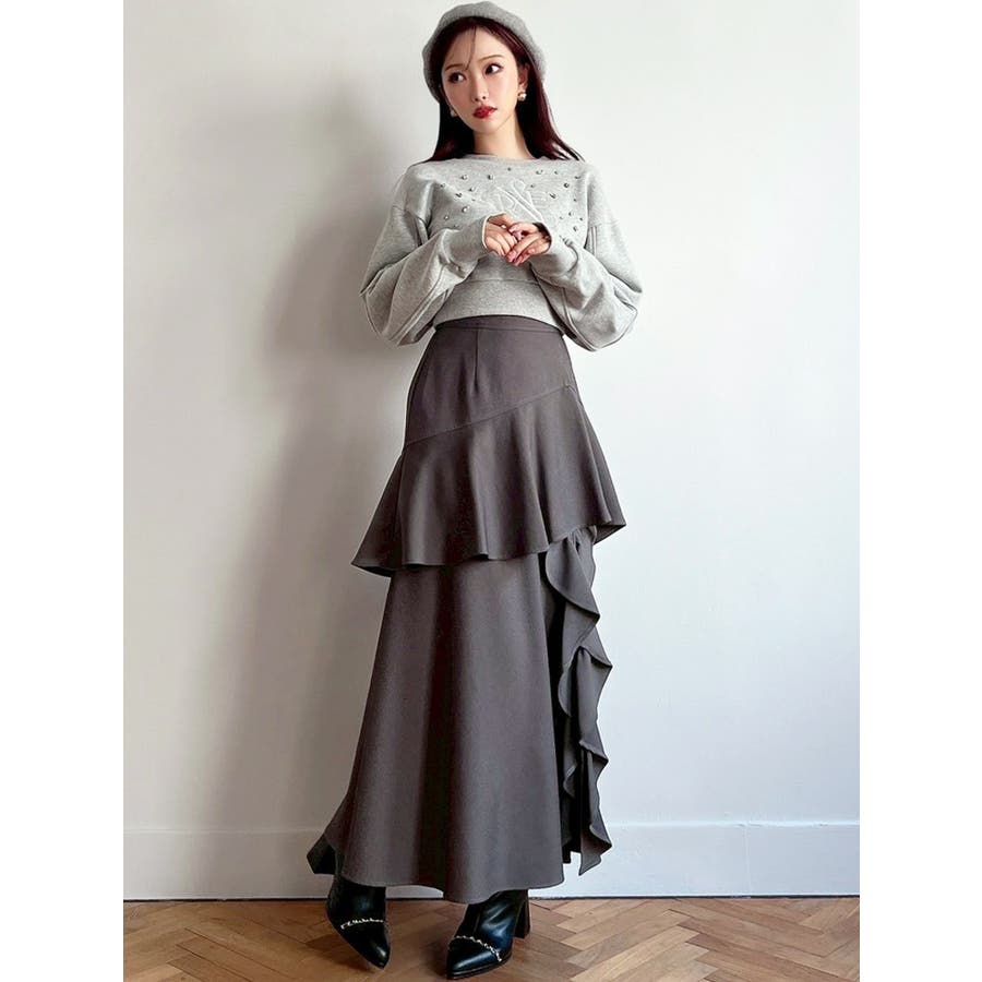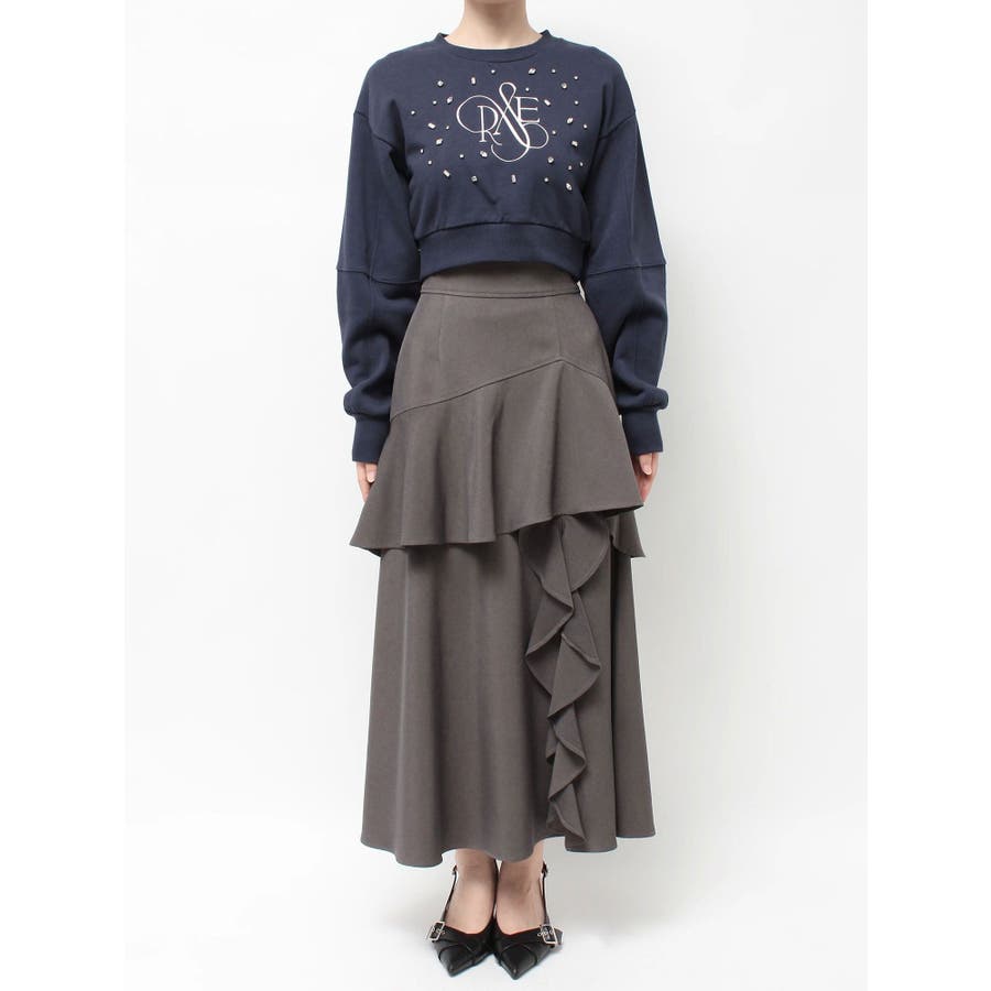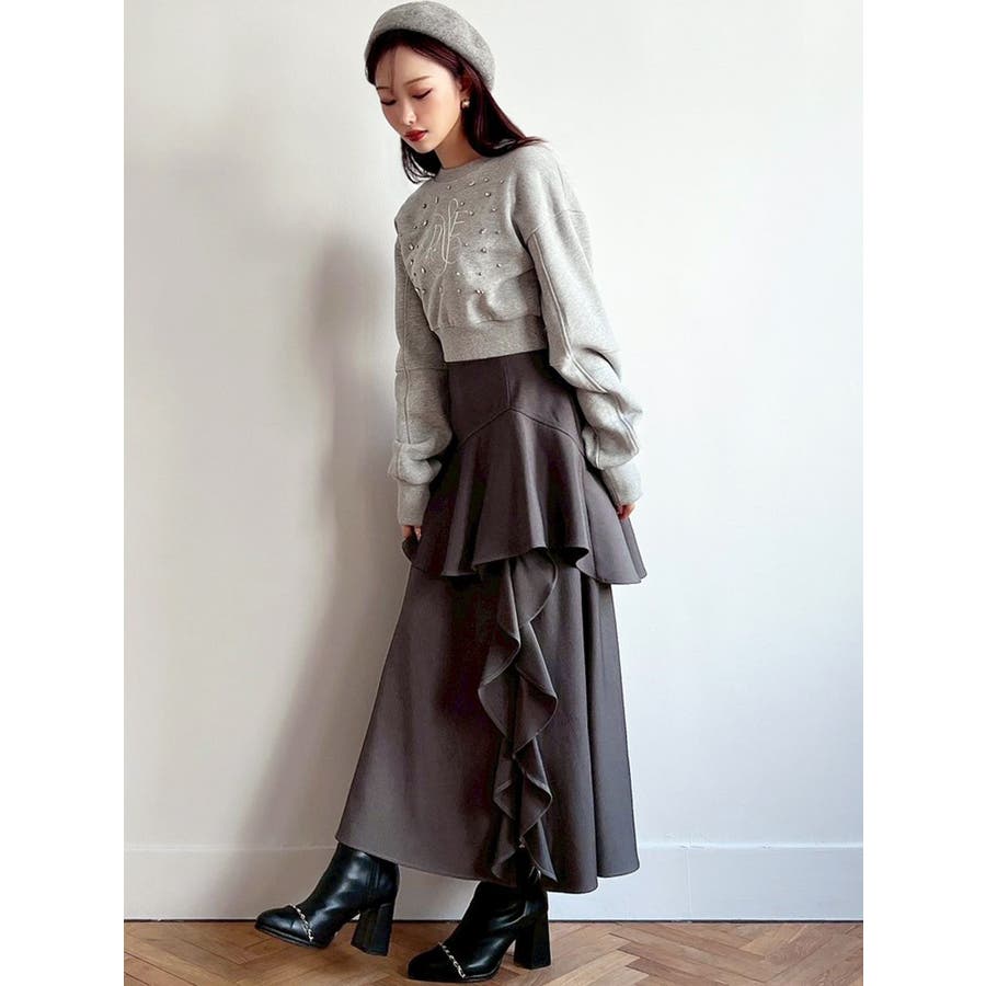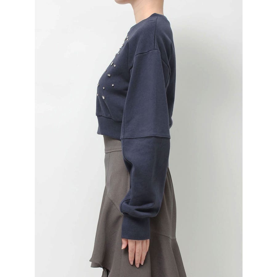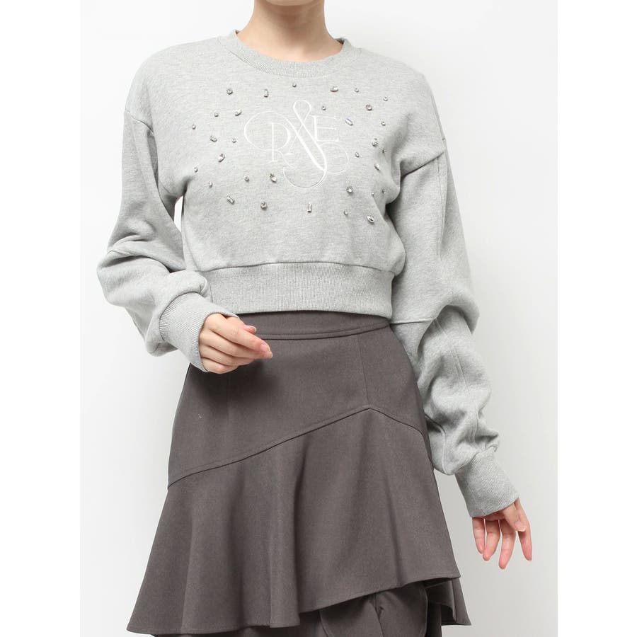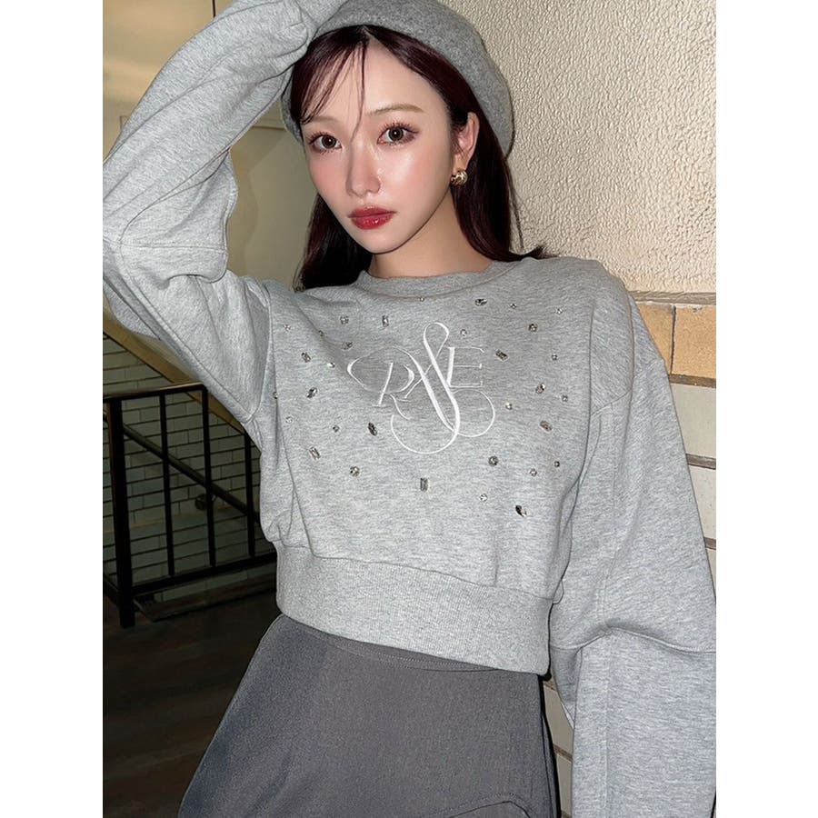 ビジューの煌めきが冬らしいスウェットプルオーバー▽デザイン▽散りばめたビジューとオリジナルロゴがアクセントになり、1枚でコーディネートの主役になるアイテムです。袖口と裾はリブ仕様で全体を引き締めます。コンパクトな丈感でスタイルアップしたコーデが完成します◎▽カラー▽グレー・ネイビー・イエローの3色展開。▽スタイリング▽デイリーにも特別な日にも使える大人フェミニンなデザイン。ハイウエストパンツ、スカートを合わせればきれいめからカジュアルまで幅広いスタイリングが楽しめます。