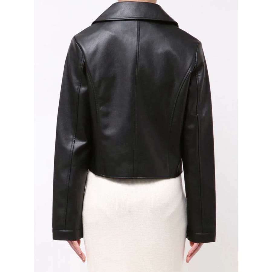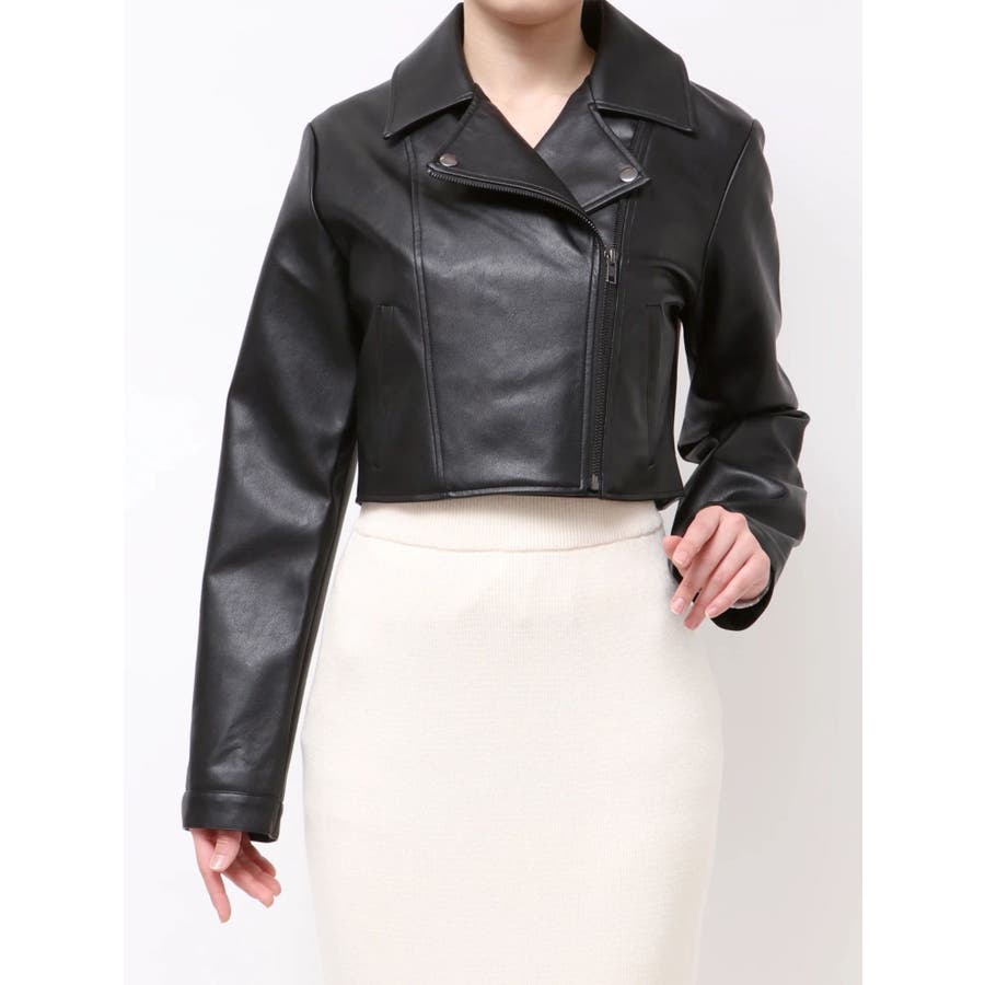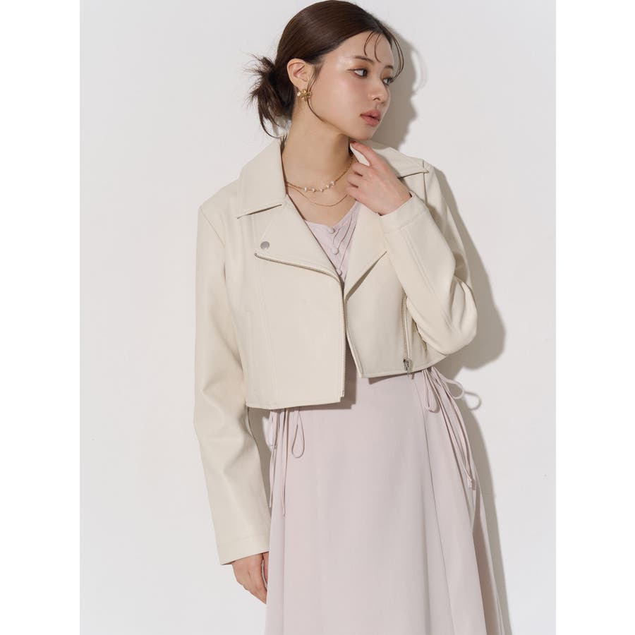 毎年人気のライダースジャケットが今年も登場▽デザイン▽ベーシックで着回し抜群の1枚。スッキリとしたデザインで着ぶくれせず、スタイルアップ効果のある毎年人気のジャケット。今年も着丈を選べるSM展開!Sサイズはコンパクトな着丈にし、羽織るだけでスタイルアップ効果抜群!Mサイズはゆとりのある着丈で今年らしい抜け感のあるスタイリングに。▽カラー▽白、黒の2色展開。▽スタイリング▽コンパクトなシルエットなので、タイトめなインナーを合わせるのがおすすめです。デニムをやパンツを合わせたカジュアルなスタイリングだけでなく、ワンピースやスカートなどフェミニンなアイテムと合わせたスタイリングにも◎※着用画像はフラッシュの加減で実際の製品と色味等が異なる場合がございますので、生地のズームアップ画像をご確認ください。※ご利用の端末画面の設定により実際の商品と色味が異なる場合がございます。【商品特徴】透け感:なし伸縮性:なし生地の厚さ:普通サイズ感:普通裏地:ありポケット:あり(前)