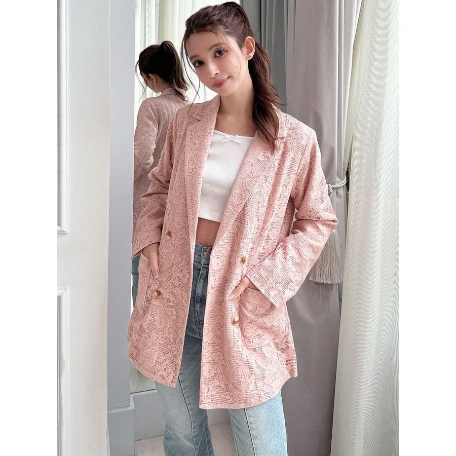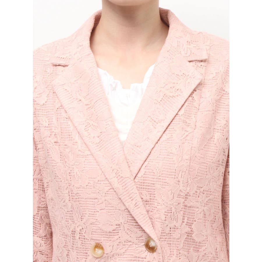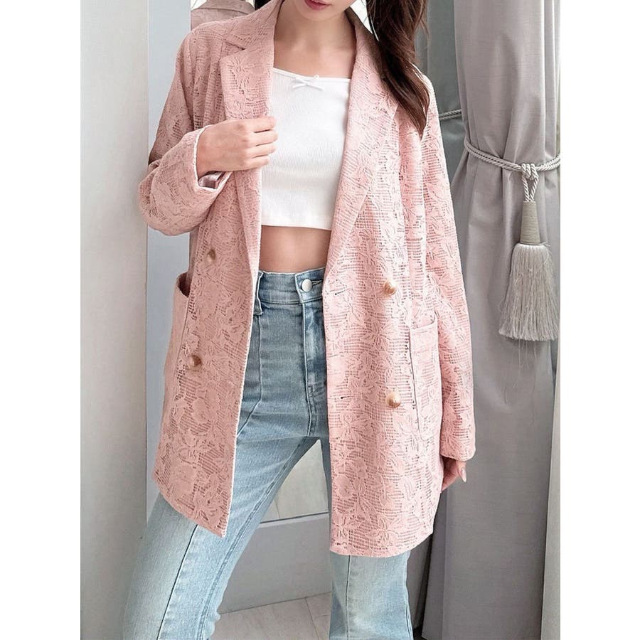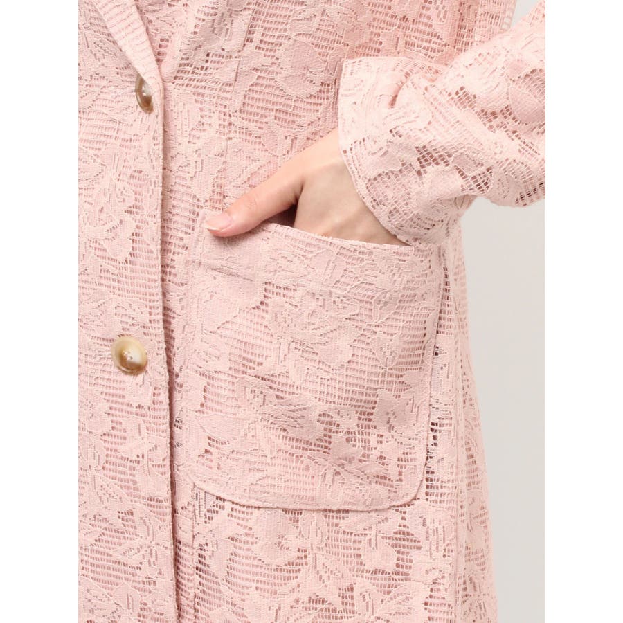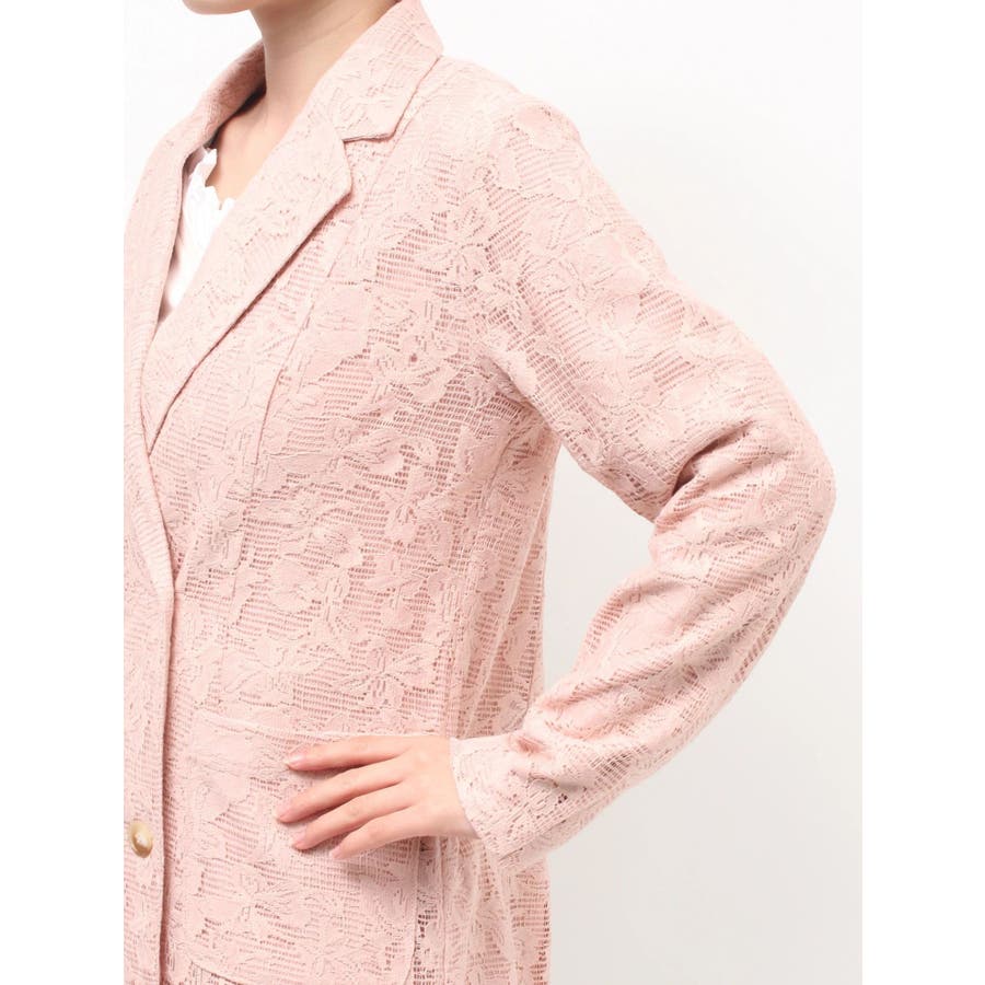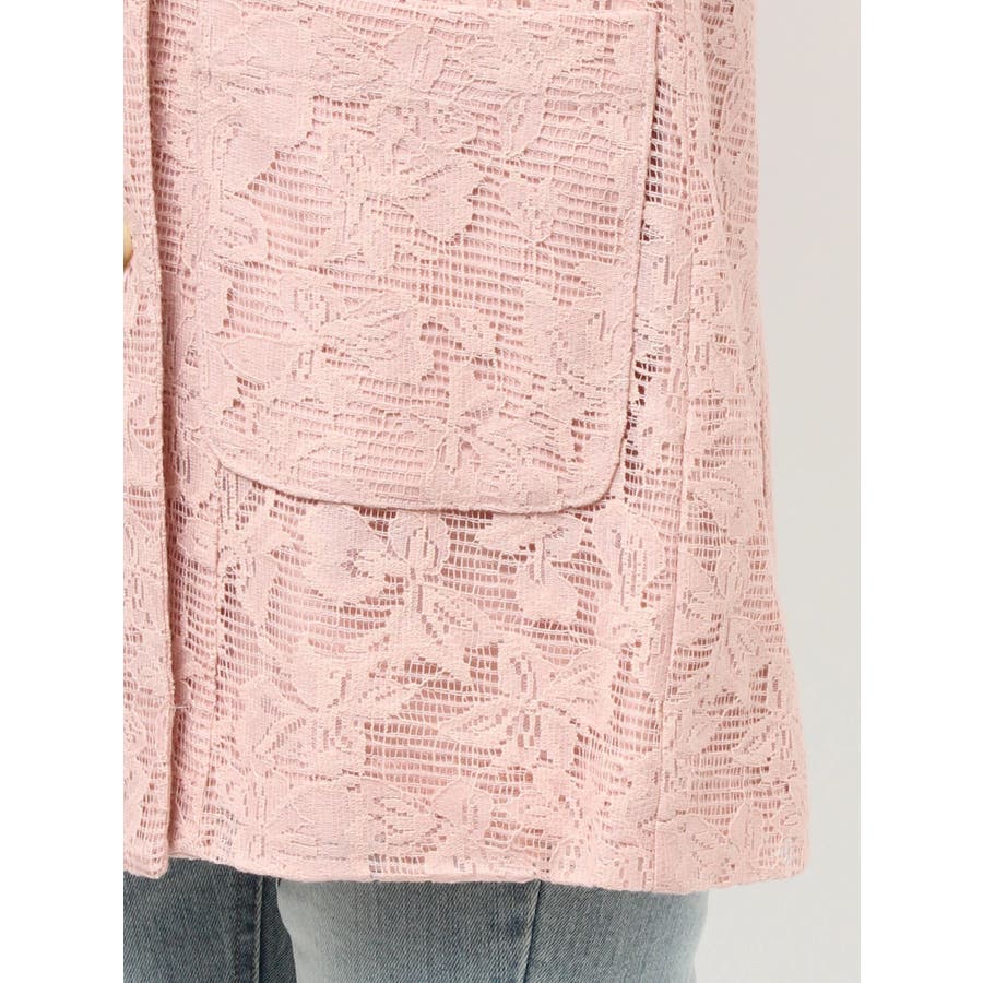 レースデザインが春らしいテーラードジャケット▽デザイン▽レースと2枚仕立てのジャケット。大柄のレース生地がトレンド感あるアイテムです♪ヒップが隠れる丈感でミニボトムからロングボトムまで万能に合わせていただけます。総レースなので羽織るだけで春らしく明るい印象に♪▽カラー▽白、黒、ピンクの3色展開。▽スタイリング▽サラッと羽織れる万能な春アウター。デニムと合わせたカジュアルなスタイリングはもちろんワンピースやスカートと合わせたフェミニンなスタイリングもおすすめです◎※着用画像はフラッシュの加減で実際の製品と色味等が異なる場合がございますので、生地のズームアップ画像をご確認ください。※ご利用の端末画面の設定により実際の商品と色味が異なる場合がございます。【商品特徴】透け感:なし伸縮性:なし生地の厚さ:薄手サイズ感:ゆったり裏地:ありポケット:あり(前)