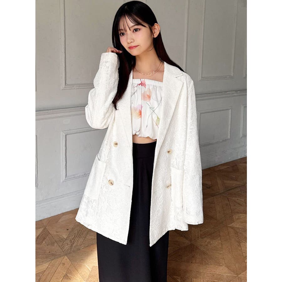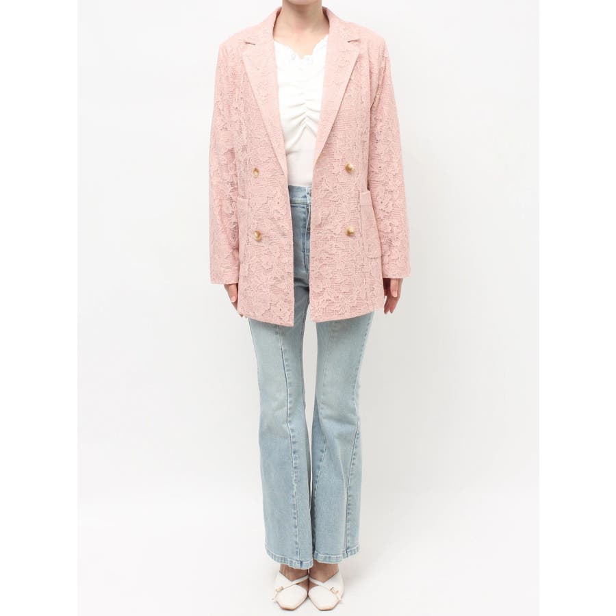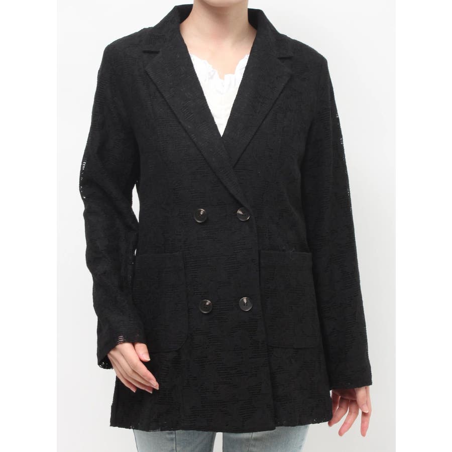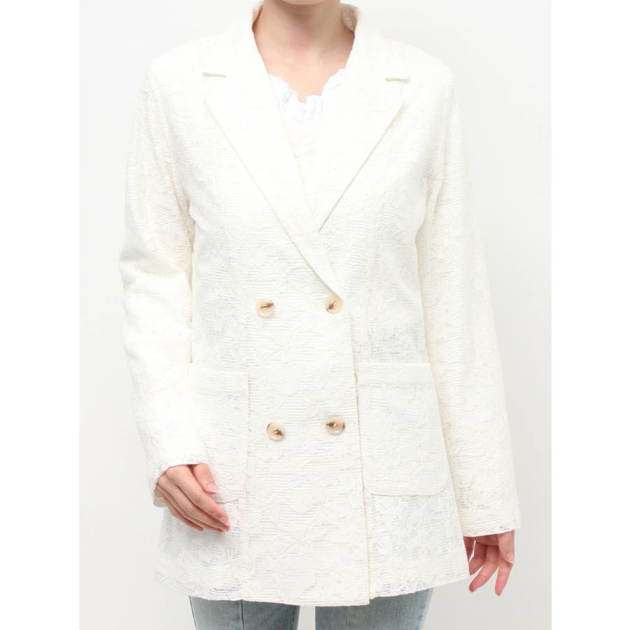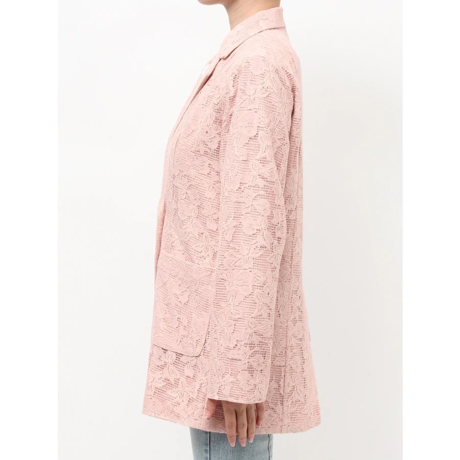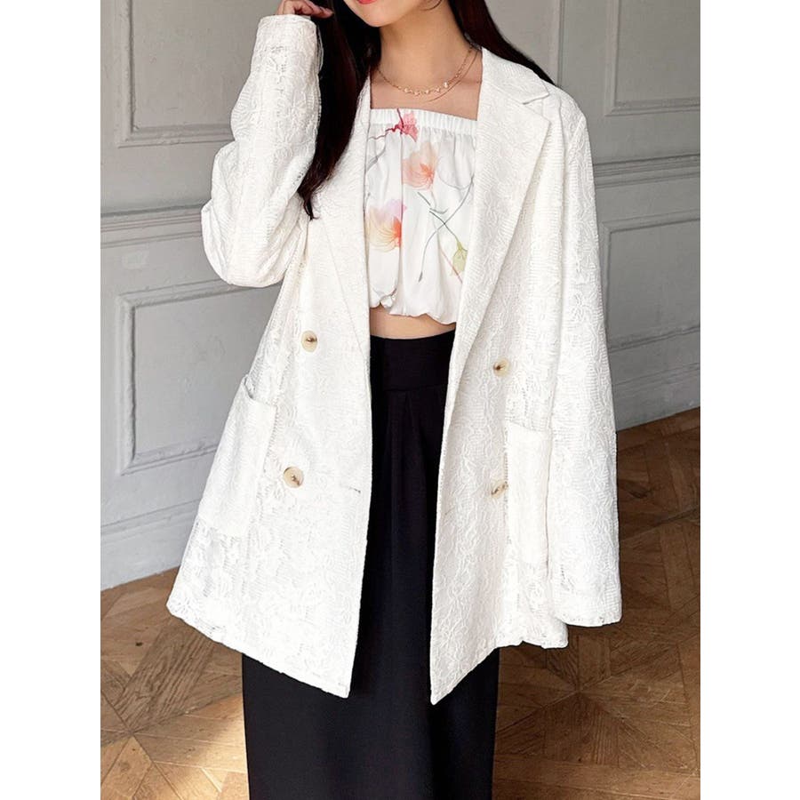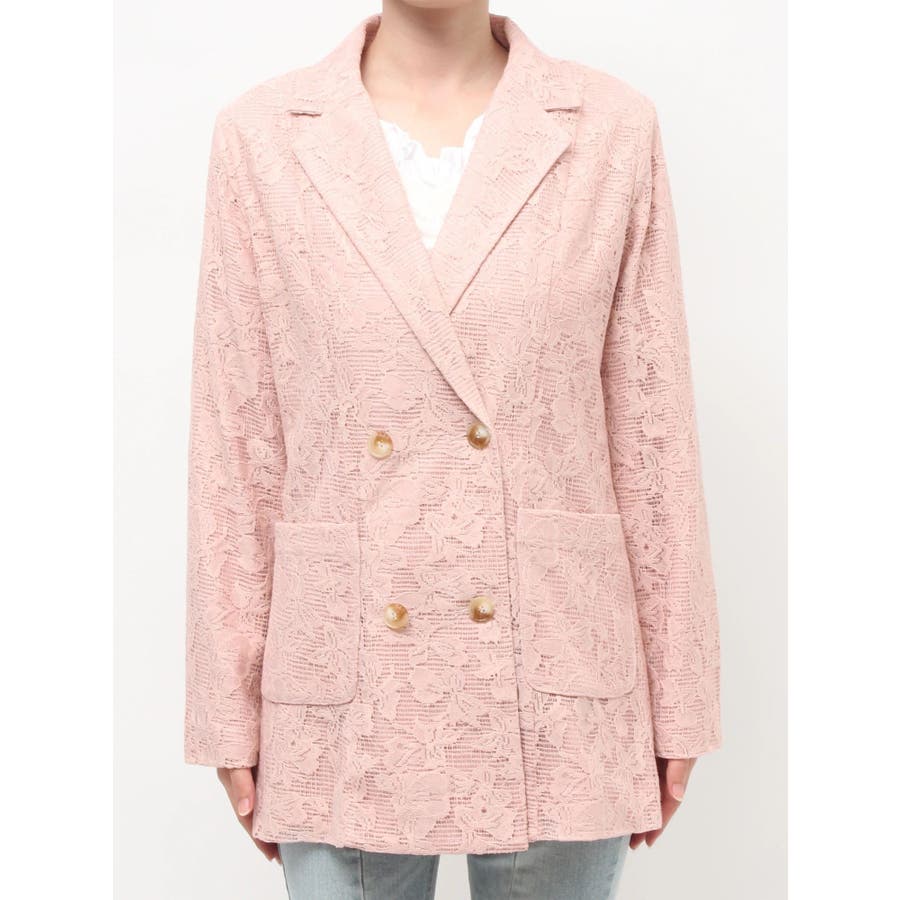 レースデザインが春らしいテーラードジャケット▽デザイン▽レースと2枚仕立てのジャケット。大柄のレース生地がトレンド感あるアイテムです♪ヒップが隠れる丈感でミニボトムからロングボトムまで万能に合わせていただけます。総レースなので羽織るだけで春らしく明るい印象に♪▽カラー▽白、黒、ピンクの3色展開。▽スタイリング▽サラッと羽織れる万能な春アウター。デニムと合わせたカジュアルなスタイリングはもちろんワンピースやスカートと合わせたフェミニンなスタイリングもおすすめです◎※着用画像はフラッシュの加減で実際の製品と色味等が異なる場合がございますので、生地のズームアップ画像をご確認ください。※ご利用の端末画面の設定により実際の商品と色味が異なる場合がございます。【商品特徴】透け感:なし伸縮性:なし生地の厚さ:薄手サイズ感:ゆったり裏地:ありポケット:あり(前)
