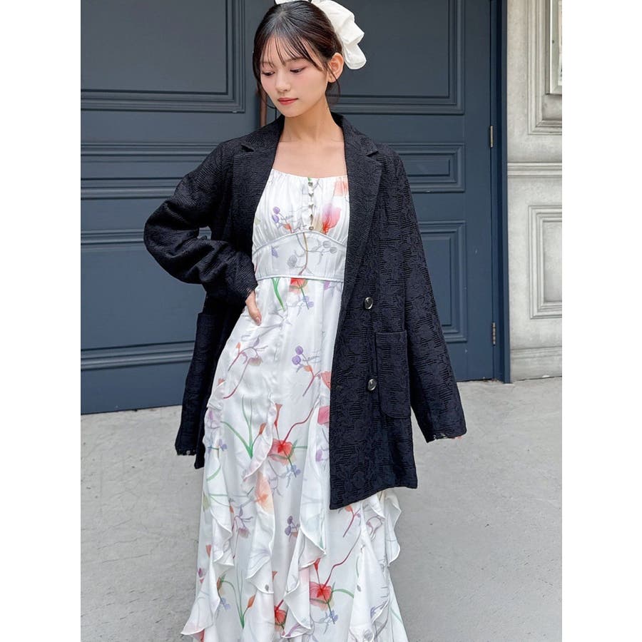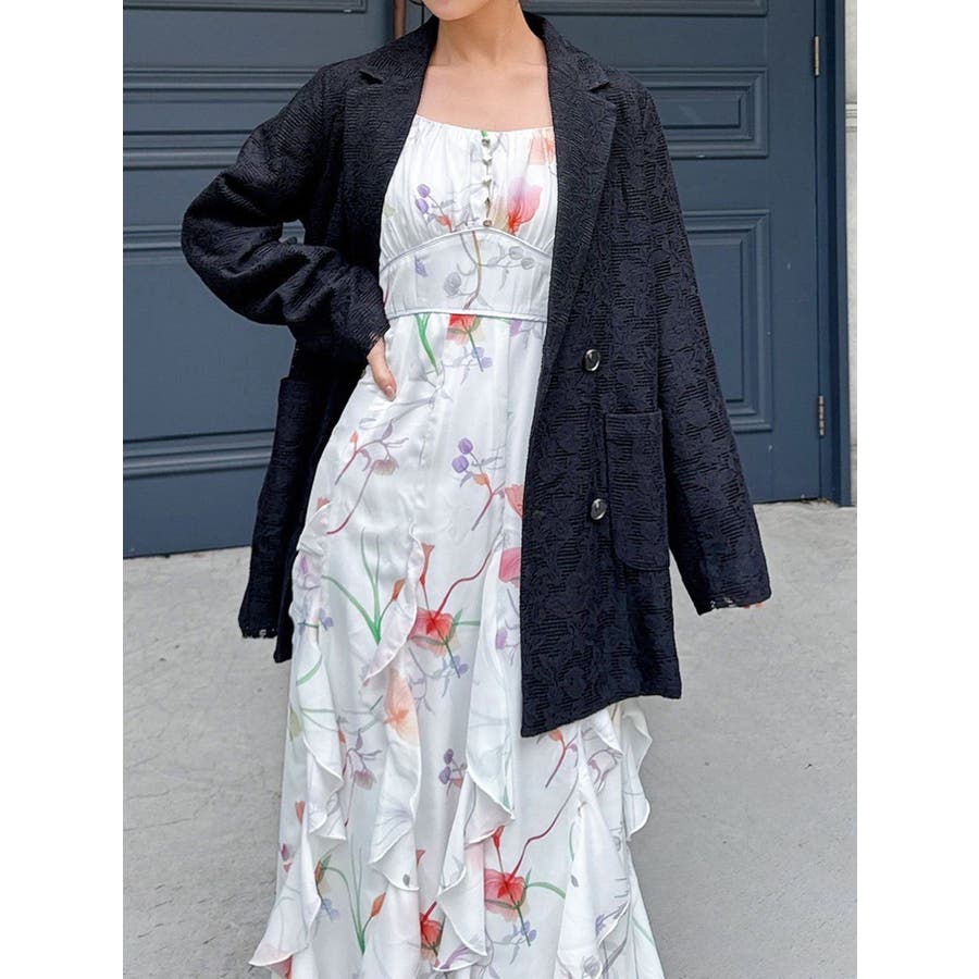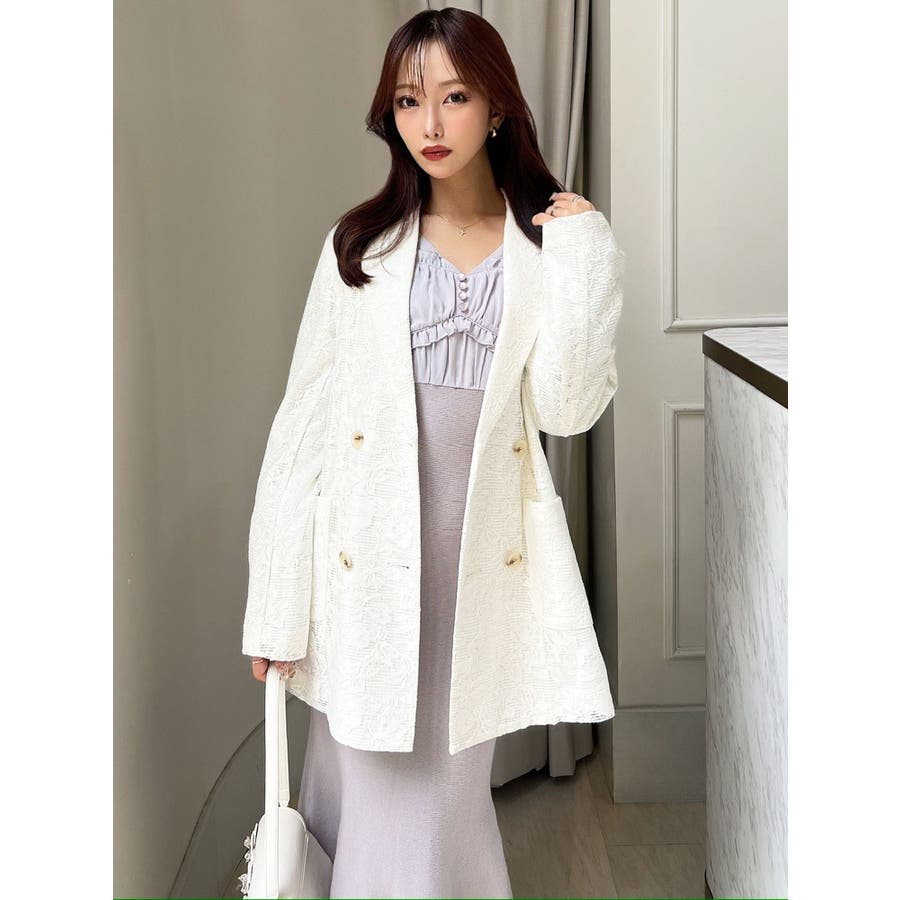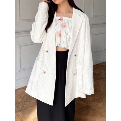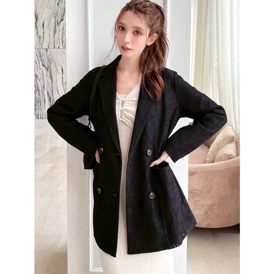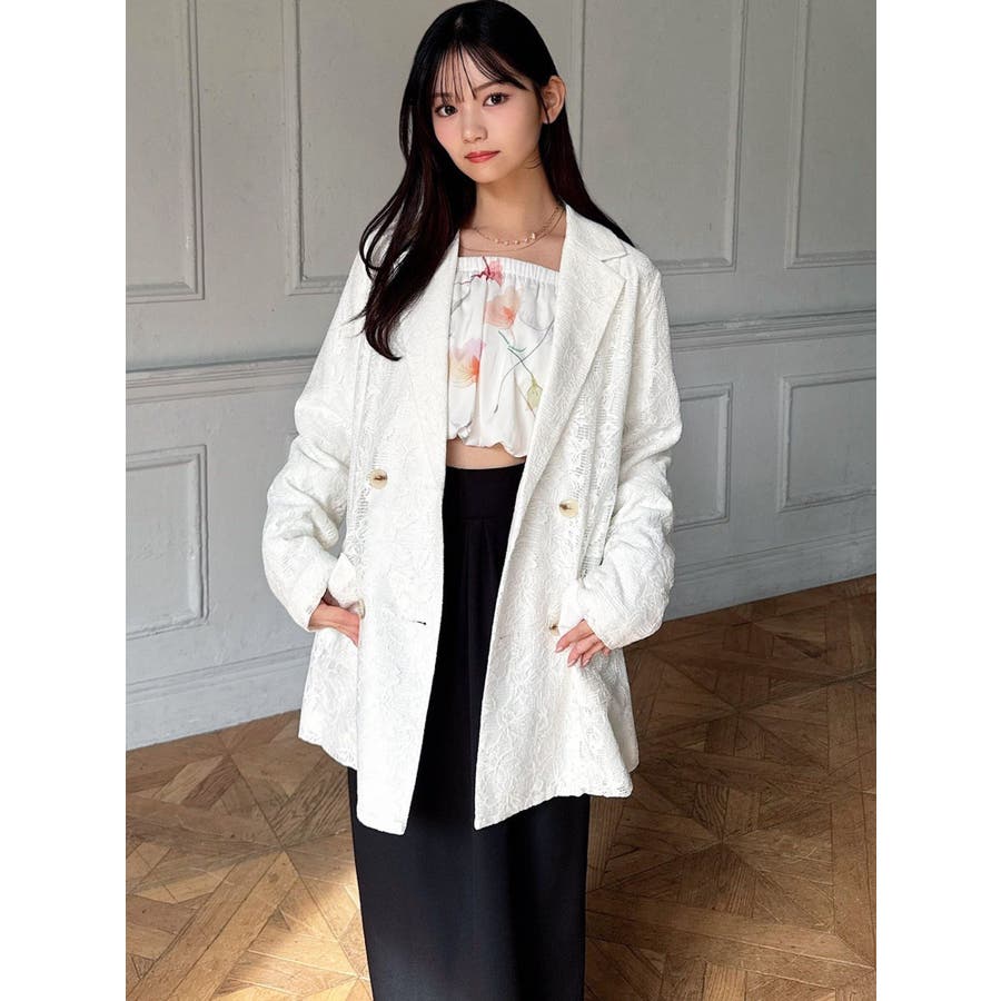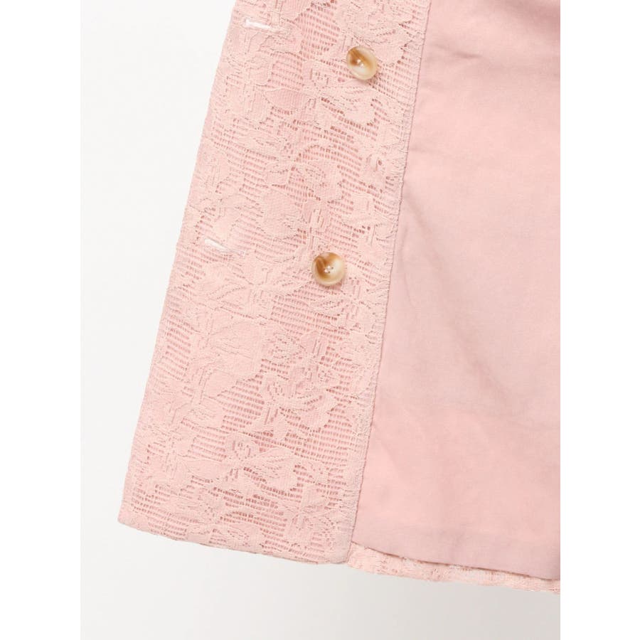 レースデザインが春らしいテーラードジャケット▽デザイン▽レースと2枚仕立てのジャケット。大柄のレース生地がトレンド感あるアイテムです♪ヒップが隠れる丈感でミニボトムからロングボトムまで万能に合わせていただけます。総レースなので羽織るだけで春らしく明るい印象に♪▽カラー▽白、黒、ピンクの3色展開。▽スタイリング▽サラッと羽織れる万能な春アウター。デニムと合わせたカジュアルなスタイリングはもちろんワンピースやスカートと合わせたフェミニンなスタイリングもおすすめです◎※着用画像はフラッシュの加減で実際の製品と色味等が異なる場合がございますので、生地のズームアップ画像をご確認ください。※ご利用の端末画面の設定により実際の商品と色味が異なる場合がございます。【商品特徴】透け感:なし伸縮性:なし生地の厚さ:薄手サイズ感:ゆったり裏地:ありポケット:あり(前)