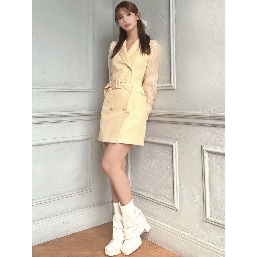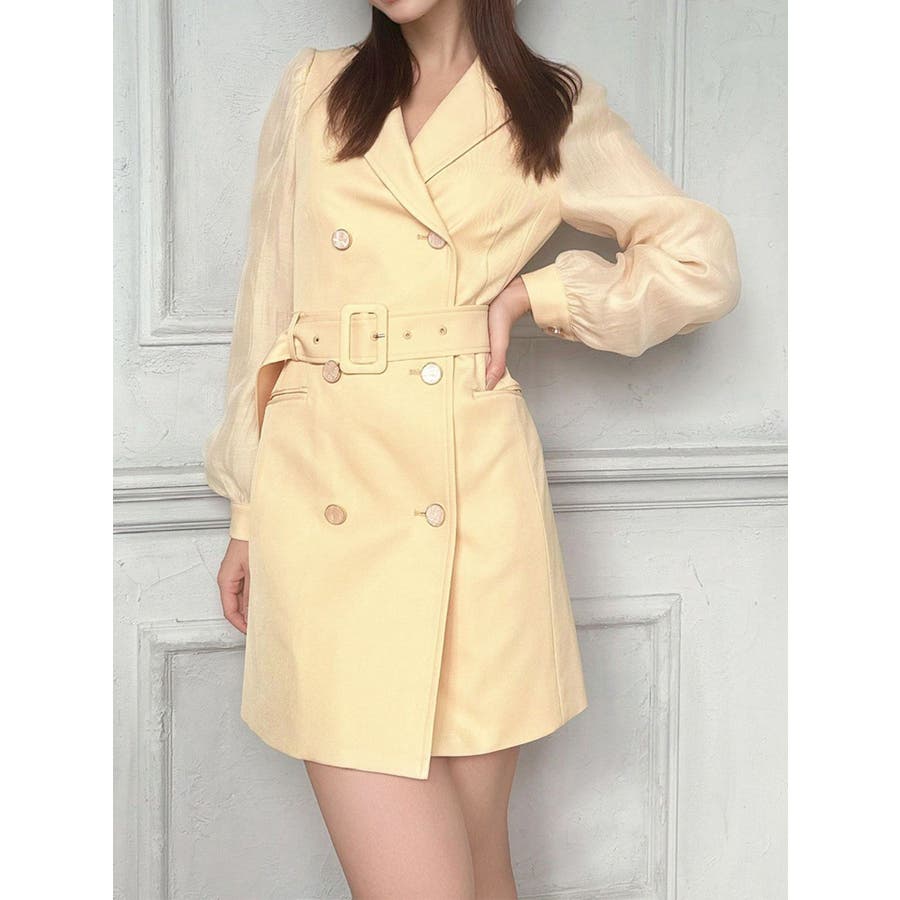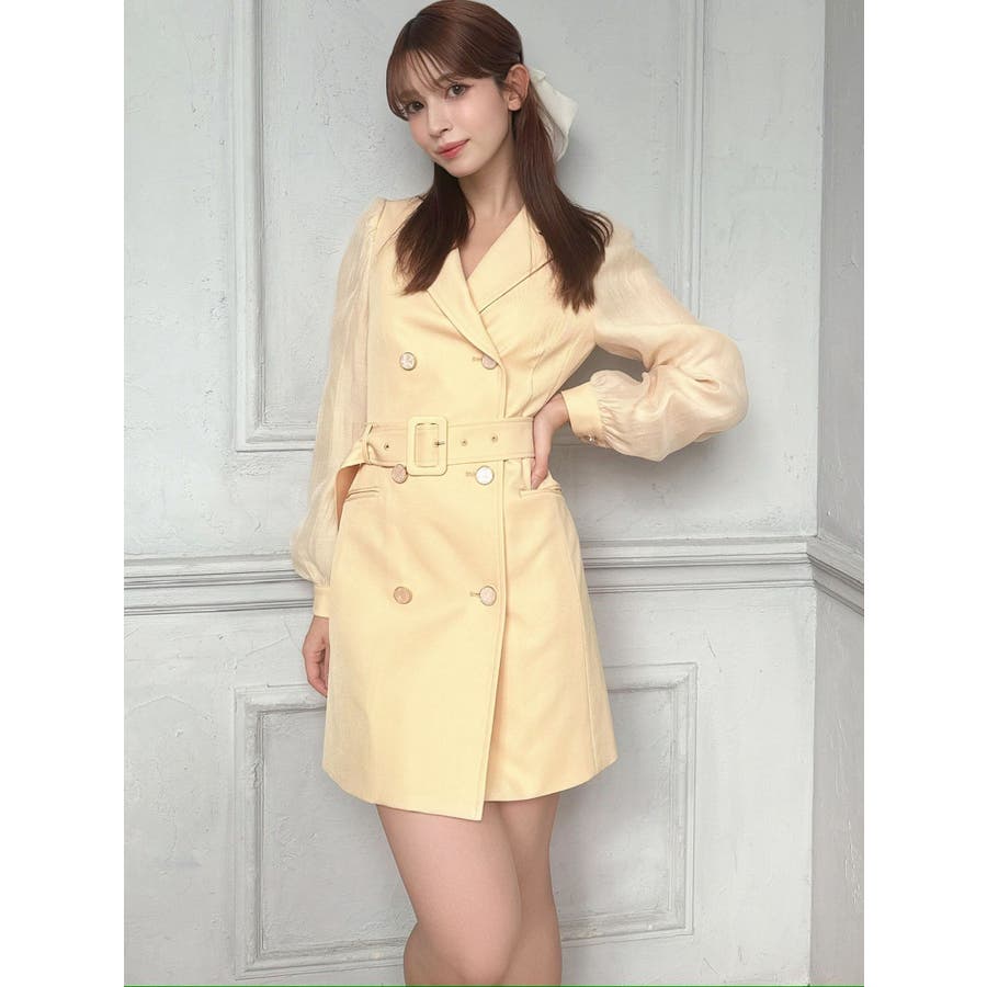 毎シーズン人気のジャケットワンピースが今年も登場▽デザイン▽細部にまでこだわったデザイン性のあるジャケットワンピース。袖部分はボディ同色のシアー生地をドッキングしました。程よいボリューム感のパフスリーブが女性らしさUP。細部の飾りボタンにもこだわり、高級感のあるデザインに。▽カラー▽アイボリー、黒、ピンク、黄色の4色展開。▽スタイリング▽1枚でスタイリングが完成するミニワンピ♪デイリー使いにはもちろん、デートや記念日など特別な日にもおすすめの春ワンピース。