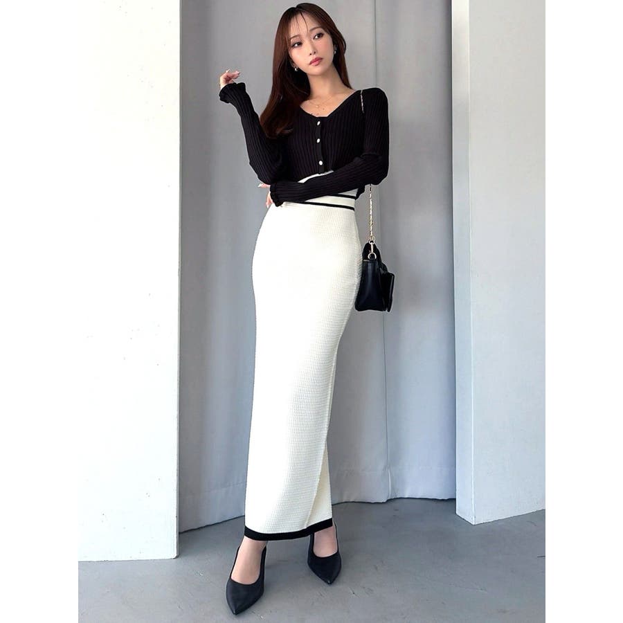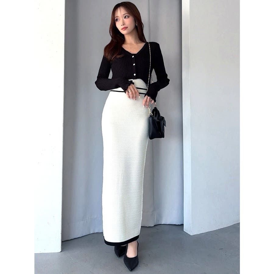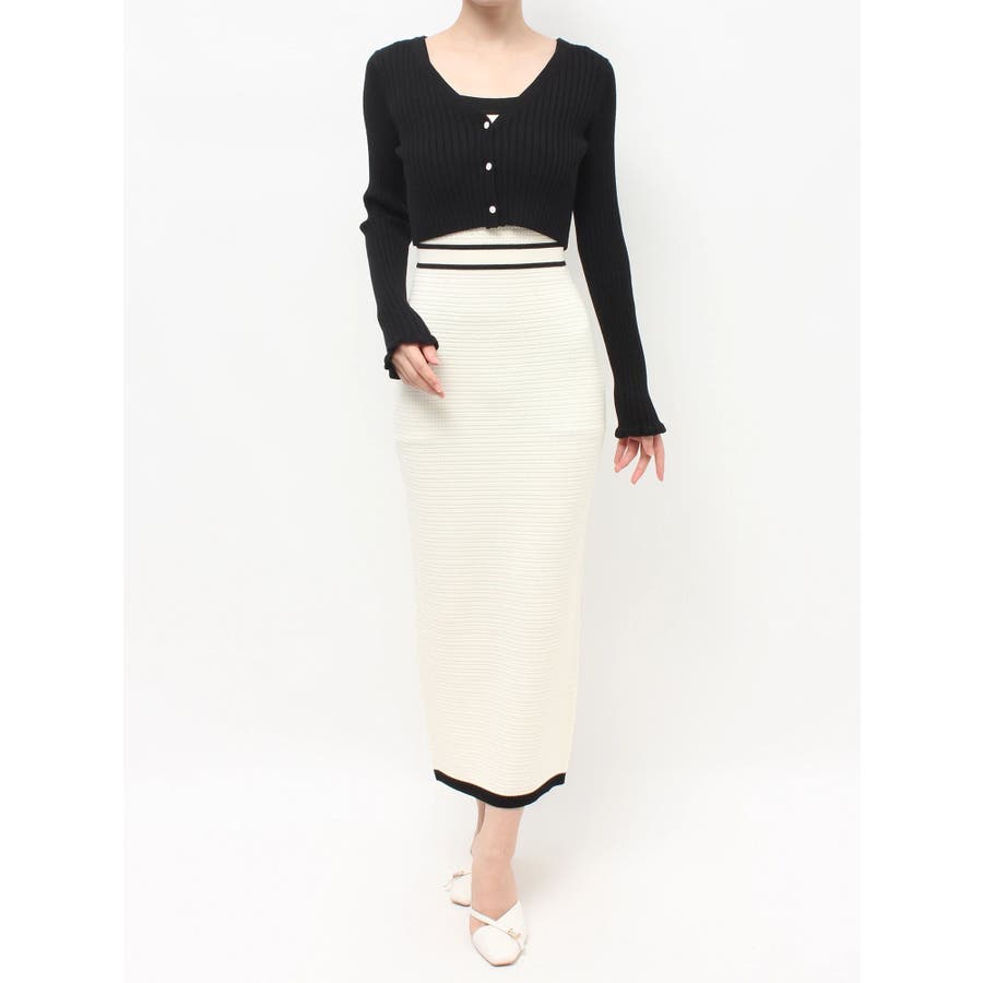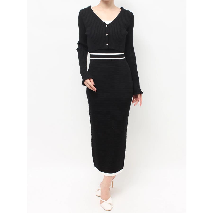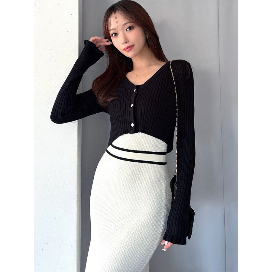 クロップド丈のカーディガンでスタイルUPを叶え、タイトワンピースで女性らしい綺麗なシルエットを演出します。