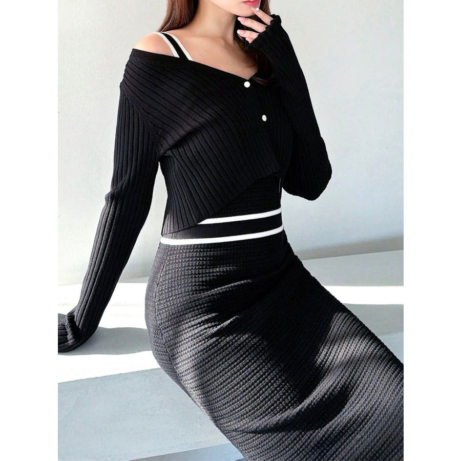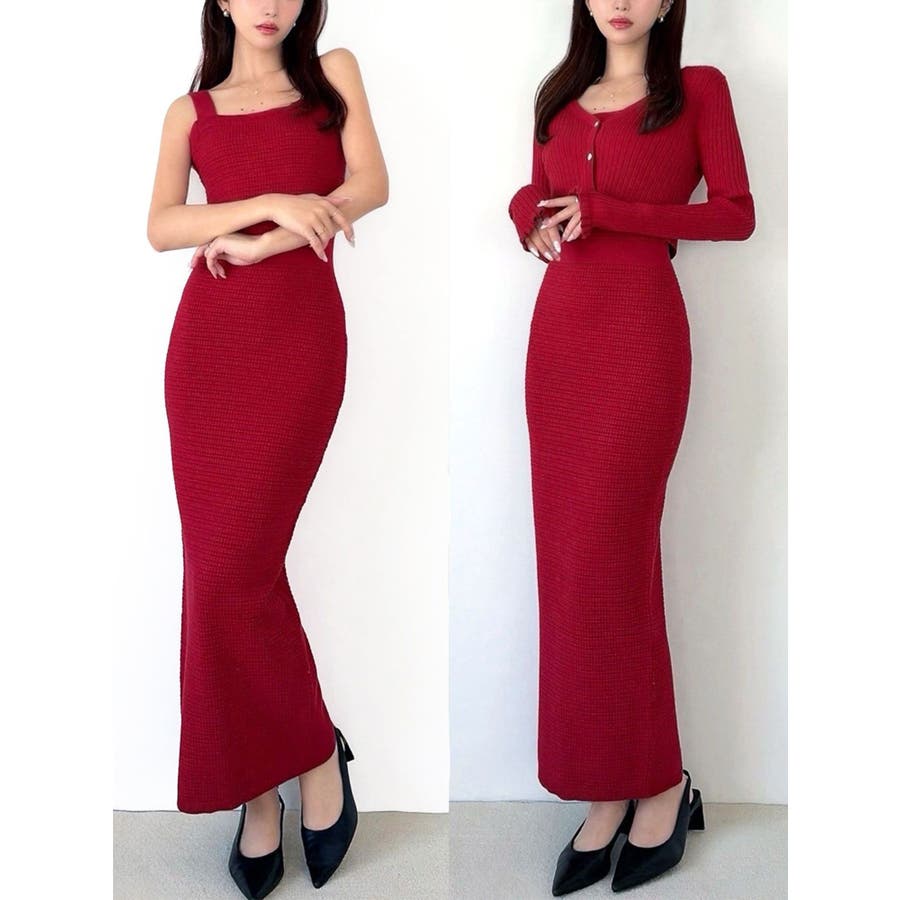 セットアップとしてはもちろん、ワンピースだけでもカーディガン1枚でも着用いただけます。