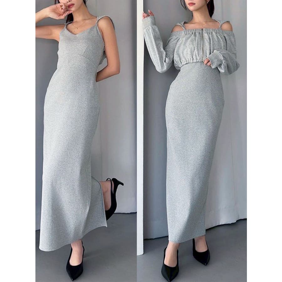 1枚でコーデが完成するロングワンピース。レイヤードワンピとしてはもちろん、キャミワンピのみでもトップスのみでも着用いただけます◎