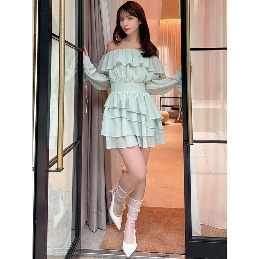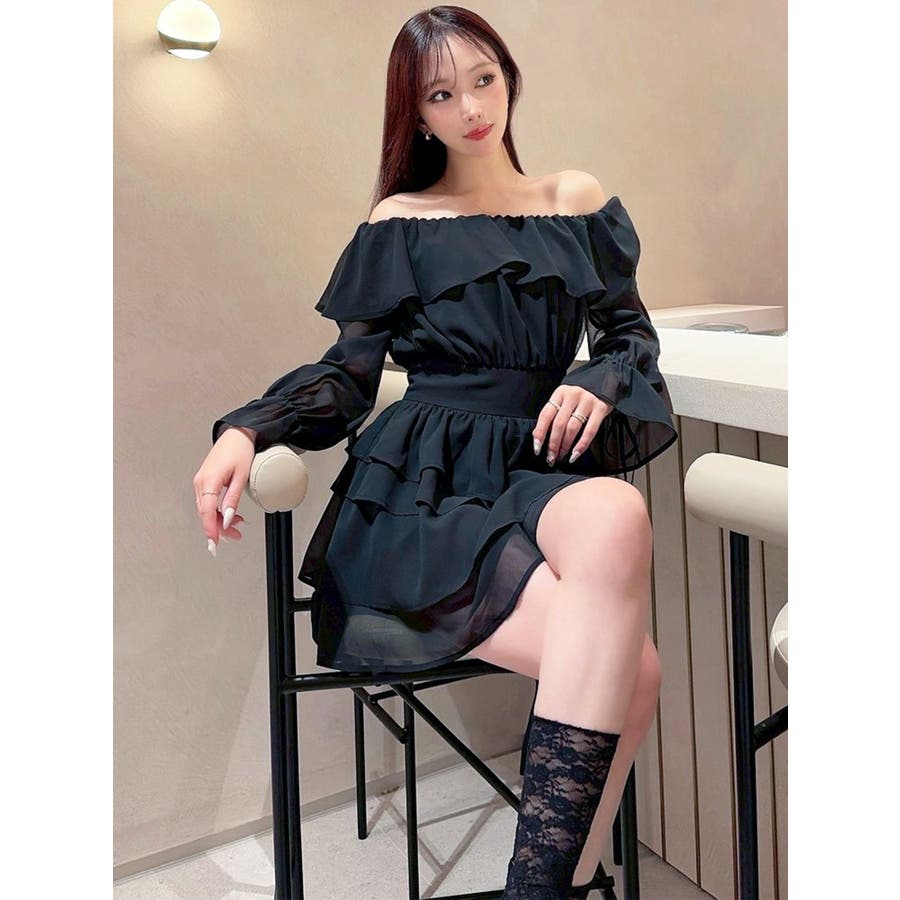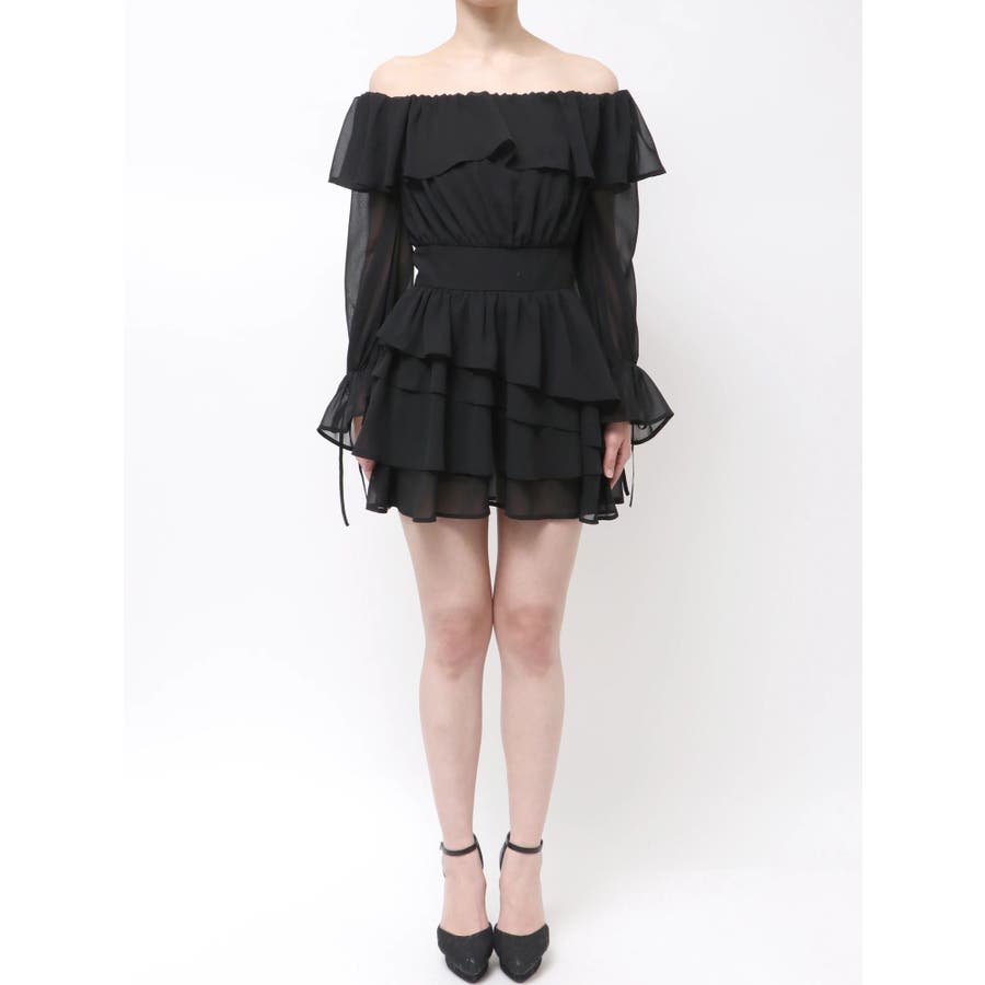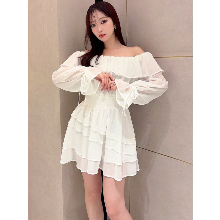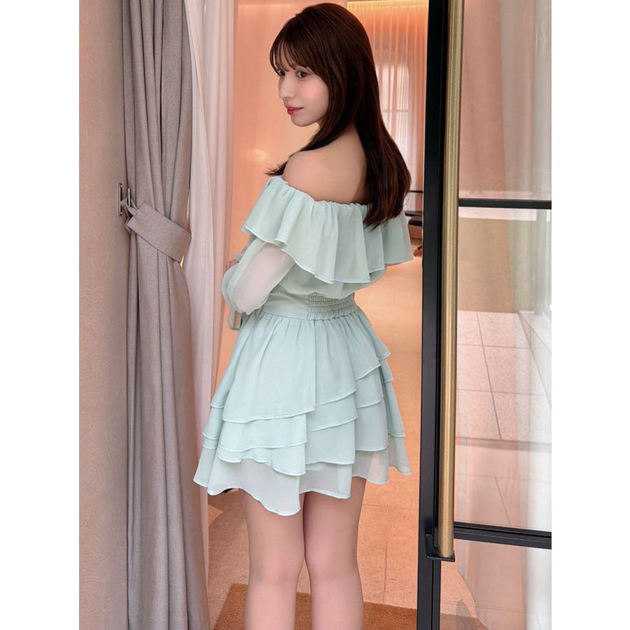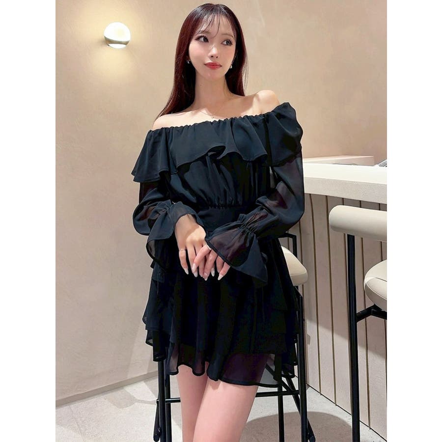 オフショルシフォンミニワンピース