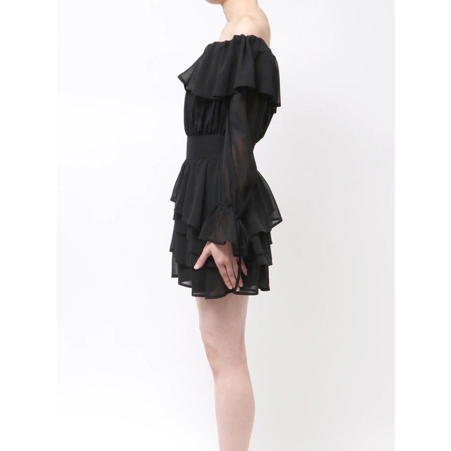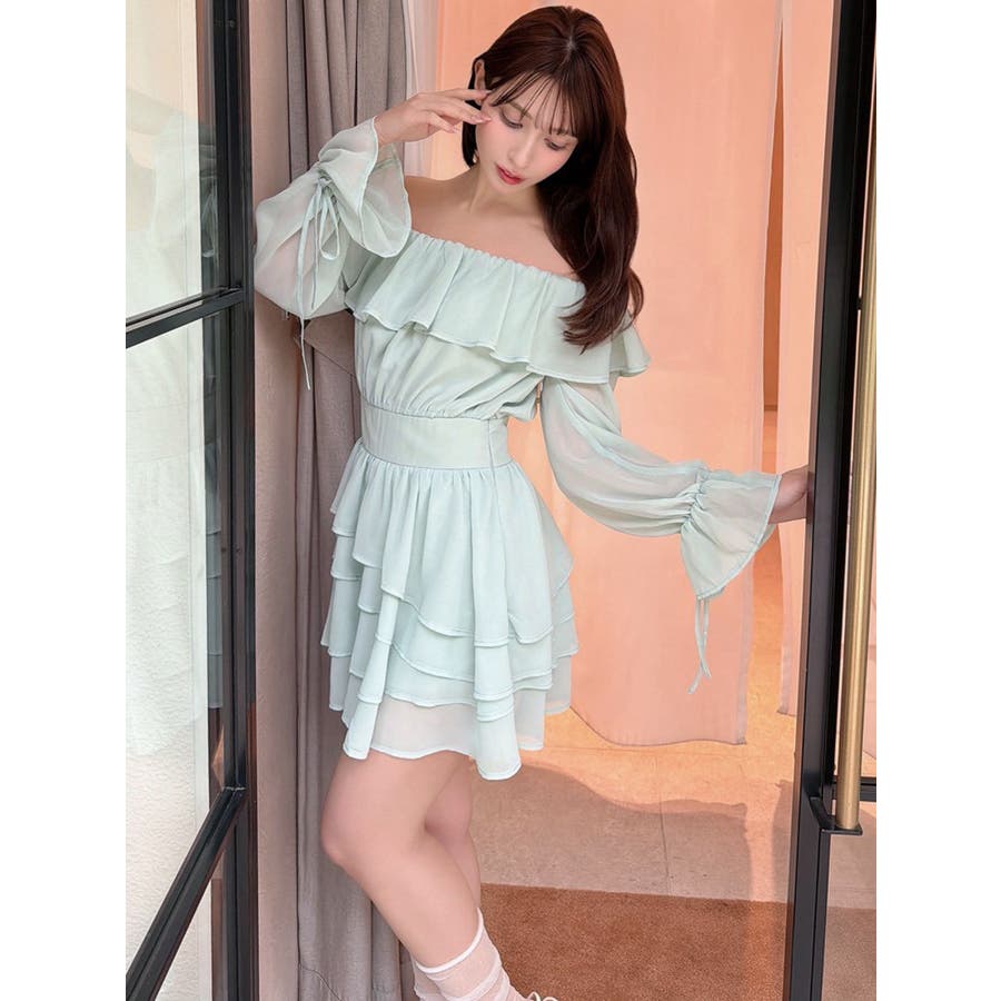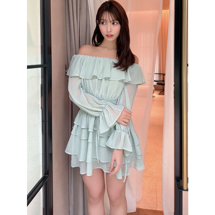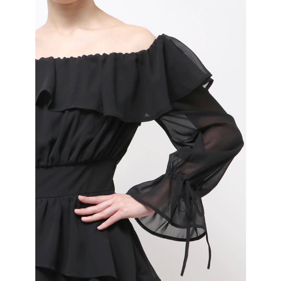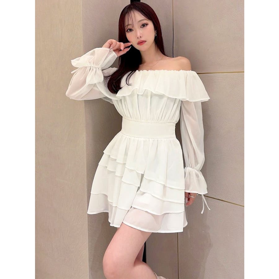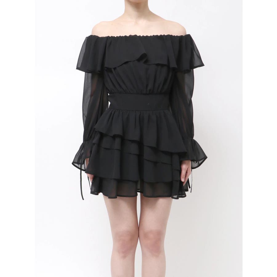 オフショルシフォンミニワンピース