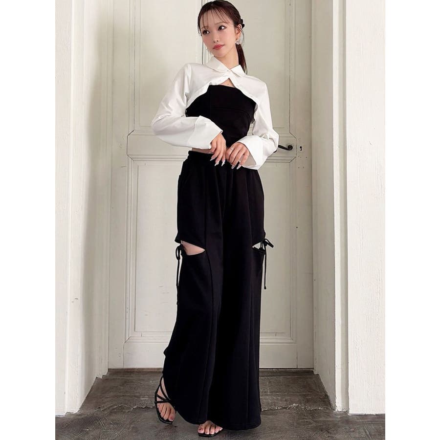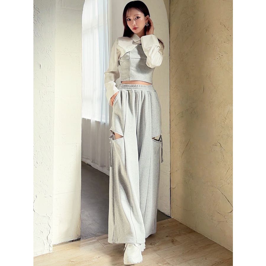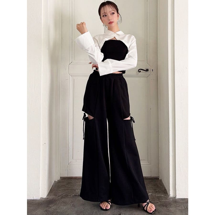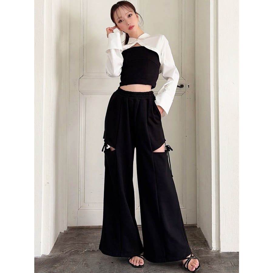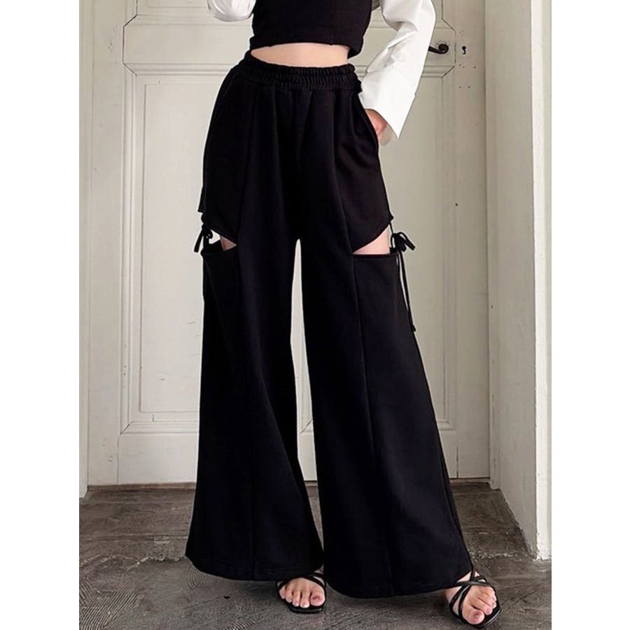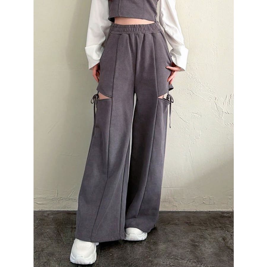 昨年人気だったスウェットパンツが再登場!▽デザイン▽人気のカットアウトの肌見せ+リボンデザインのスウェットパンツ。センタータックを入れたことで脚長効果抜群◎オーバーなサイズがボディラインを拾わずトレンド感のあるシルエットに。ハイウエストでスタイルアップ効果抜群!ウエストゴムになっているのでストレスフリーに着用できます◎▽カラー▽黒・グレー・チャコールグレーの3色展開。▽スタイリング▽今年はバージョンUPしてセットアップでの着用が可能に♪トップスはコンパクトなシルエットのものを合わせるだけでトレンドコーデが完成!ゆるっと穿けてリラックス感のある抜け感スタイリングに◎【セットアップアイテムはコチラ】>>シャツドッキングトップス