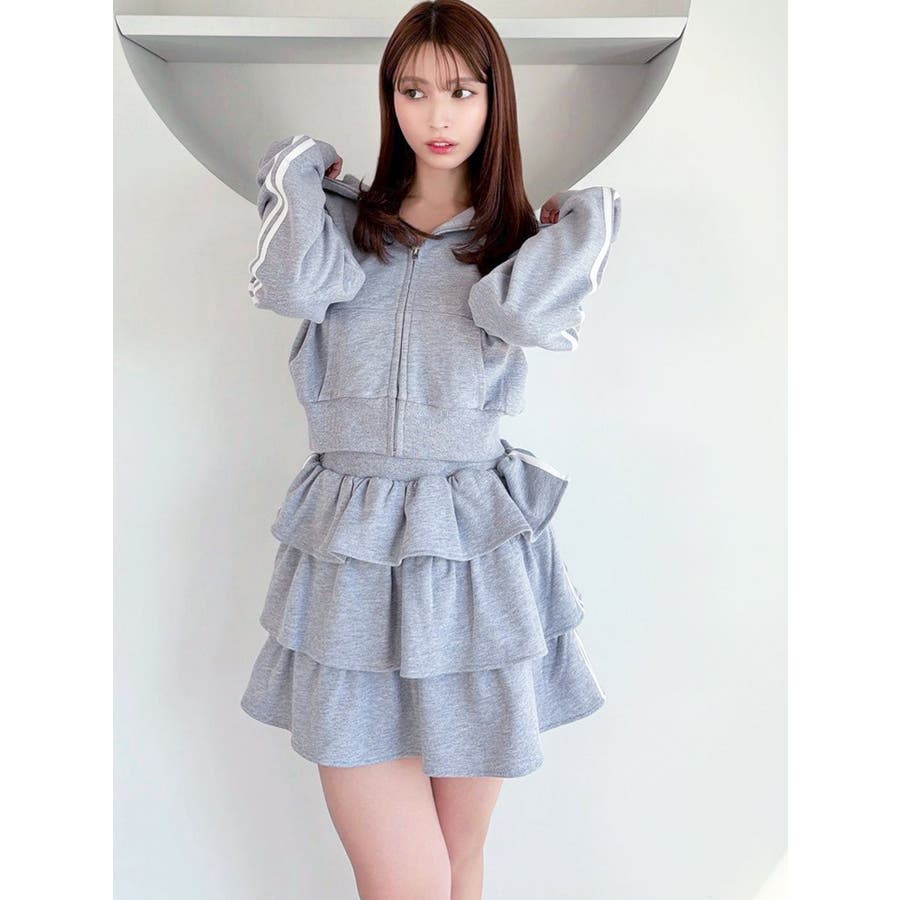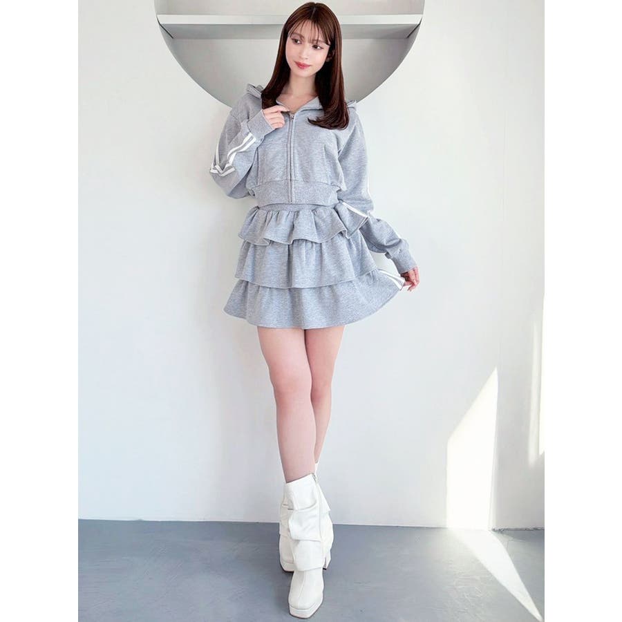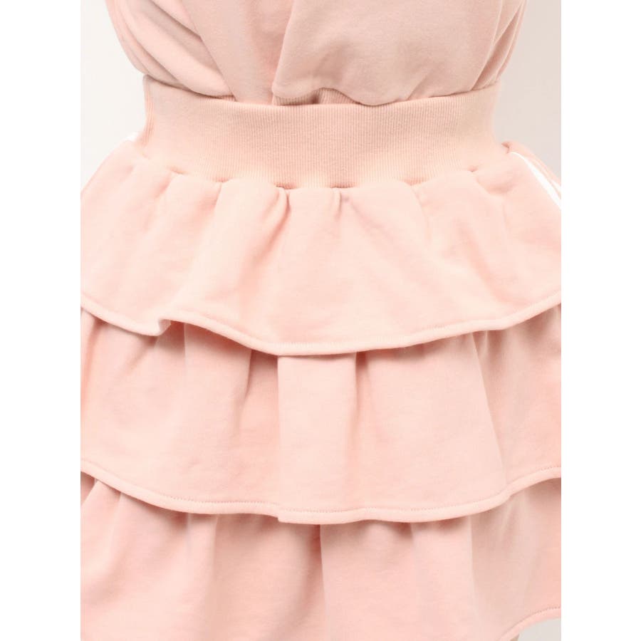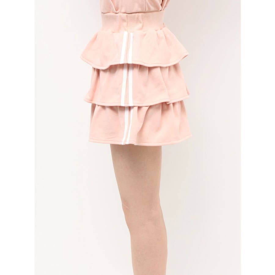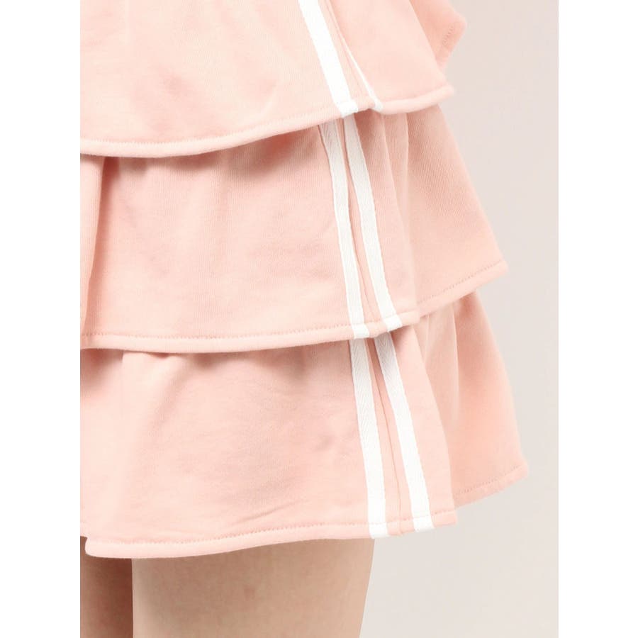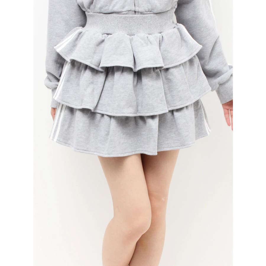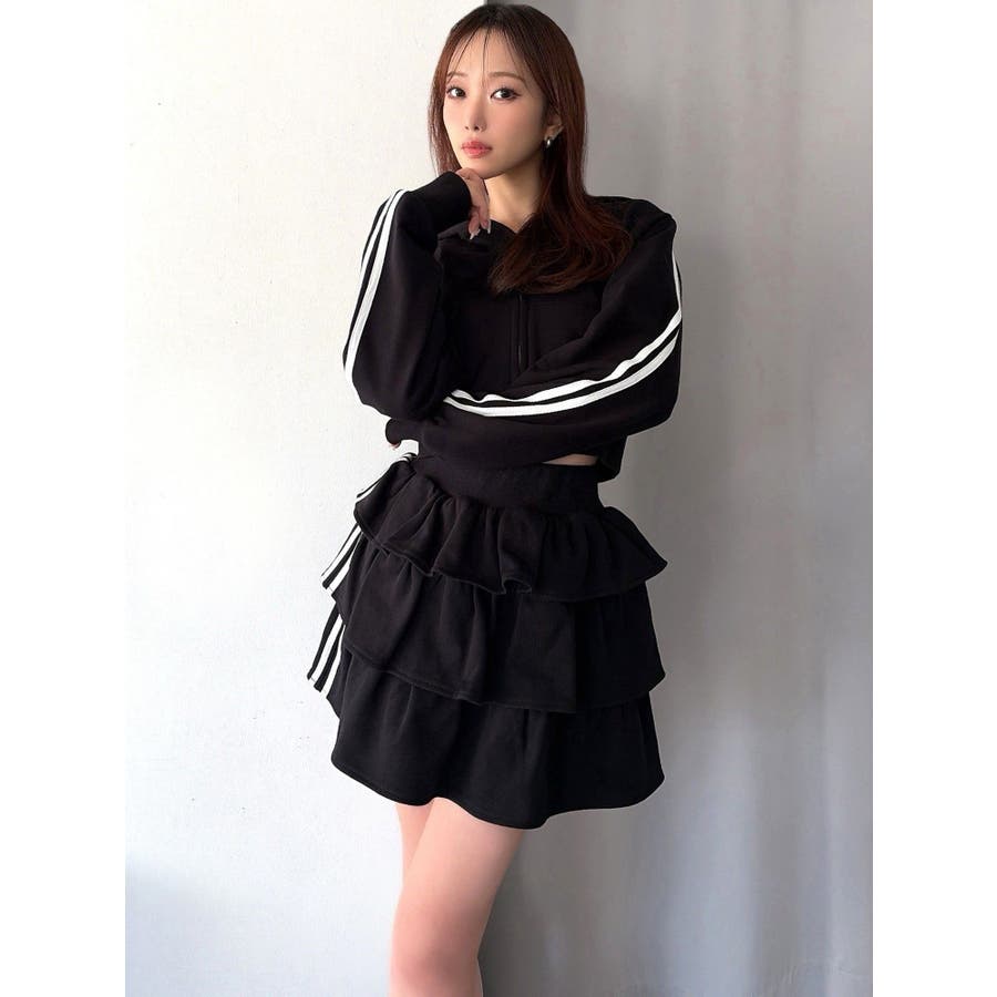 サイドラインがアクセントになるミニスカート▽デザイン▽サイドのラインをデザインポイントにした着やすい一着。裏毛素材なのでカジュアルさもありながら、たっぷりのティアードデザインでフェミニンな印象に仕上げました。ウエスト部分には少し幅広目のゴムベルトをぐるりと入れているので、ウエストマークもしっかりしてくれます♪▽カラー▽グレー、黒、ピンクの3色展開。▽スタイリング▽同色のスウェットパーカーを合わせるとセットアップとしての着用が可能◎ミニスカートなのでロングブーツやソックスを合わせたコーディネートがおすすめ♪