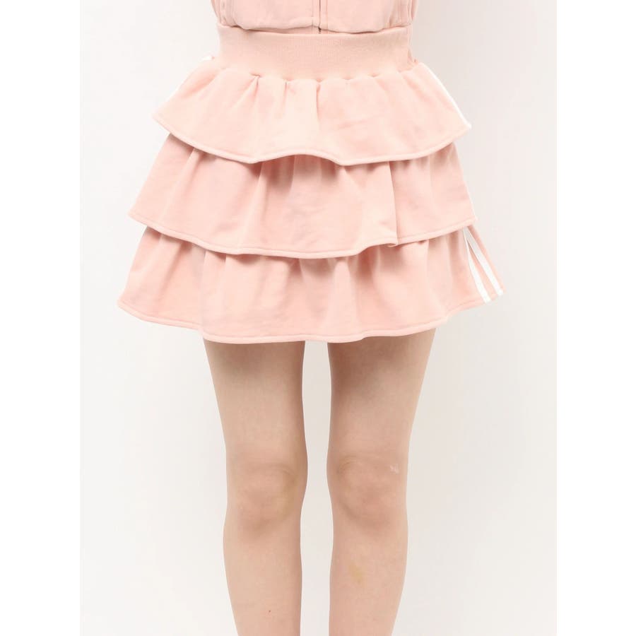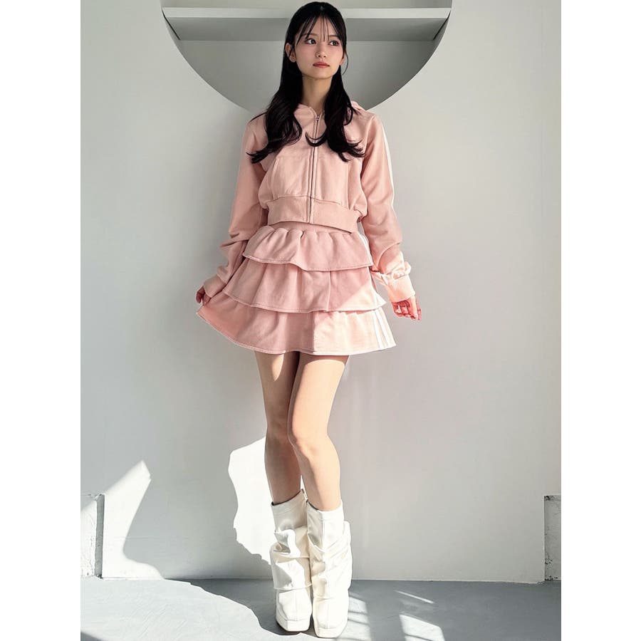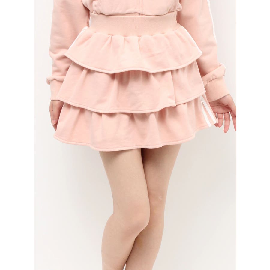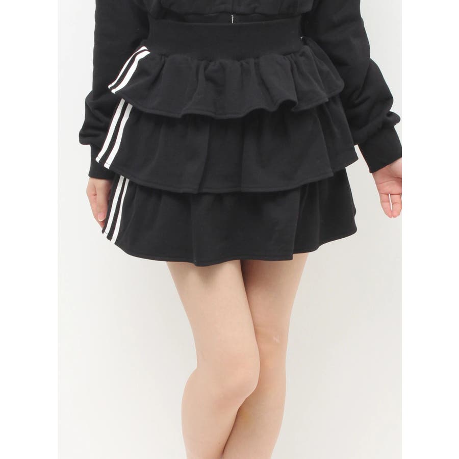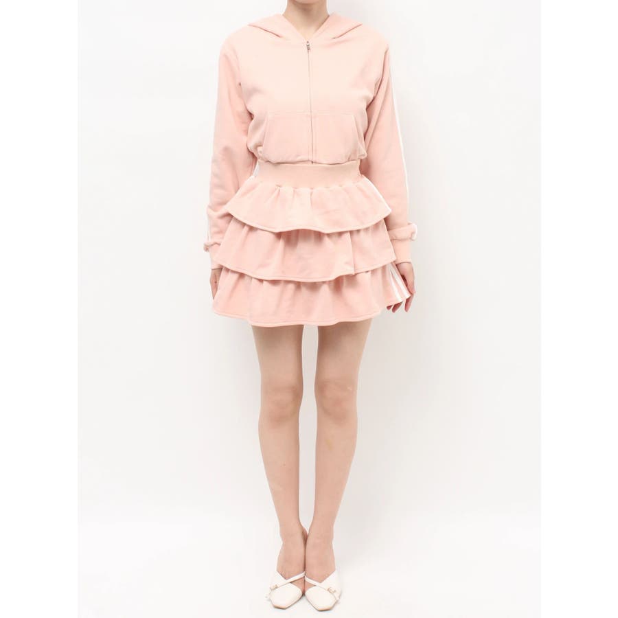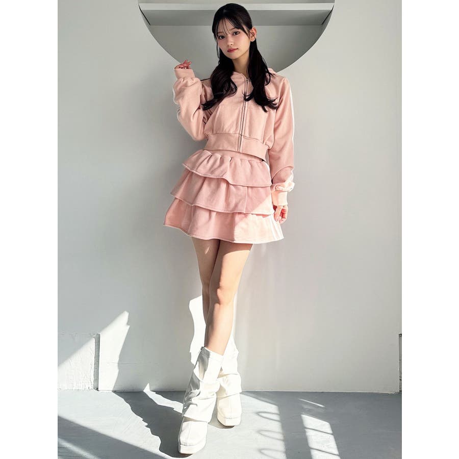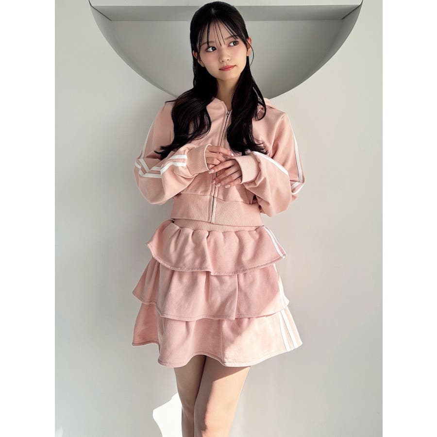 サイドラインがアクセントになるミニスカート▽デザイン▽サイドのラインをデザインポイントにした着やすい一着。裏毛素材なのでカジュアルさもありながら、たっぷりのティアードデザインでフェミニンな印象に仕上げました。ウエスト部分には少し幅広目のゴムベルトをぐるりと入れているので、ウエストマークもしっかりしてくれます♪▽カラー▽グレー、黒、ピンクの3色展開。▽スタイリング▽同色のスウェットパーカーを合わせるとセットアップとしての着用が可能◎ミニスカートなのでロングブーツやソックスを合わせたコーディネートがおすすめ♪
